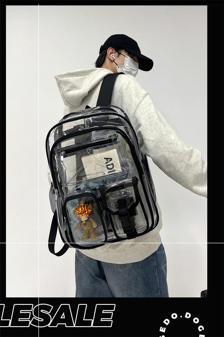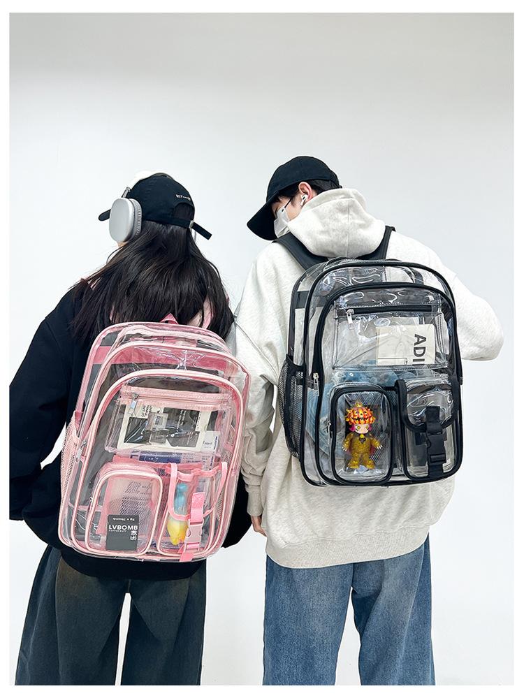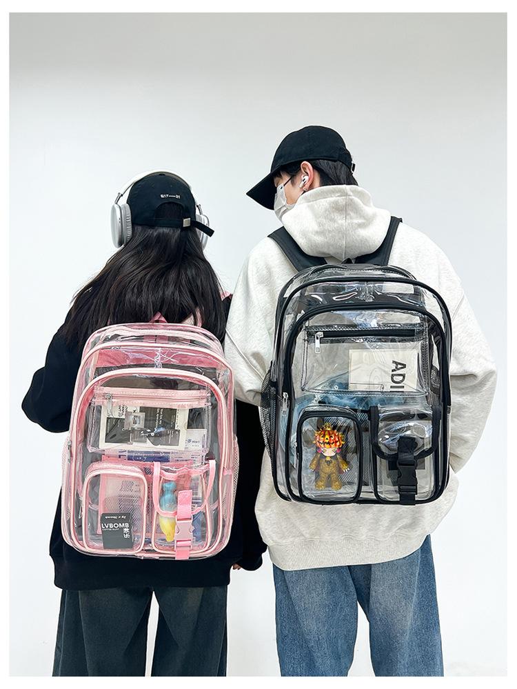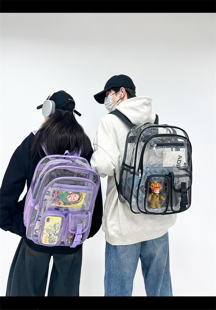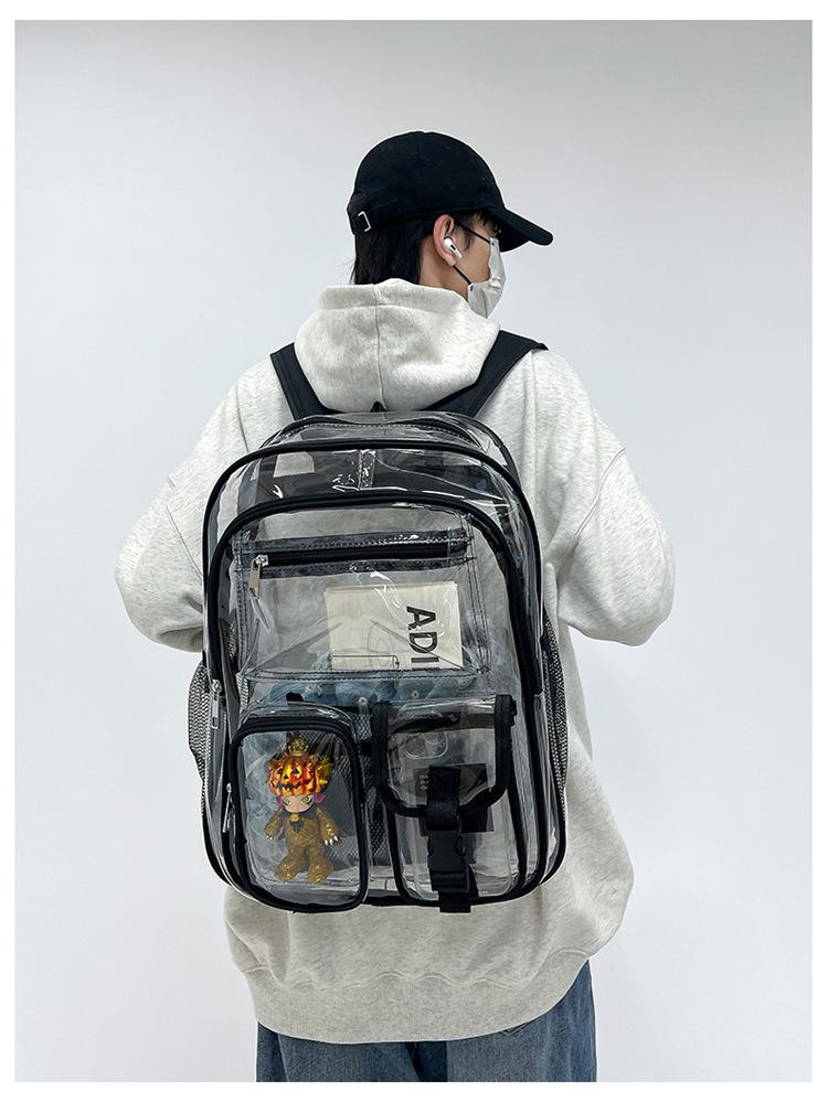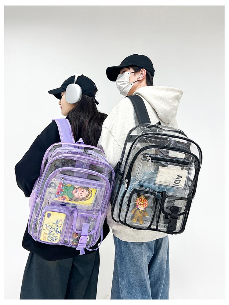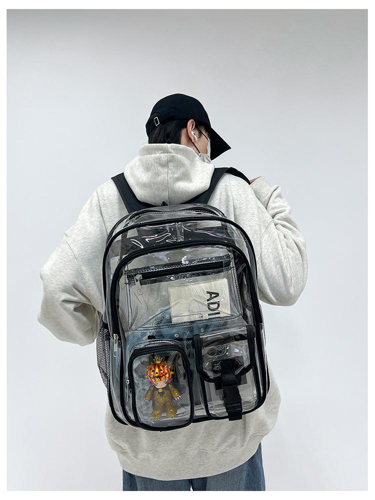 Mochila transparente transfronteriza de Amazon PVC gran capacidad mochila escolar para estudiantes doble capa multi-bolsillo mochila transparente de PVC