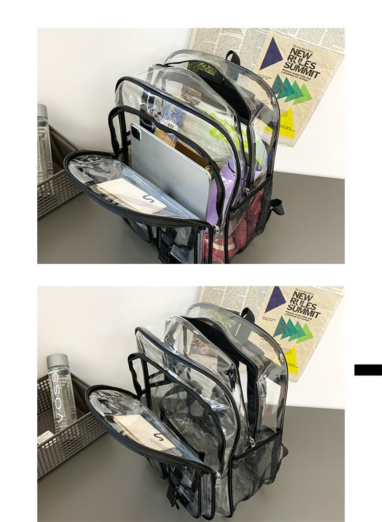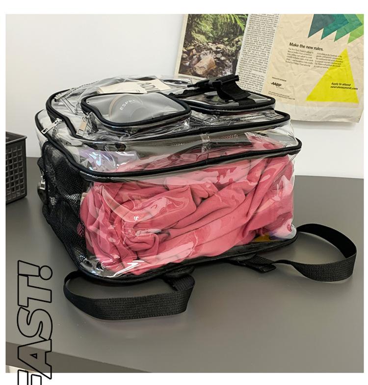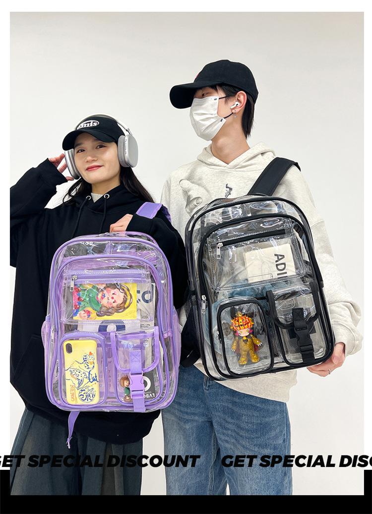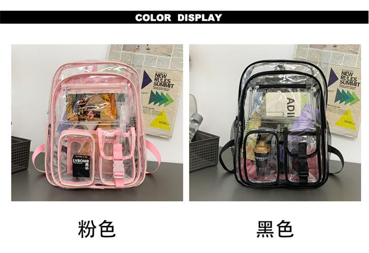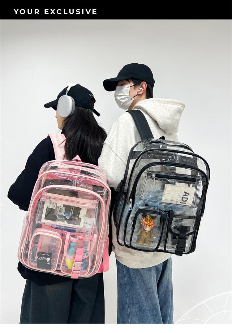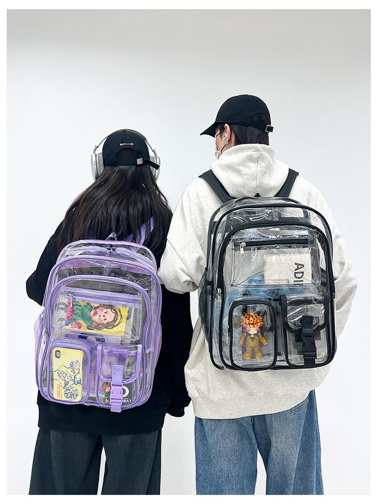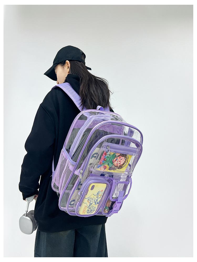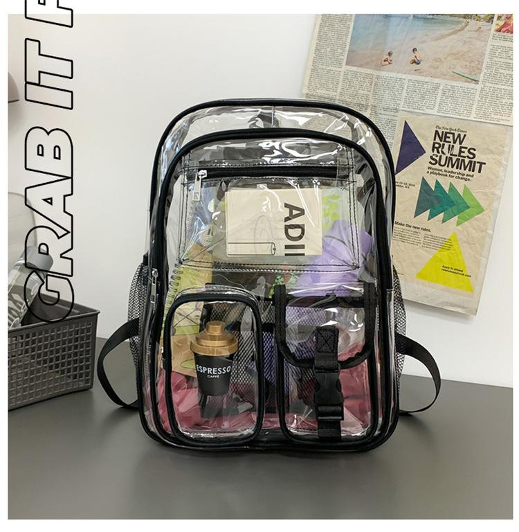 Mochila transparente transfronteriza de Amazon PVC gran capacidad mochila escolar para estudiantes doble capa multi-bolsillo mochila transparente de PVC