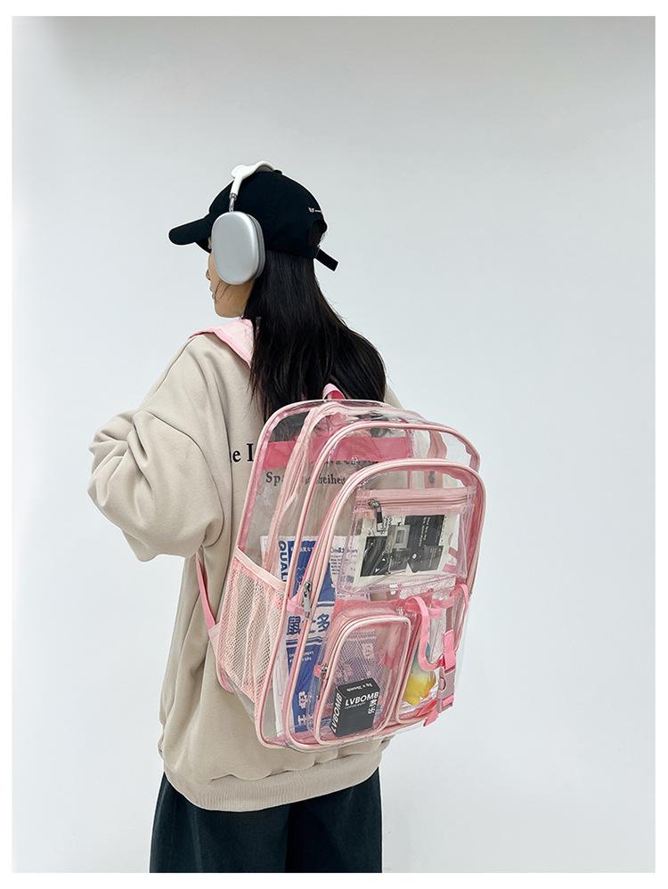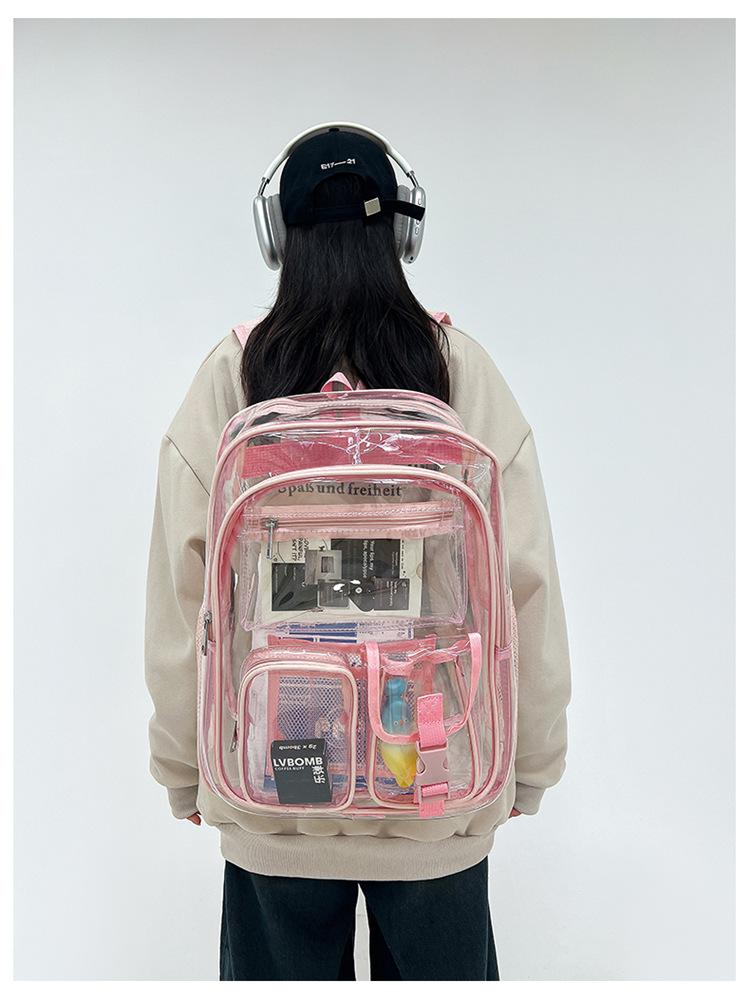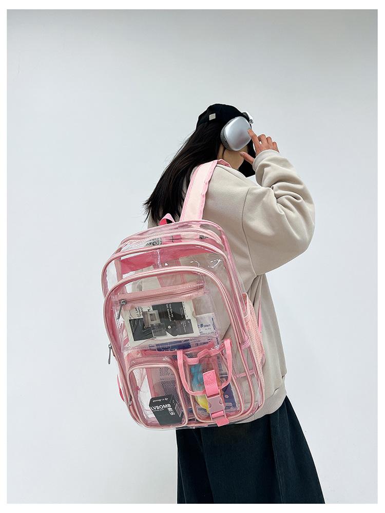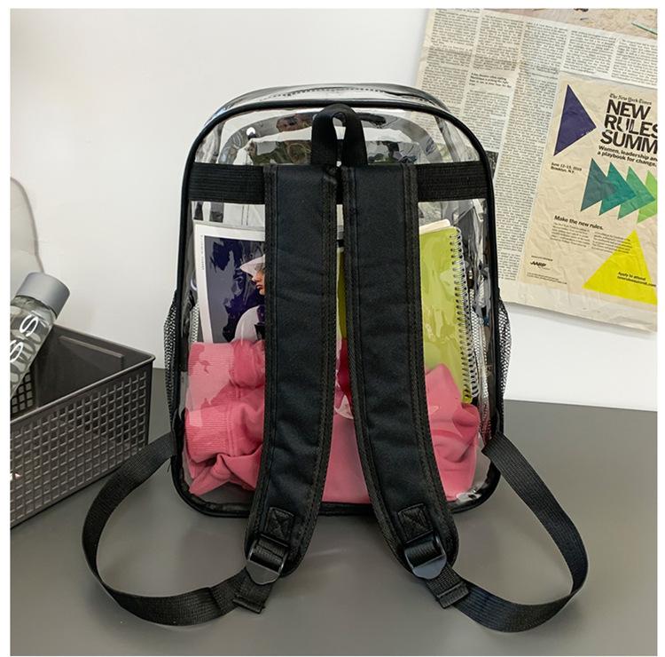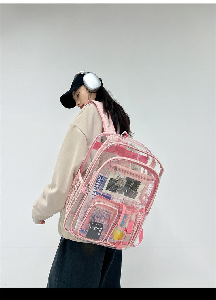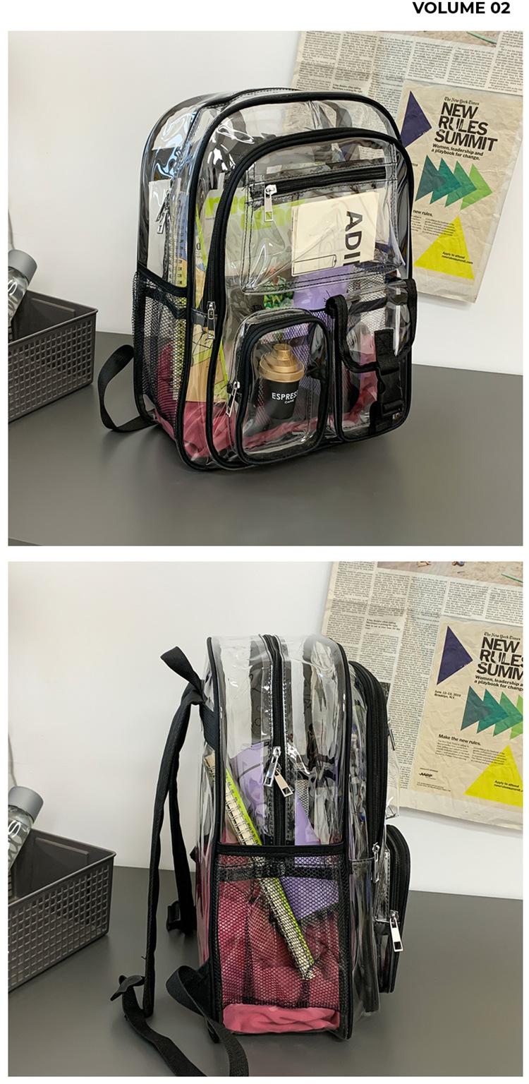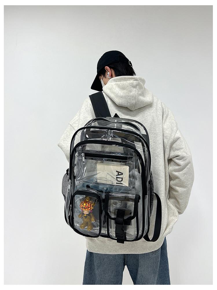 Mochila transparente transfronteriza de Amazon PVC gran capacidad mochila escolar para estudiantes doble capa multi-bolsillo mochila transparente de PVC