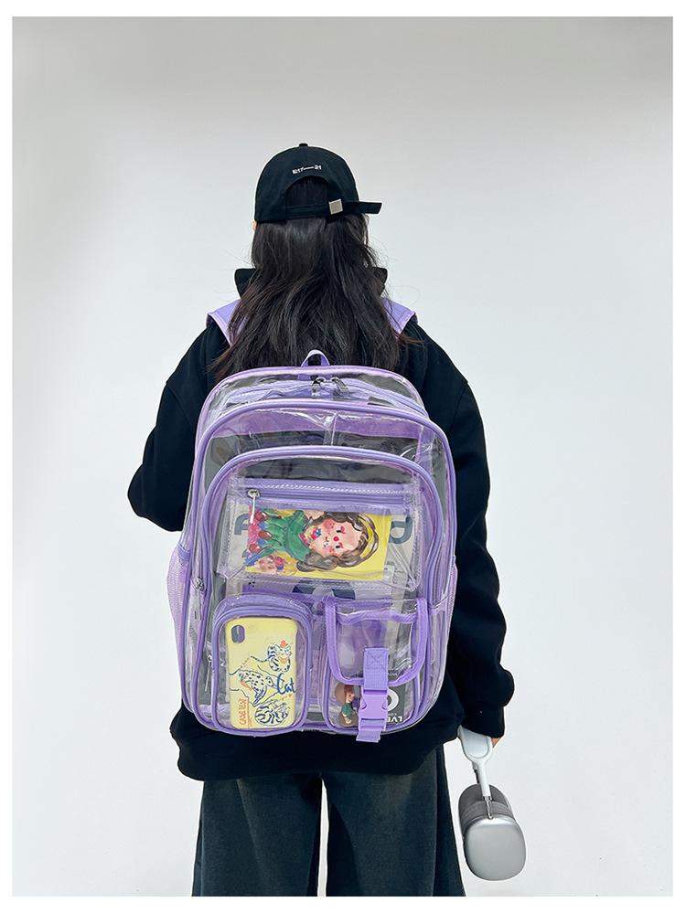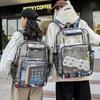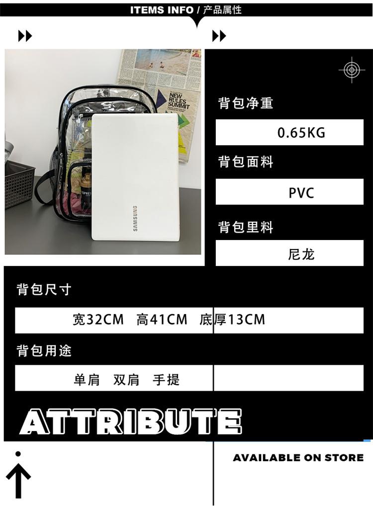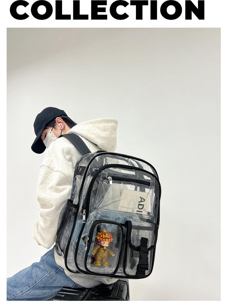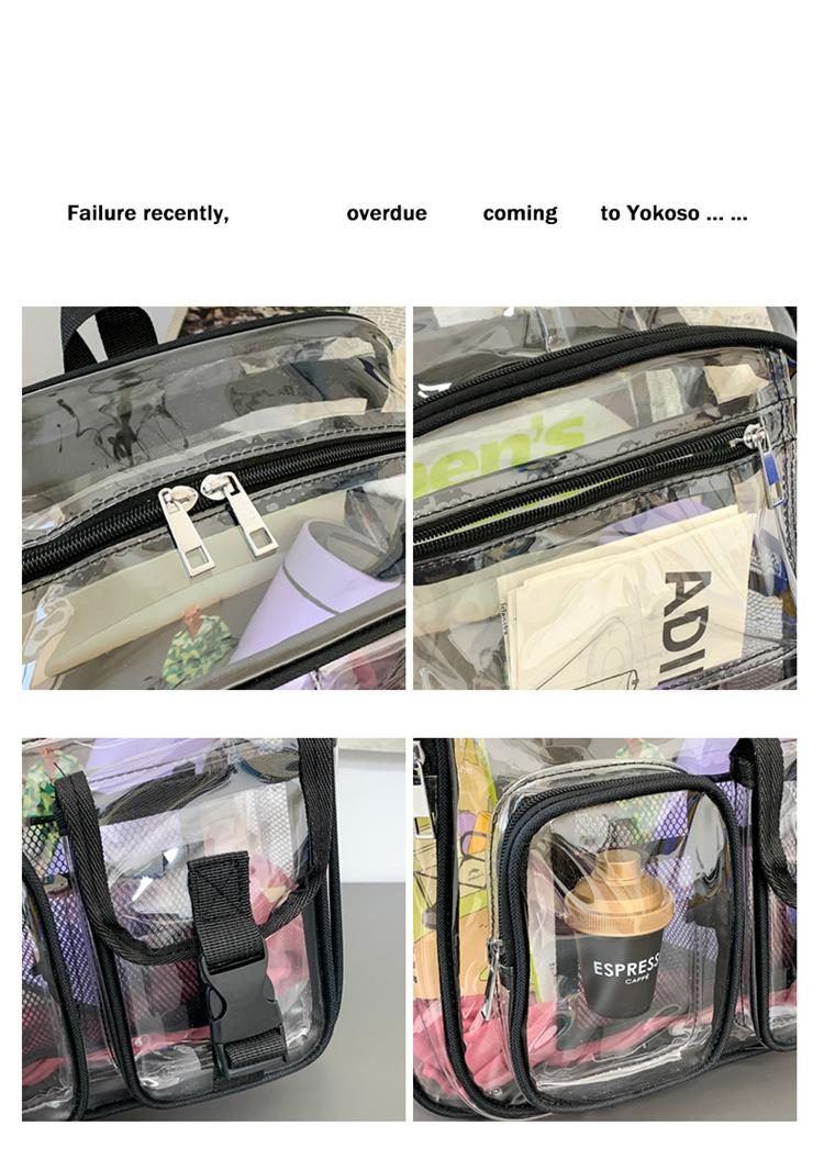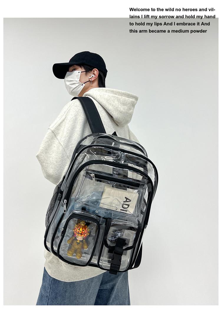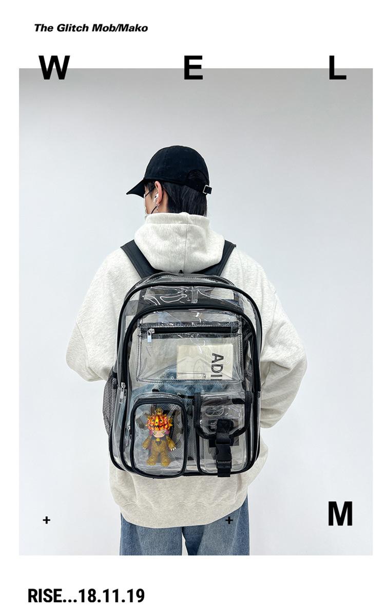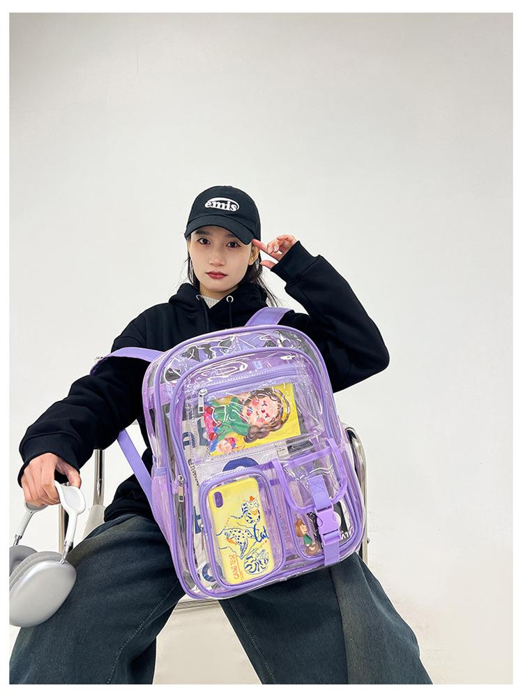 Mochila transparente transfronteriza de Amazon PVC gran capacidad mochila escolar para estudiantes doble capa multi-bolsillo mochila transparente de PVC