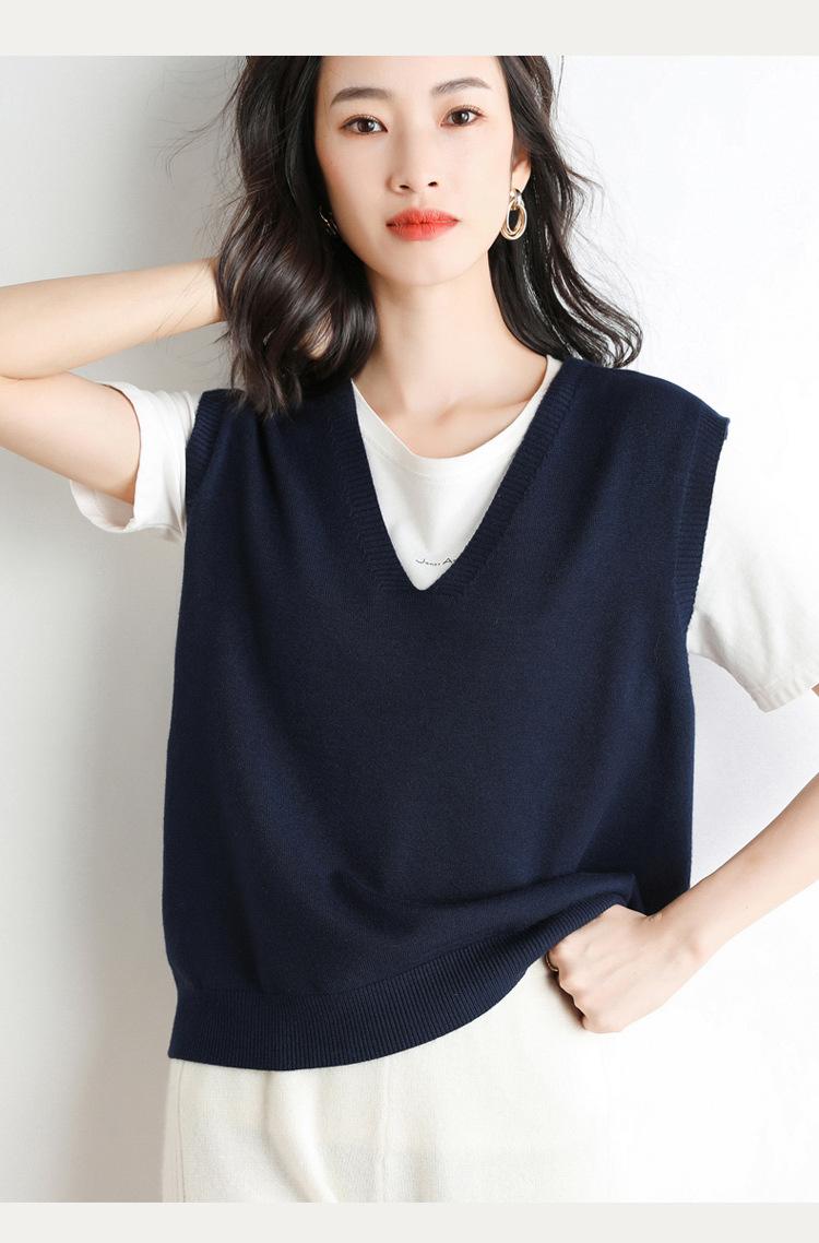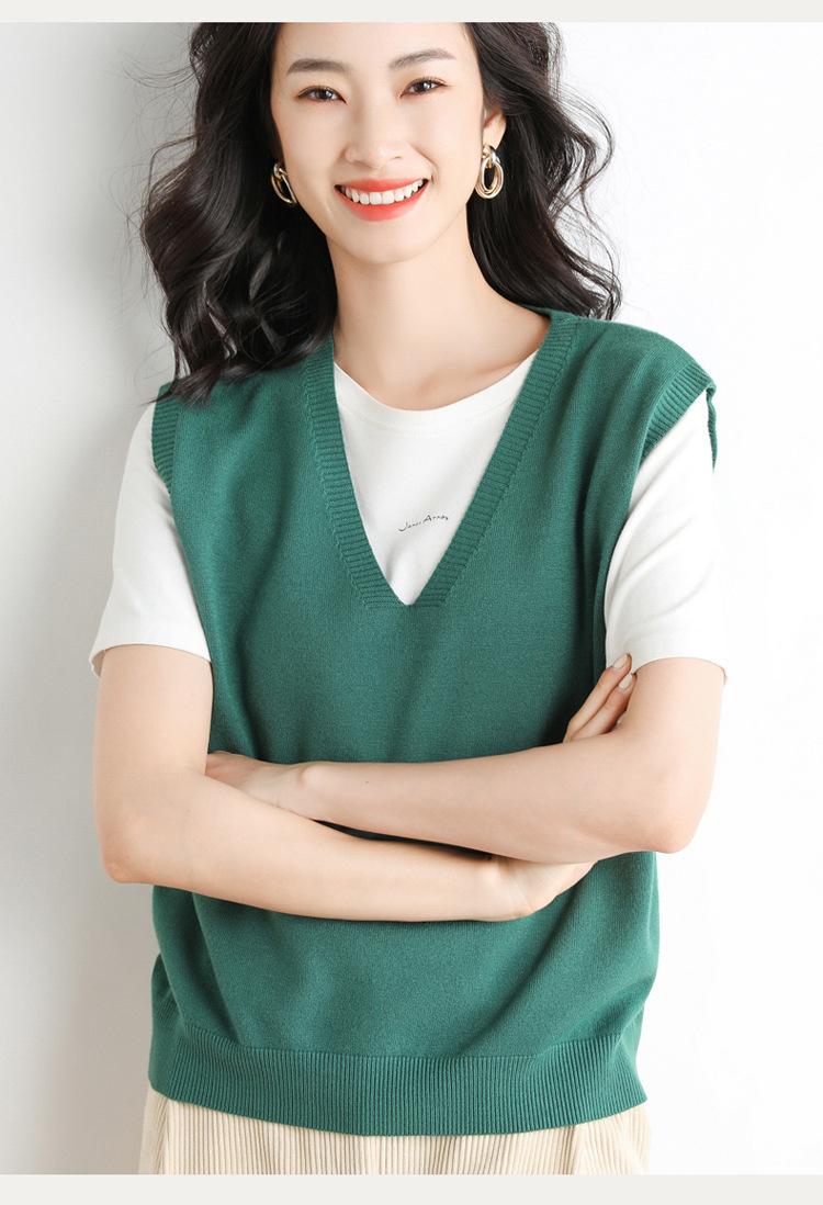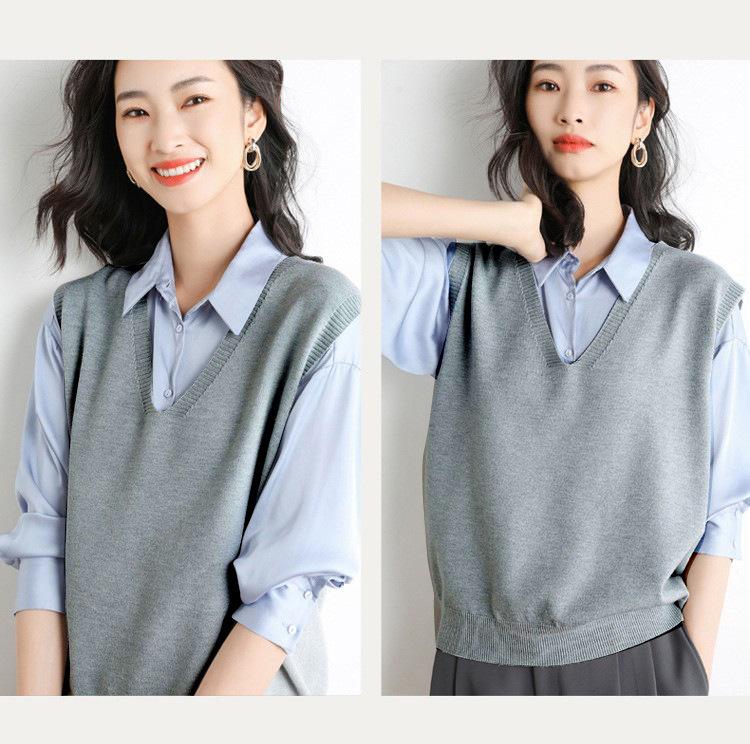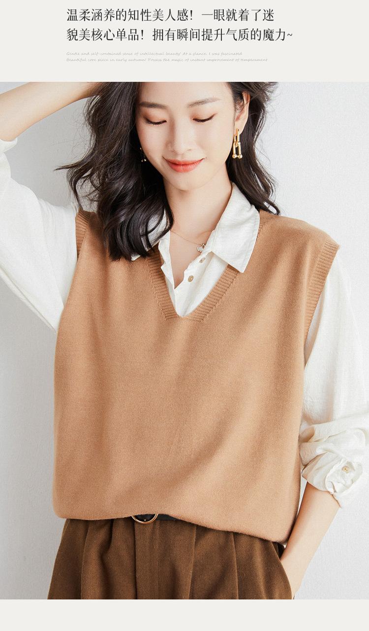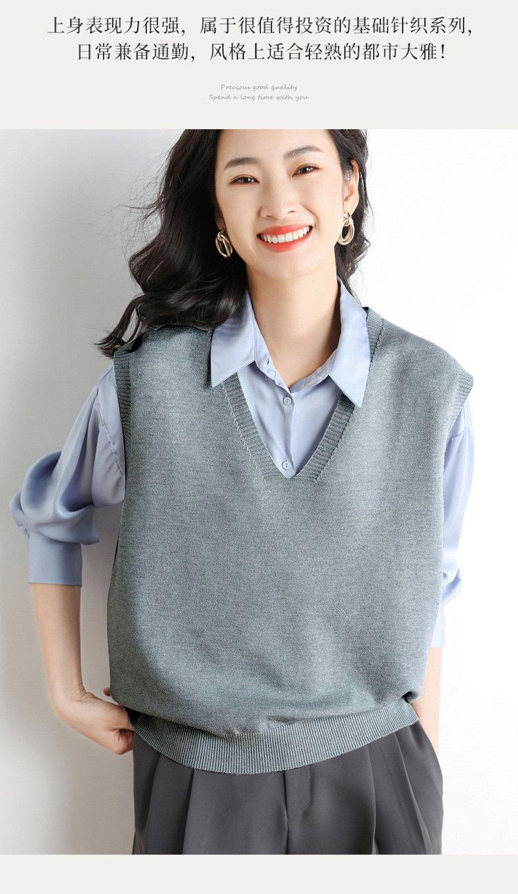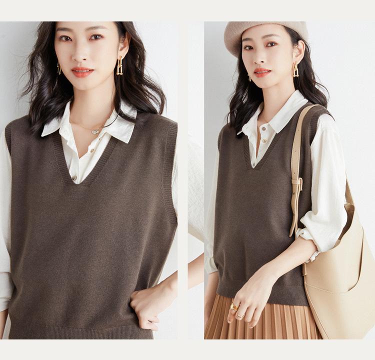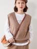 Chaleco de punto holgado con cuello en V para mujer, jersey corto de color liso, sin mangas, para otoño e invierno, 2023