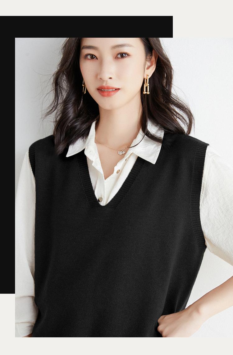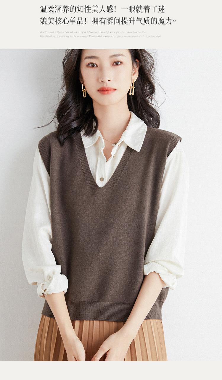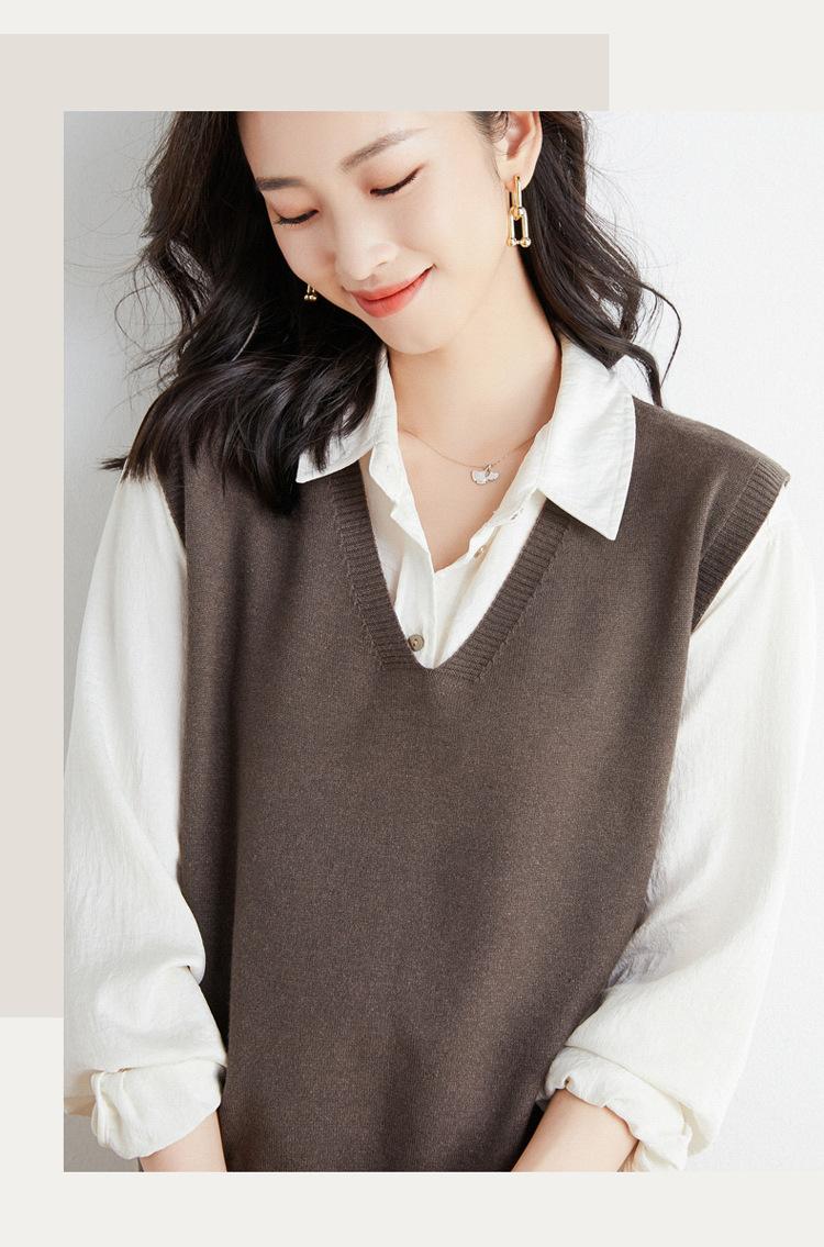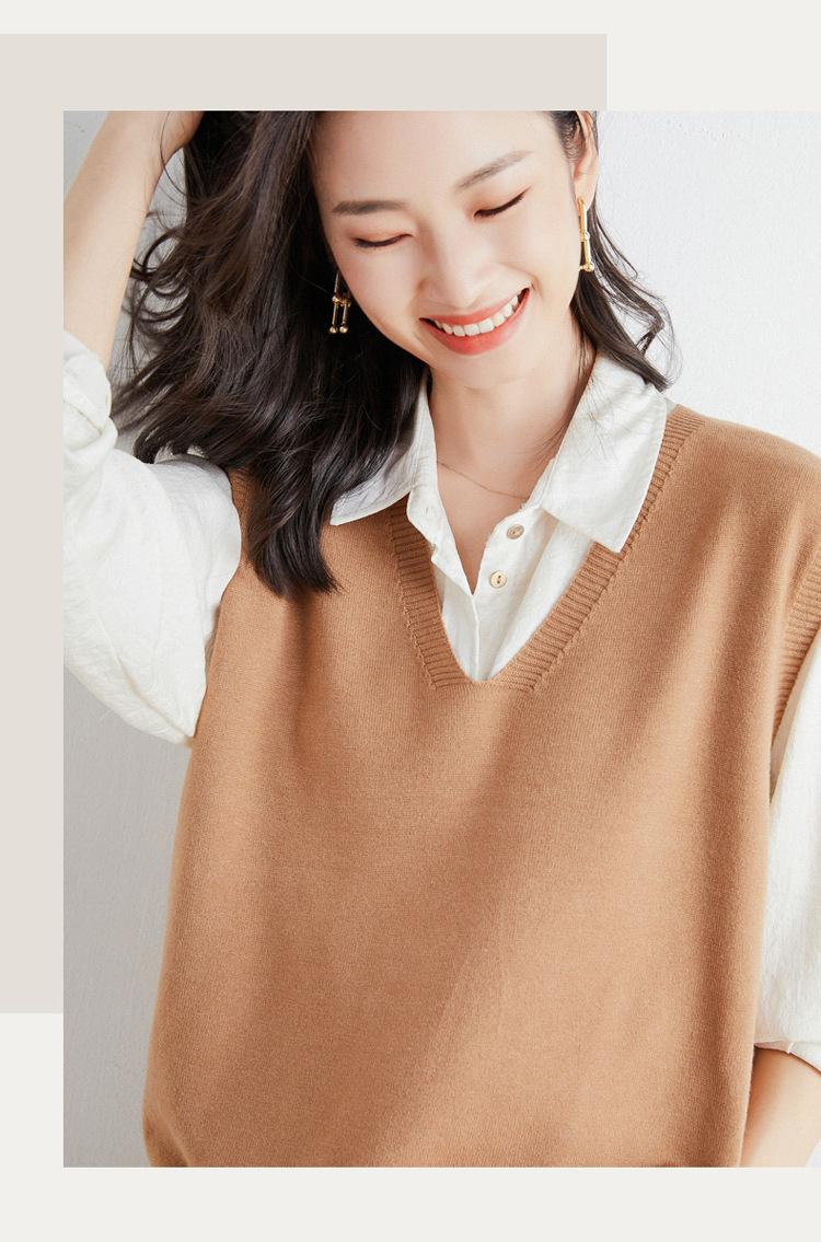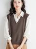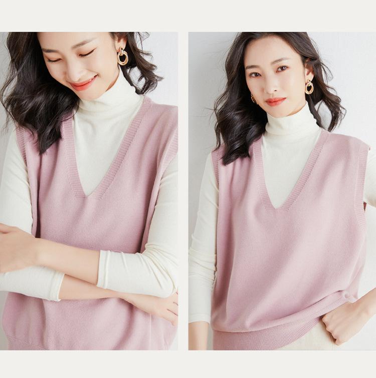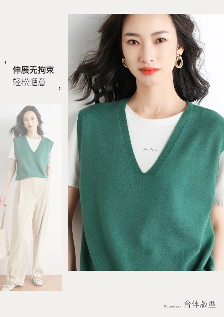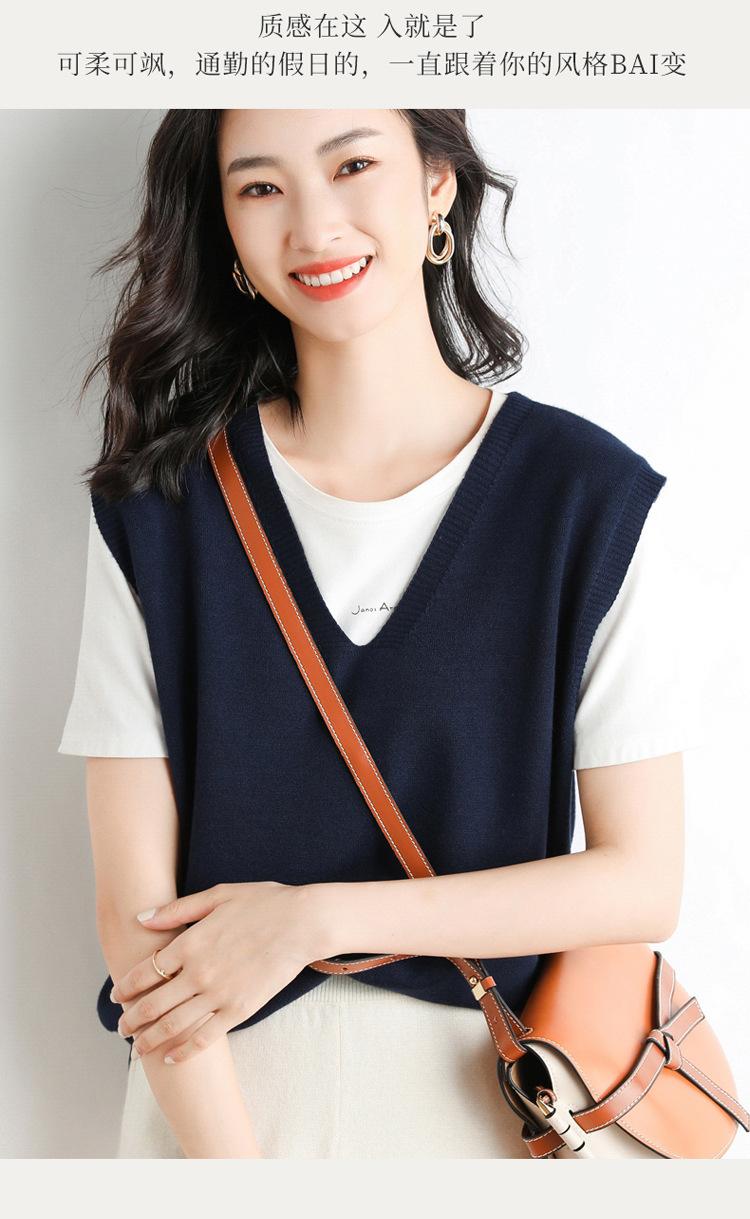 Chaleco de punto holgado con cuello en V para mujer, jersey corto de color liso, sin mangas, para otoño e invierno, 2023