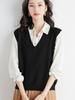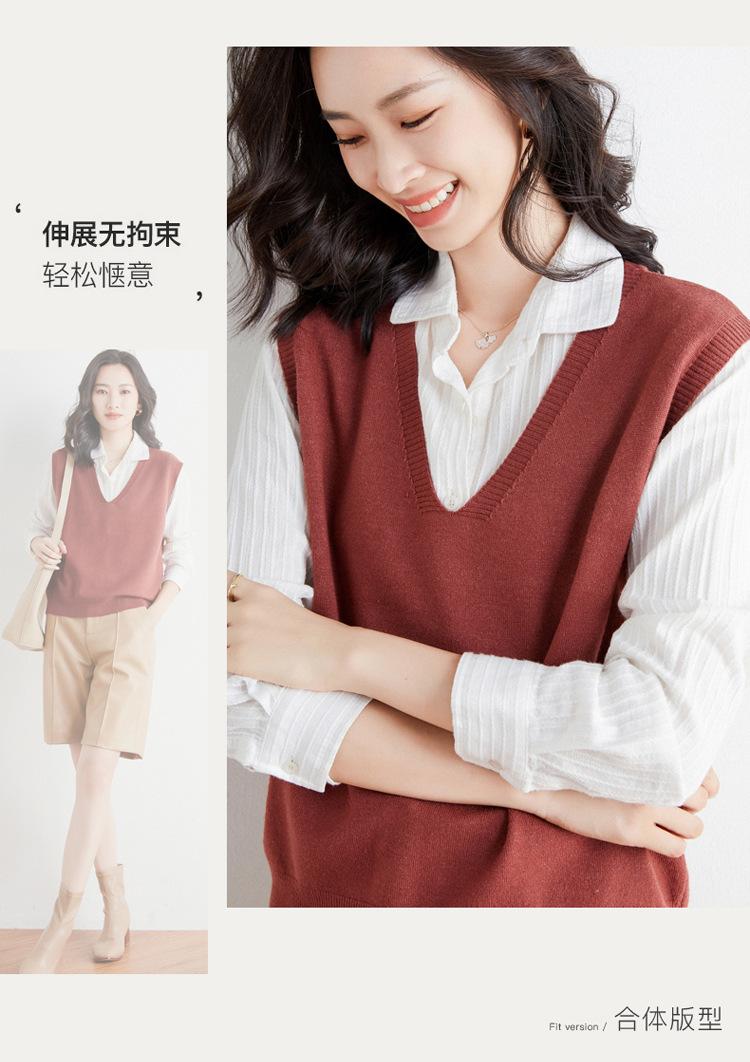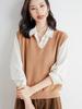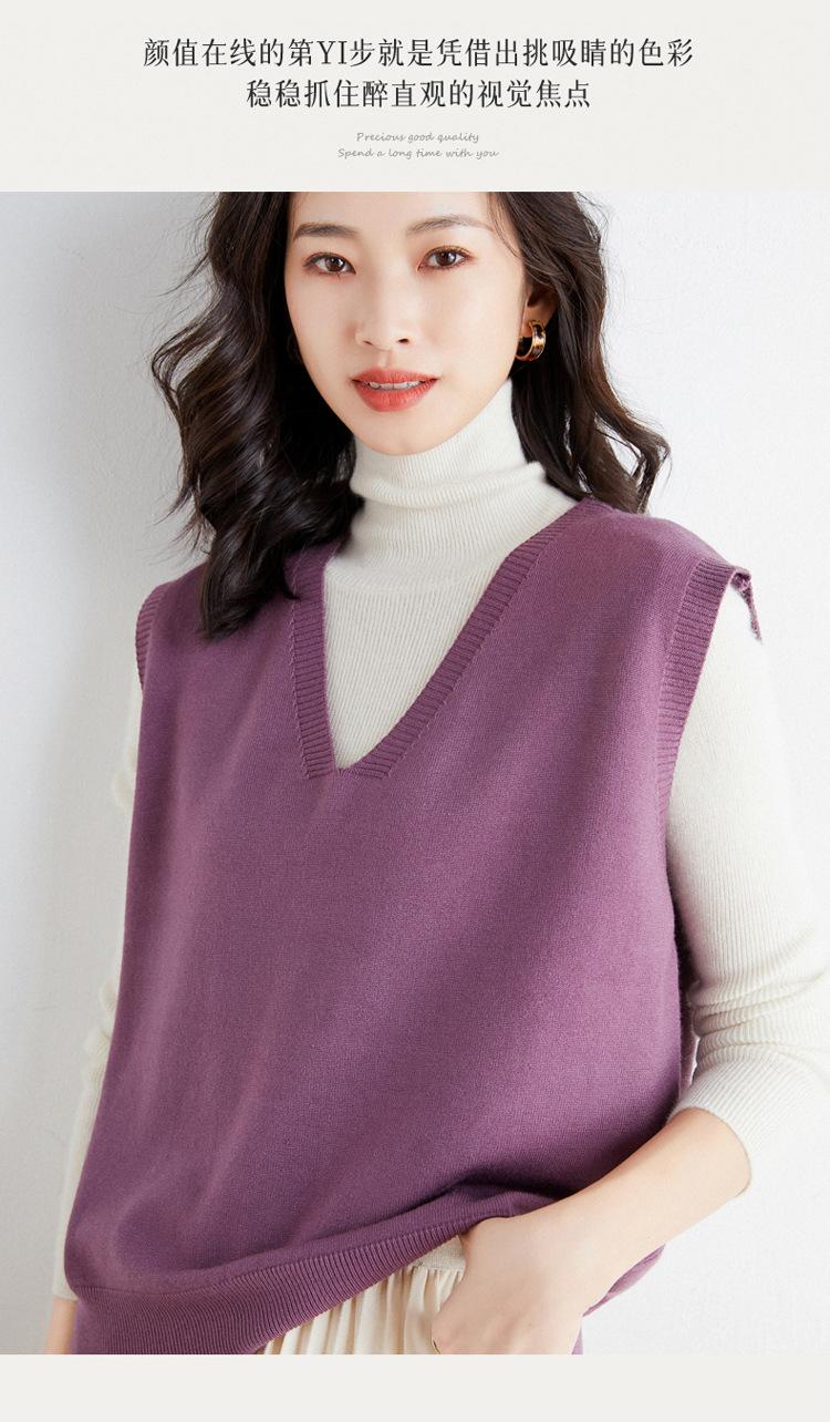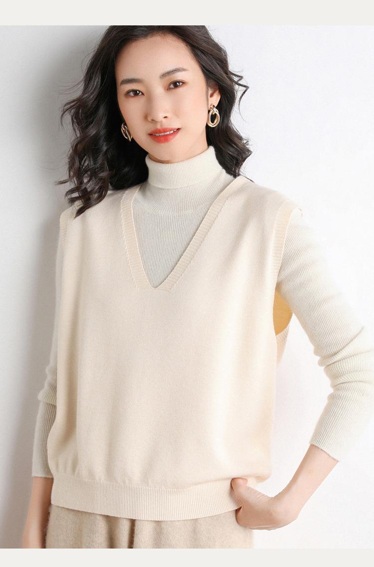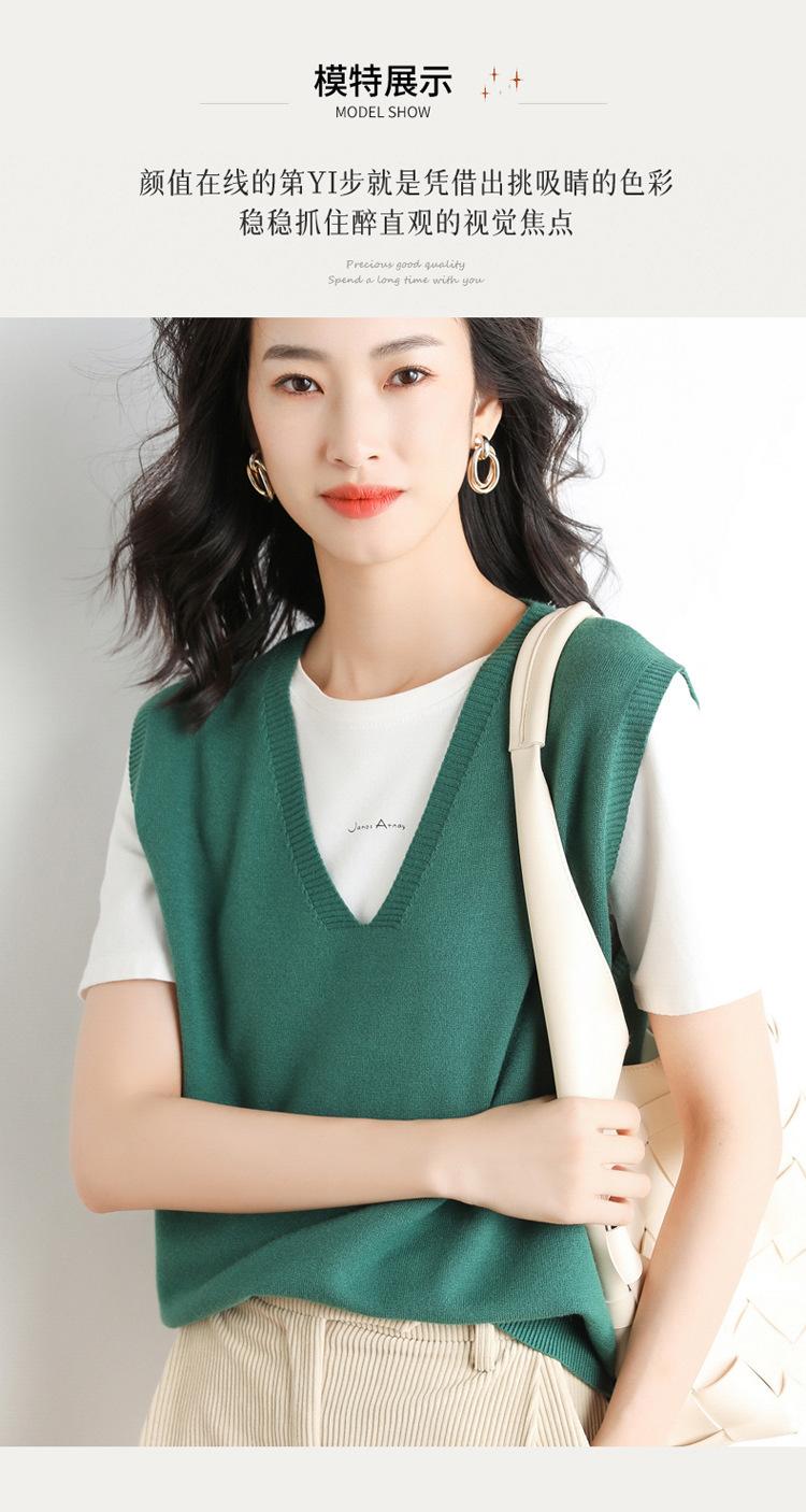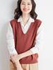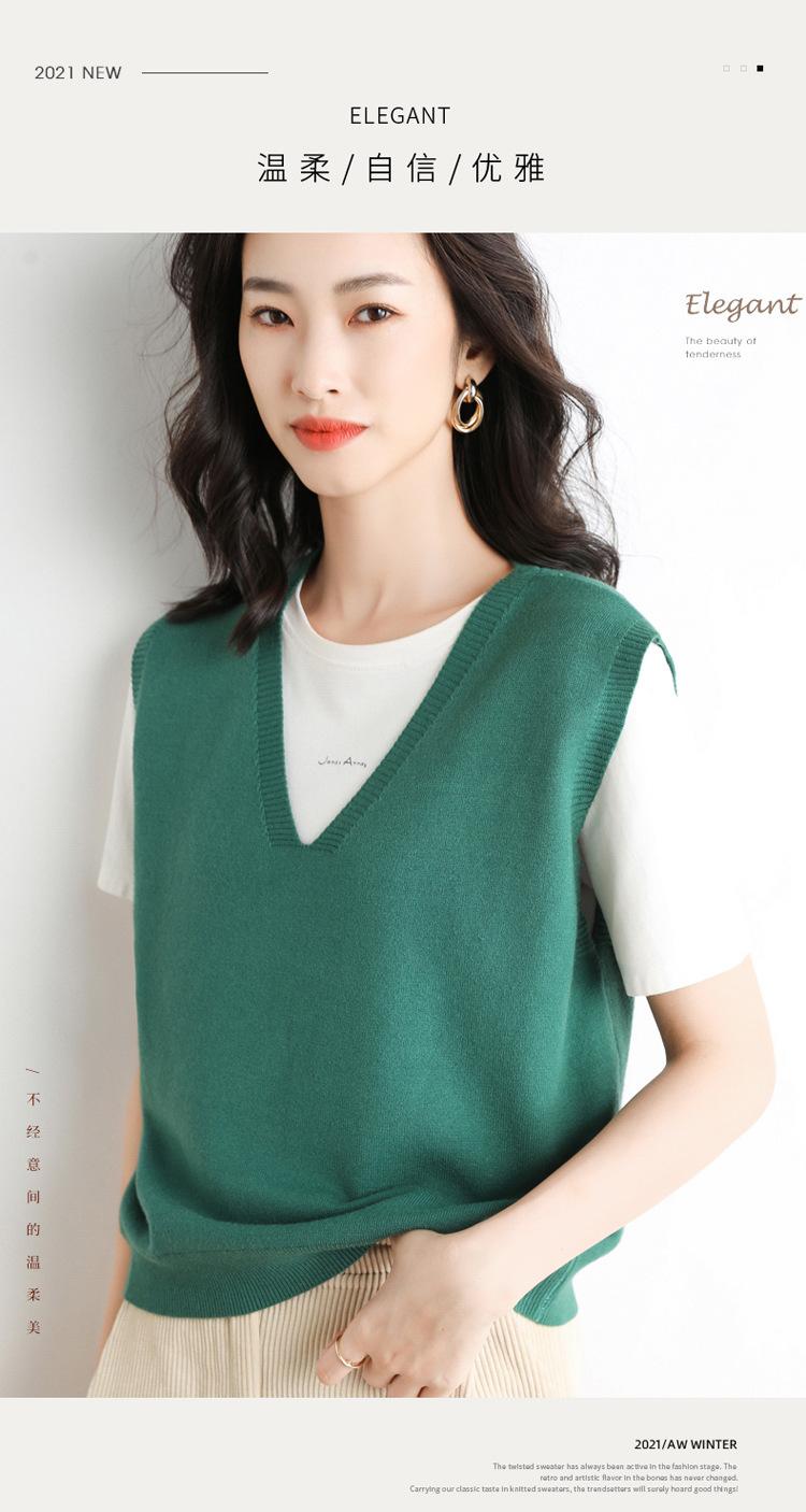 Chaleco de punto holgado con cuello en V para mujer, jersey corto de color liso, sin mangas, para otoño e invierno, 2023