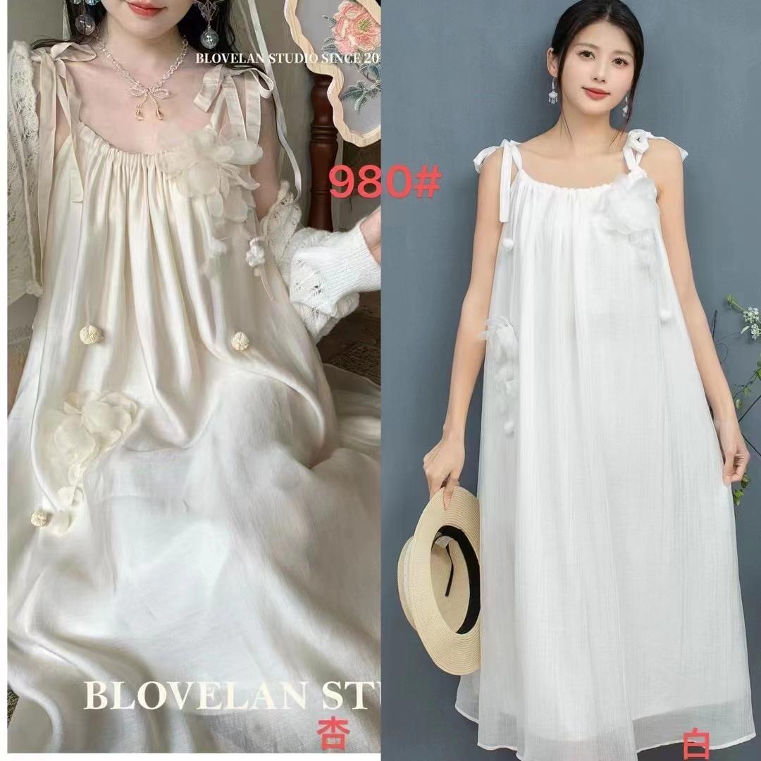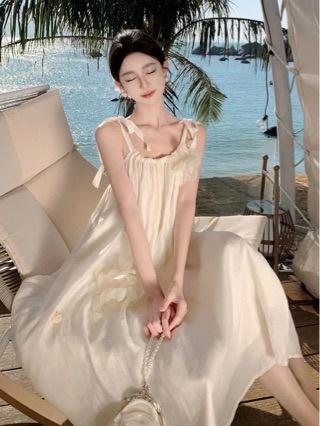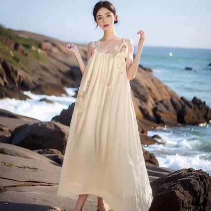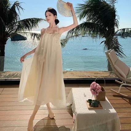 Estilo Étnico 2025 Primavera Nuevo Vestido de Tirantes Pétalo Pluma Vacaciones en la Playa Sanya