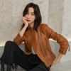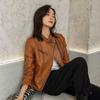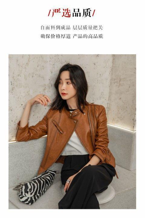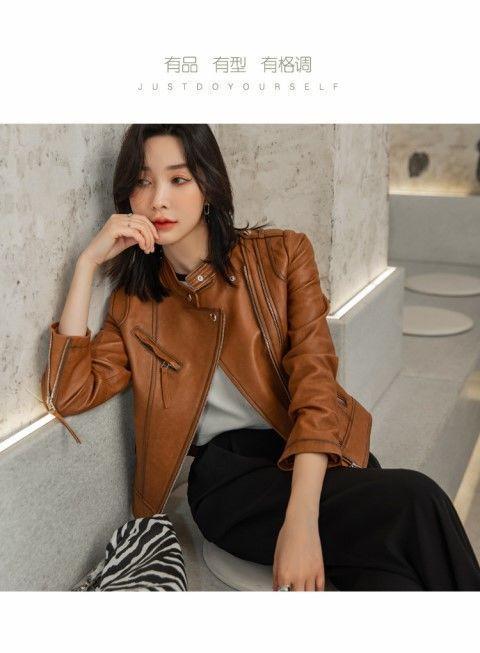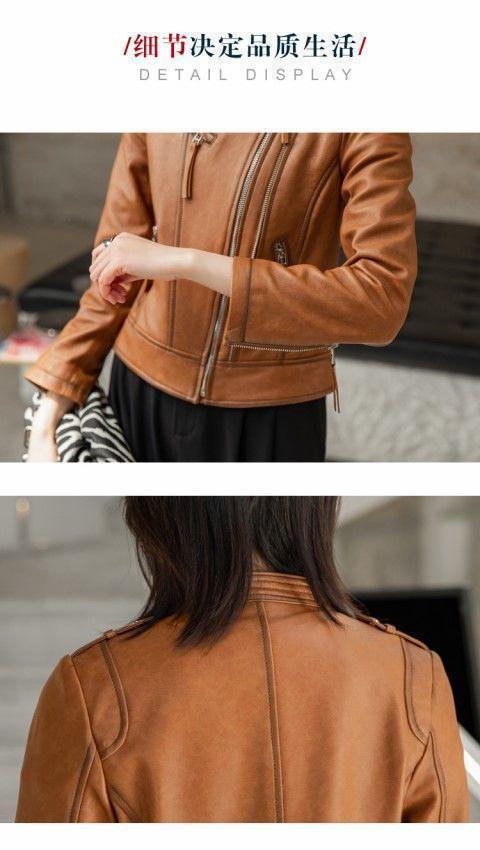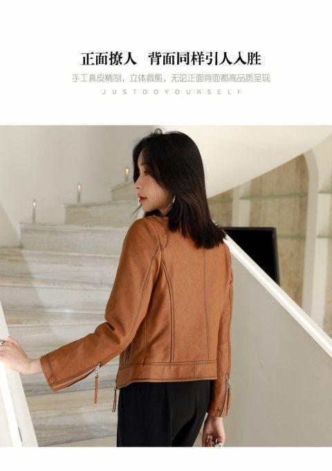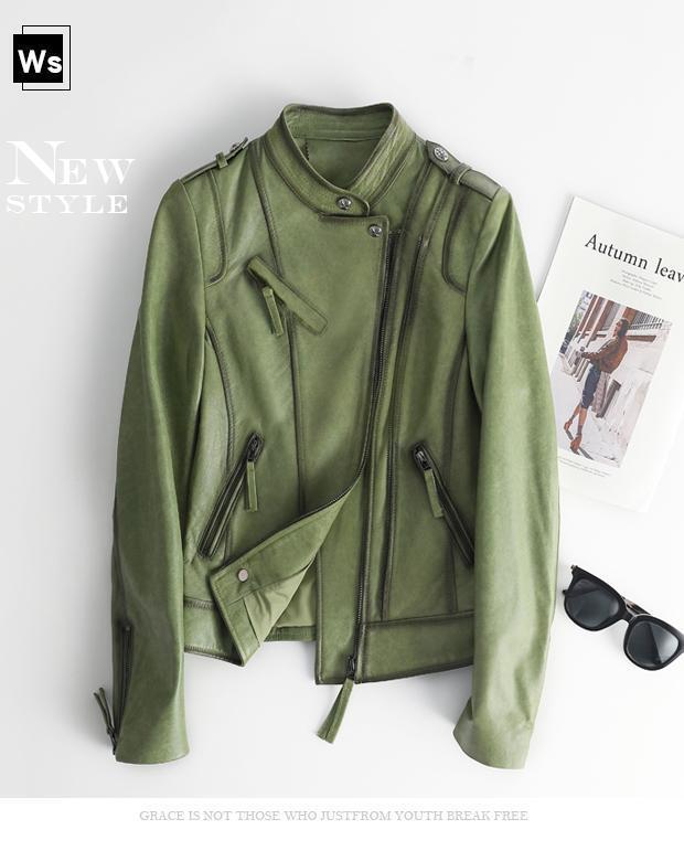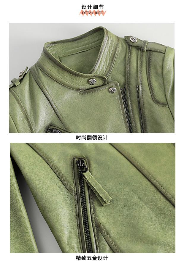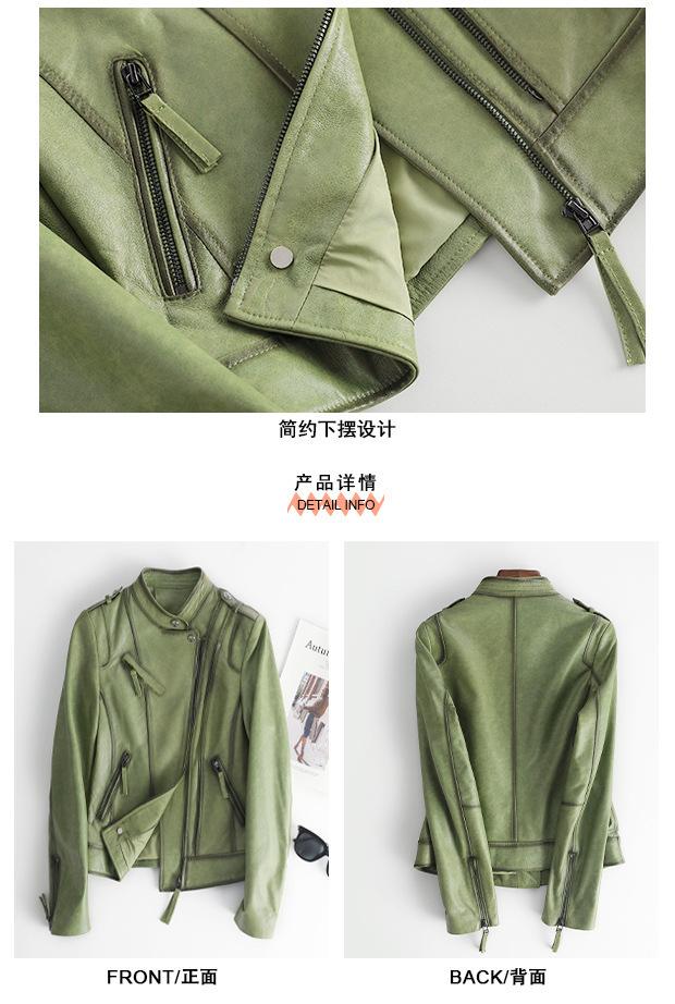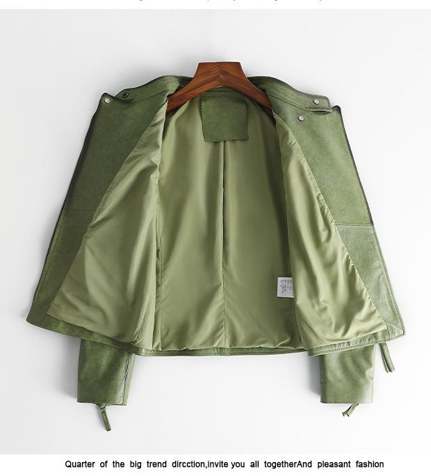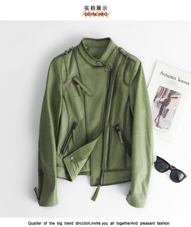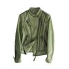 Chaqueta de Cuero Genuino Europeo para Mujer 2025 Nuevo Estilo Chaqueta Ajustada High Street Motocicleta Cuello Alto Chaqueta Corta Verde Moderna