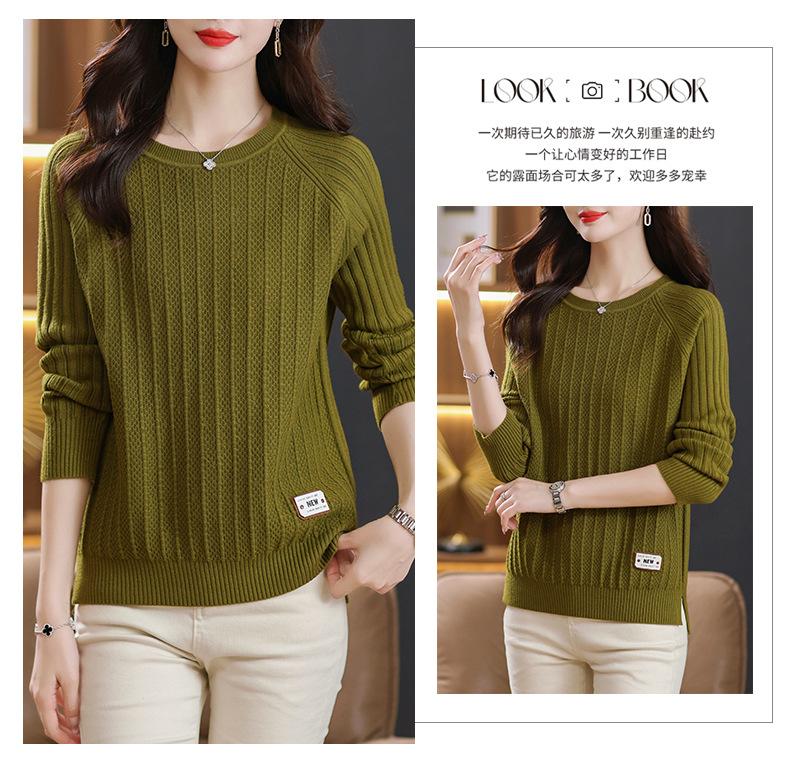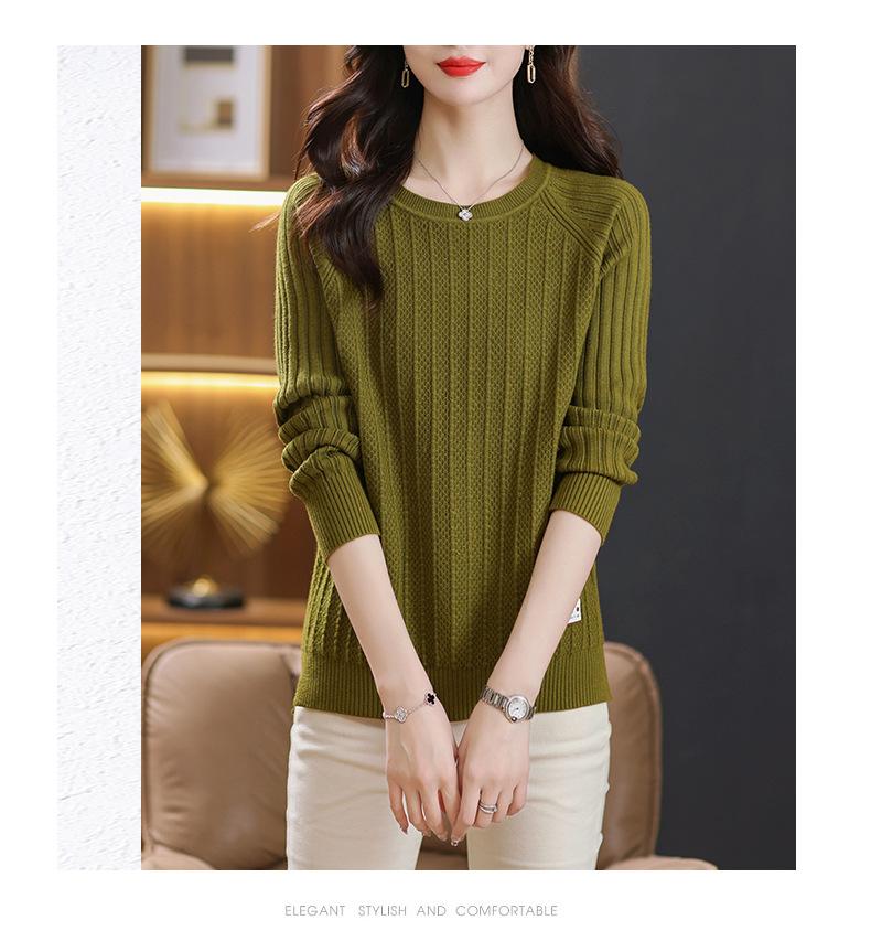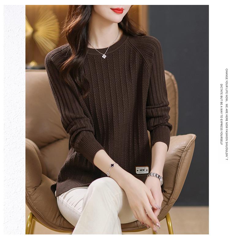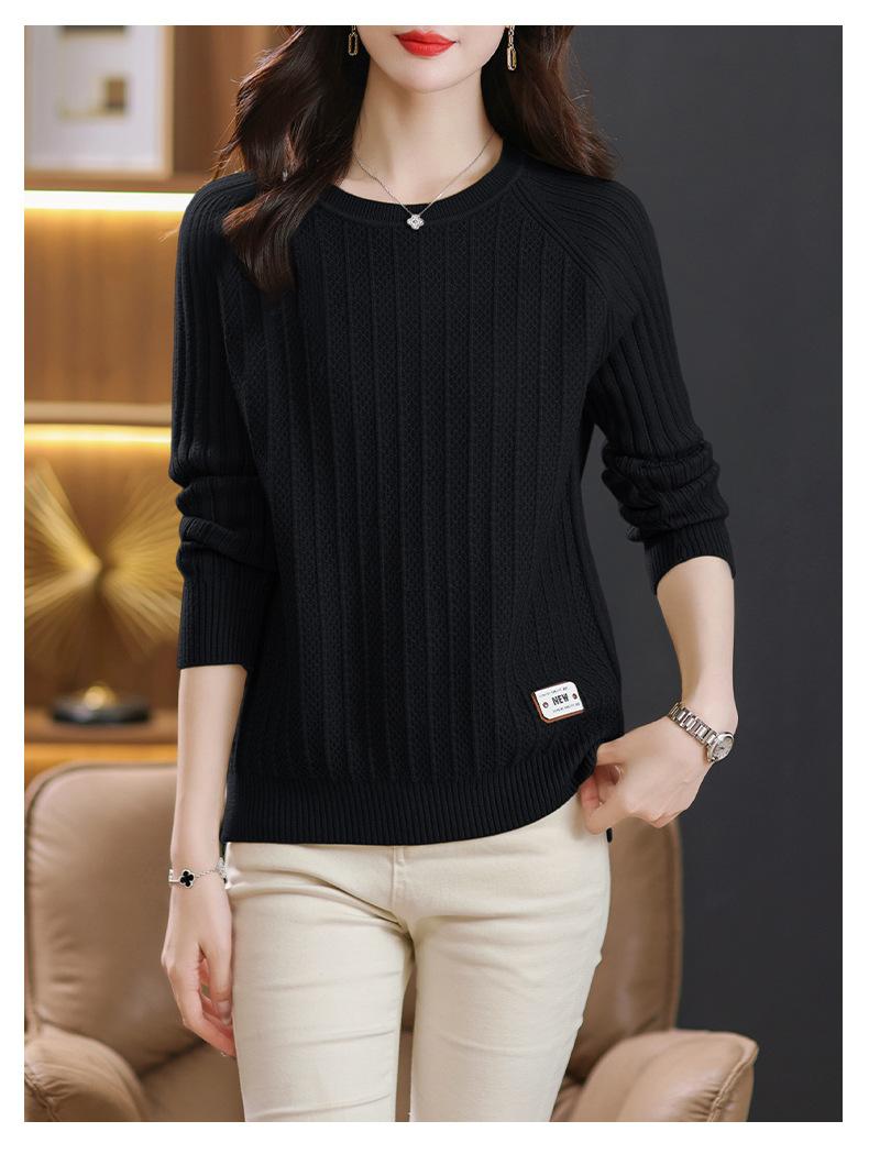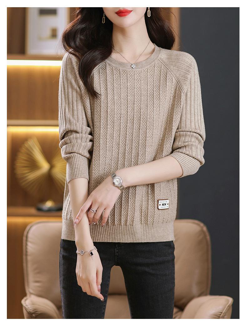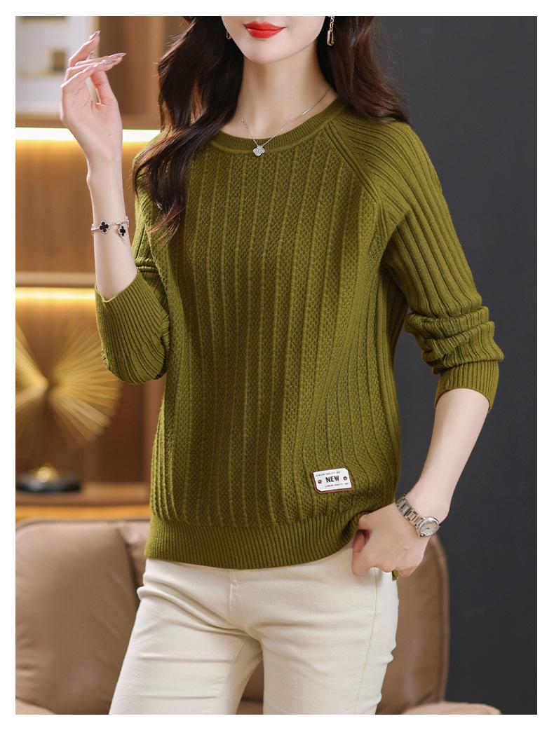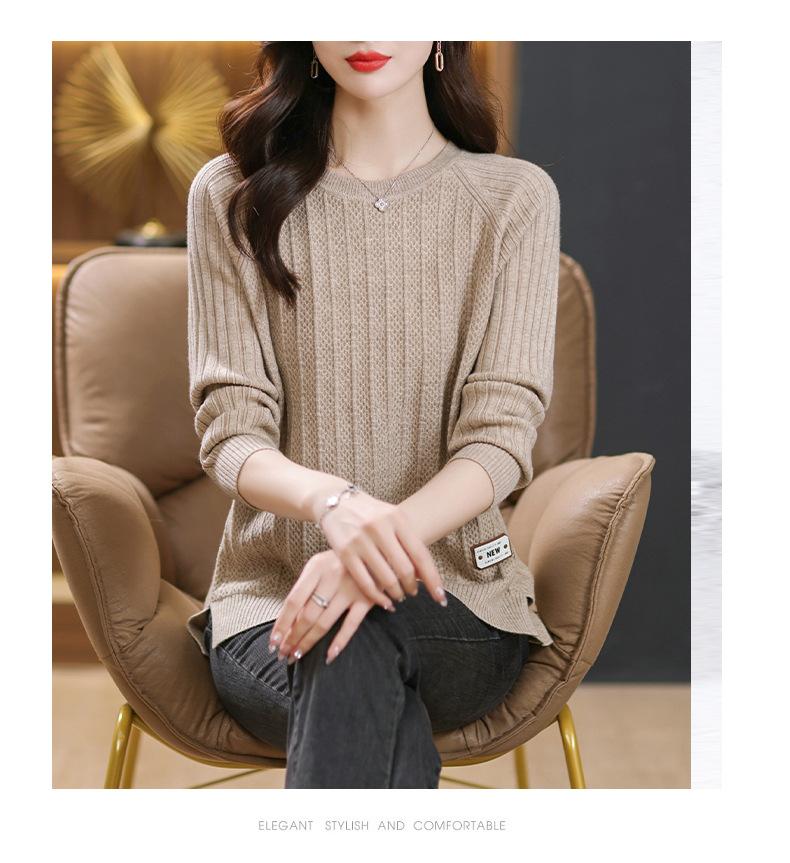 Top de punto de manga larga con cuello redondo para mujer Nuevo Otoño e Invierno Suéter interior Principios de Otoño Grueso Ropa de Madre Camiseta básica