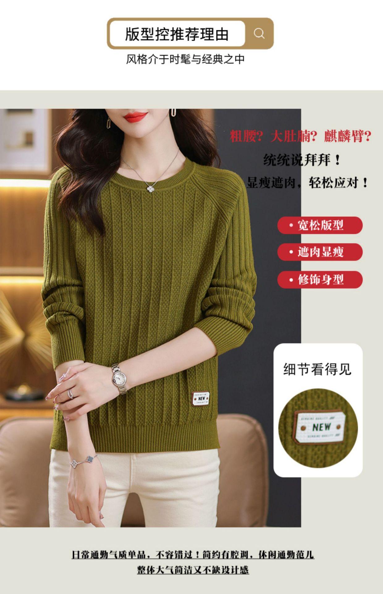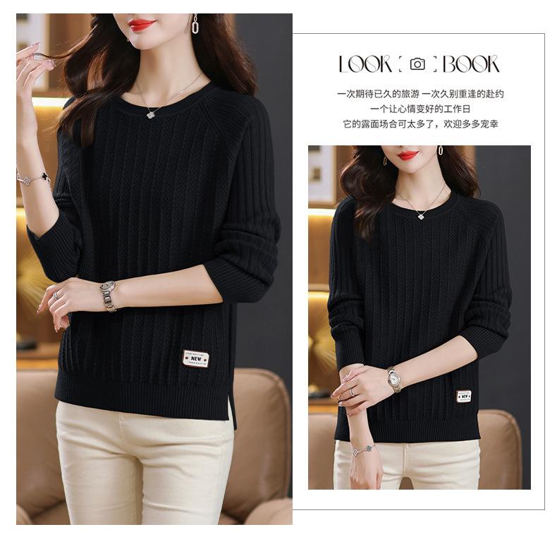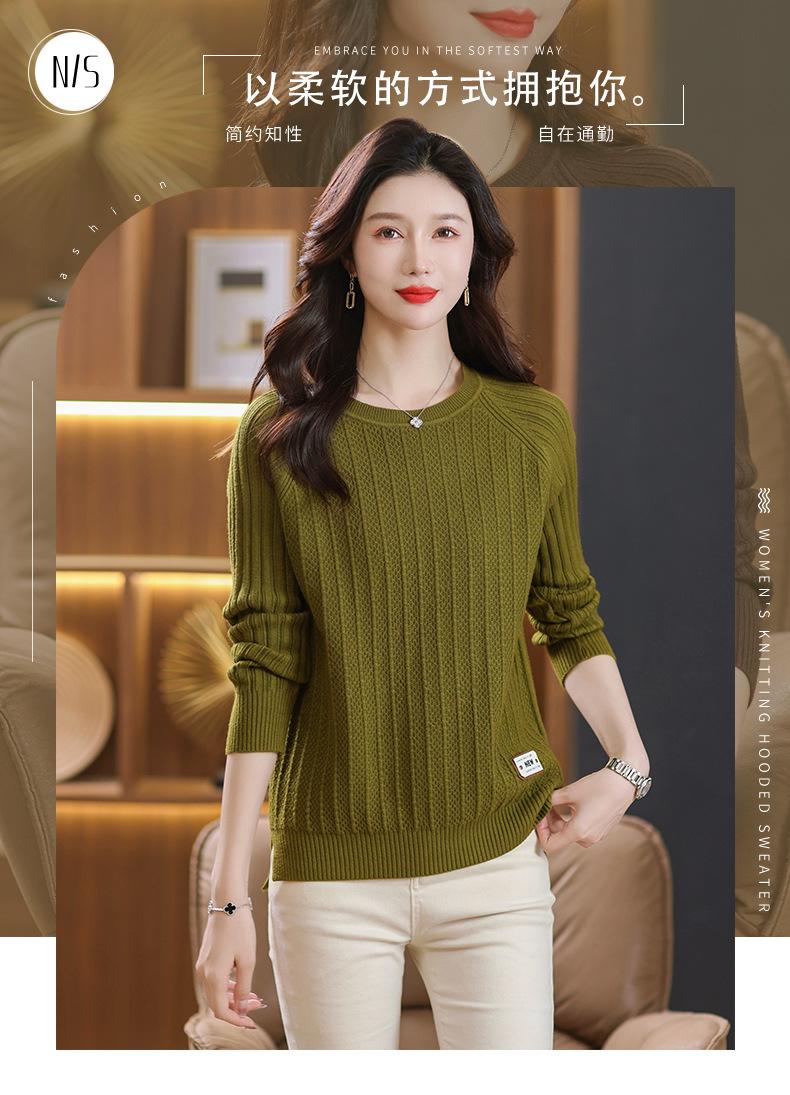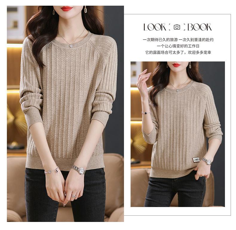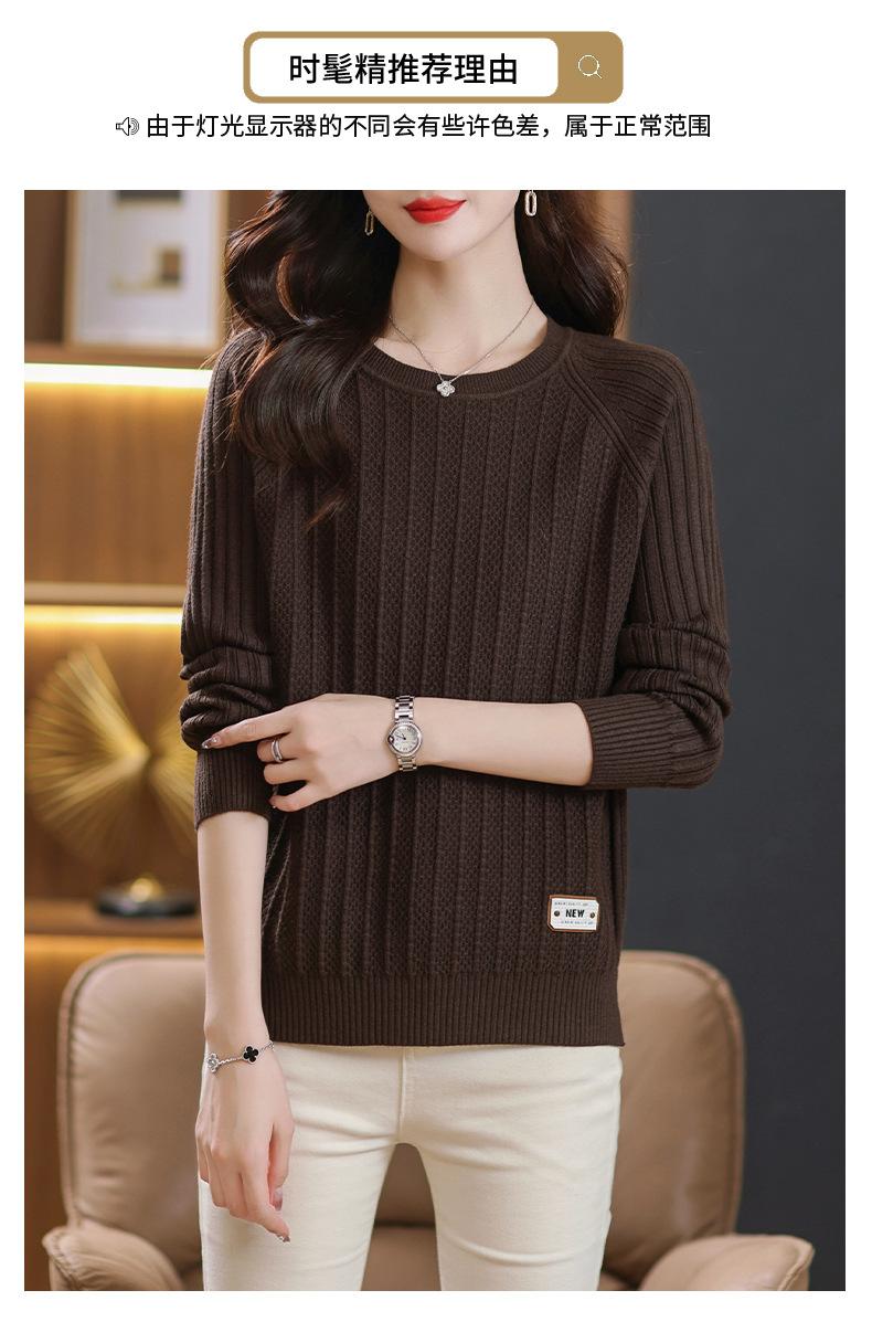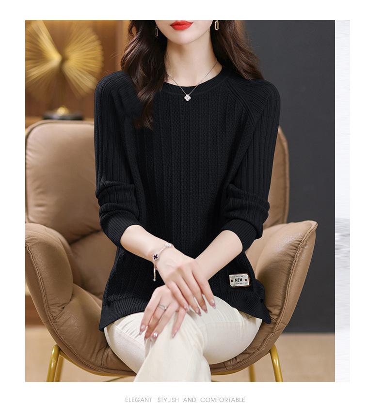 Top de punto de manga larga con cuello redondo para mujer Nuevo Otoño e Invierno Suéter interior Principios de Otoño Grueso Ropa de Madre Camiseta básica