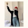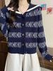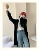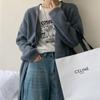 Comercio Exterior Nuevo Sentido del Diseño Bolsillo Color Sólido Largo Medio Cárdigan de Punto Cuello en V Casual Para Mujer Combinable Top de Punto