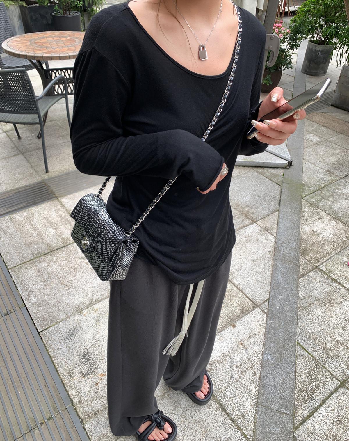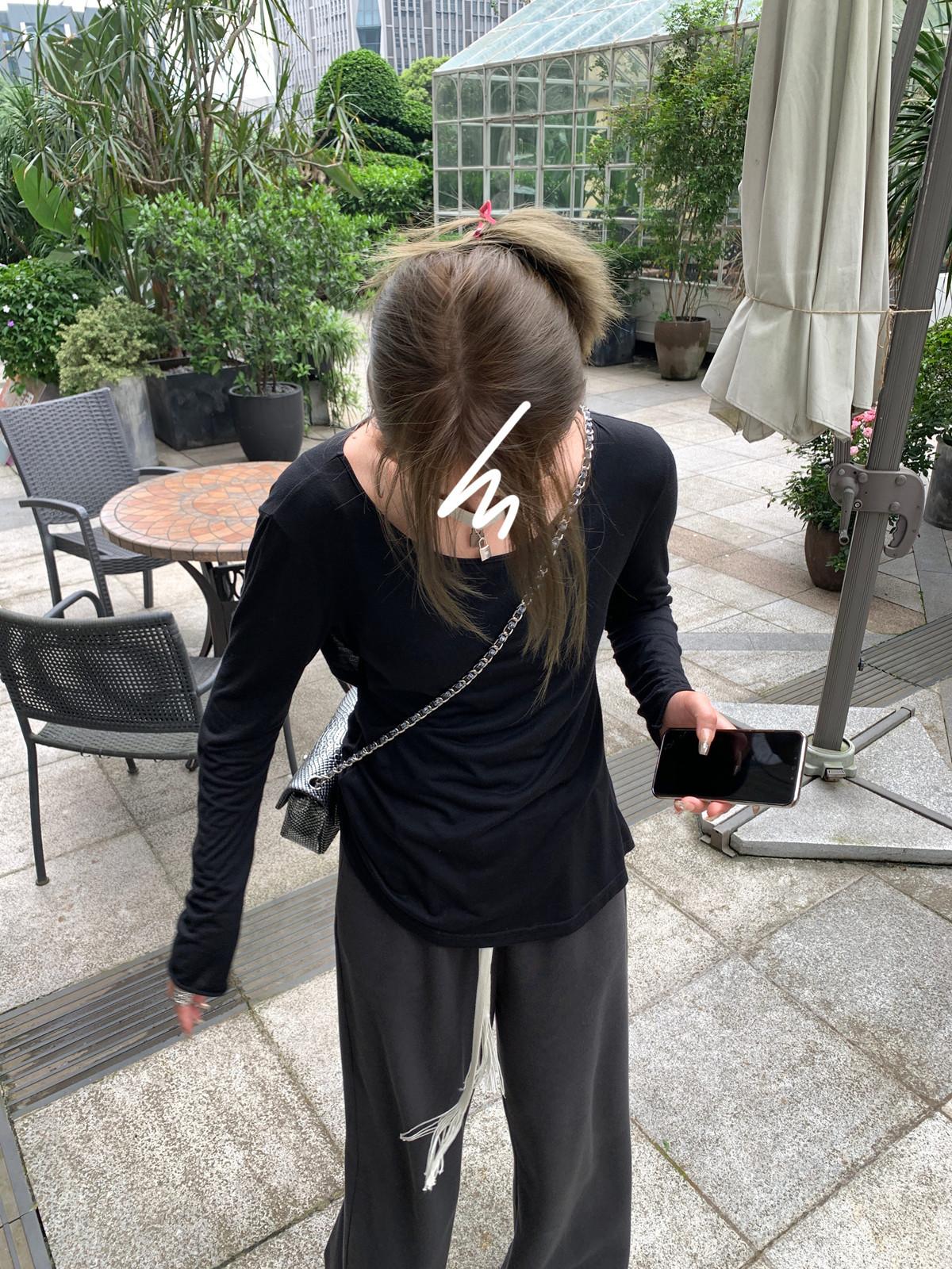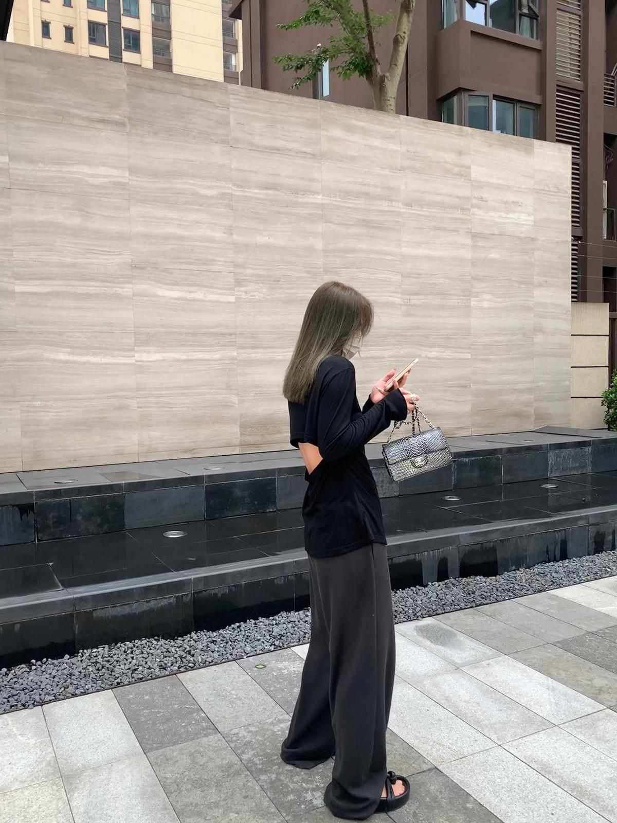 El dobladillo trasero curvo debilita la línea de la cadera y crea un estilo holgazán.