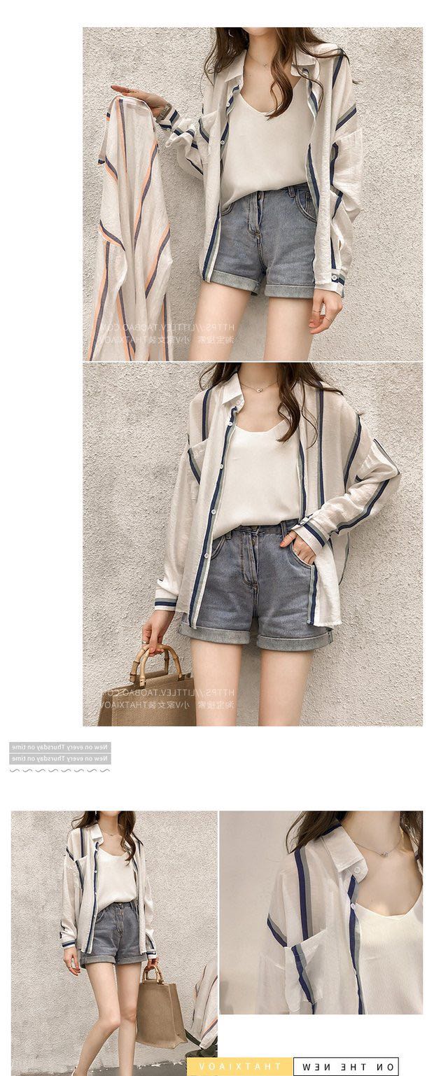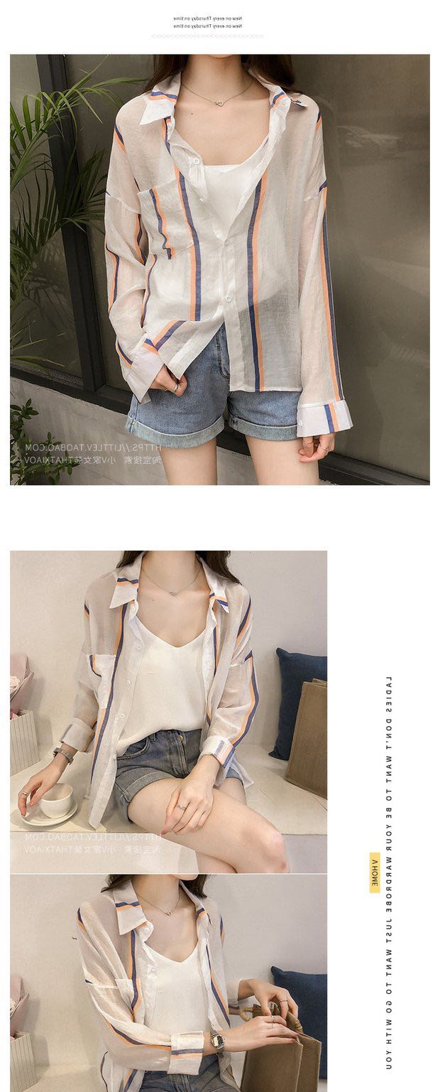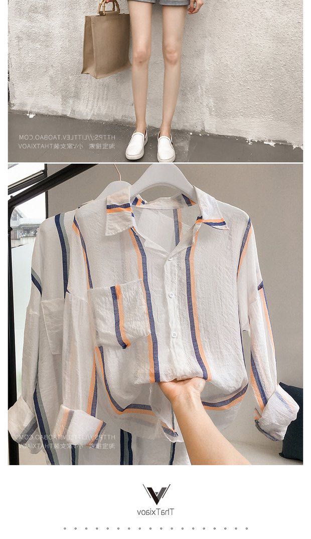 Ropa de protección solar para mujer, novedad de verano 2023, camisa a rayas de talla grande, ropa de protección solar de gasa holgada, cárdigan ultrafino