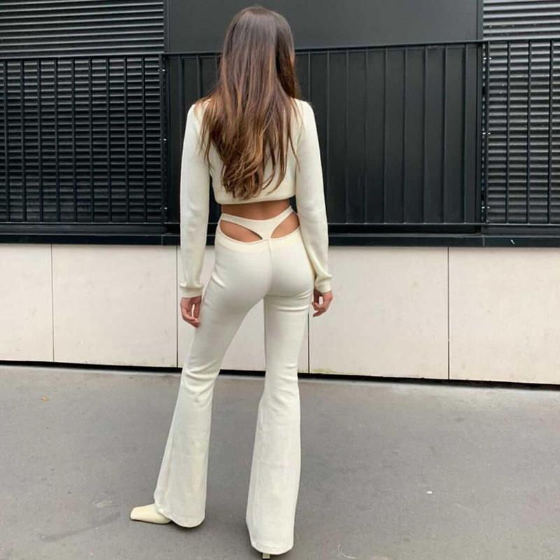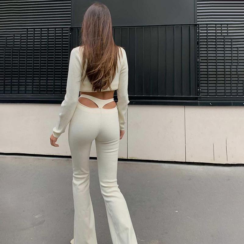 Pantalones acampanados de color sólido de cintura alta sexy europeos y americanos de poesía Meiluo, pantalones casuales delgados elásticos de moda nuevos de otoño para mujer