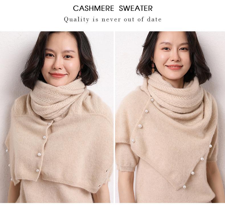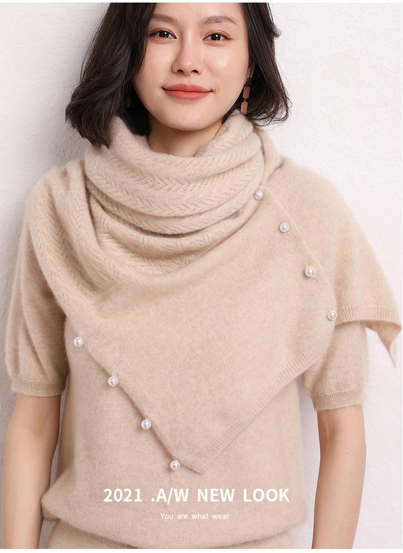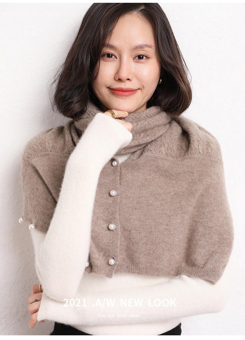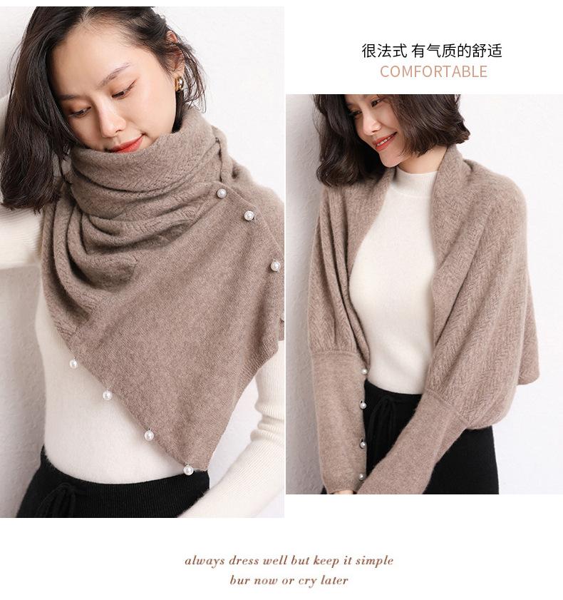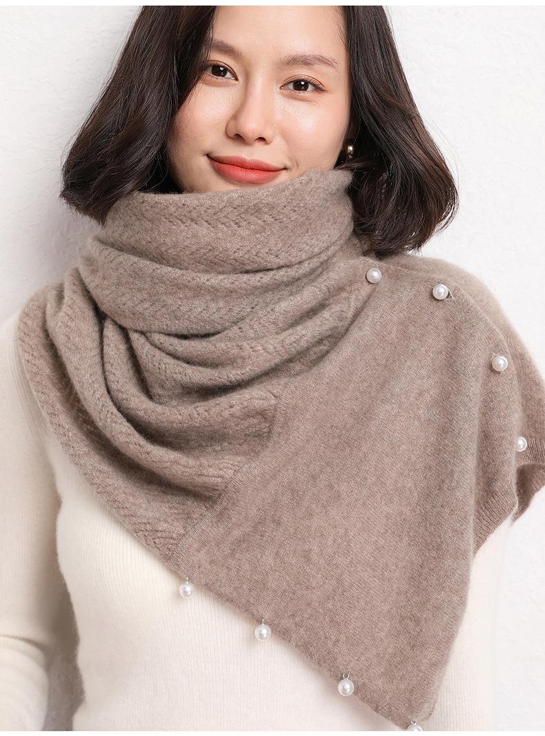 Bufanda de Punto de Lana Color Sólido Hebilla de Perla Chal Grande Multifuncional Cálido Combinable Bufanda Multiusos Otoño e Invierno Nuevo