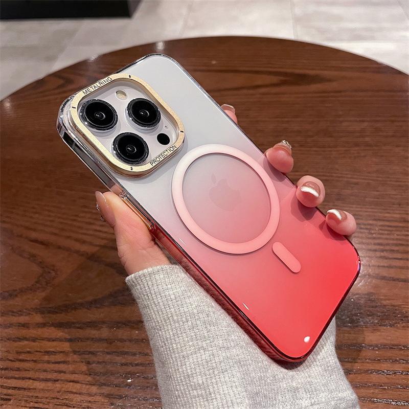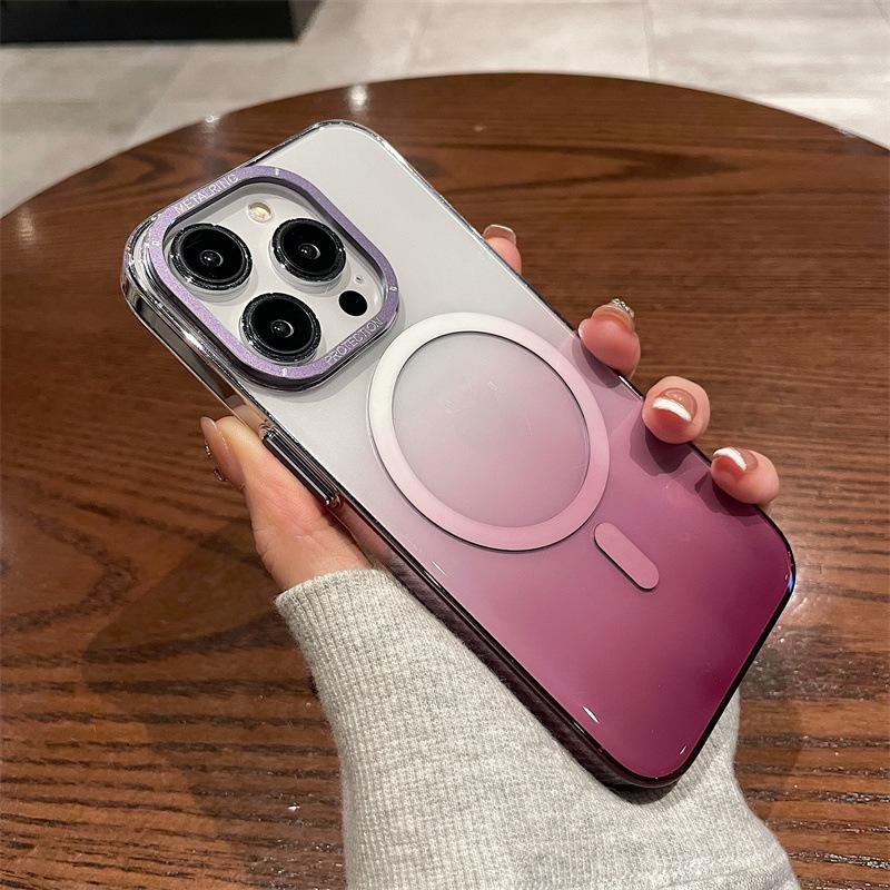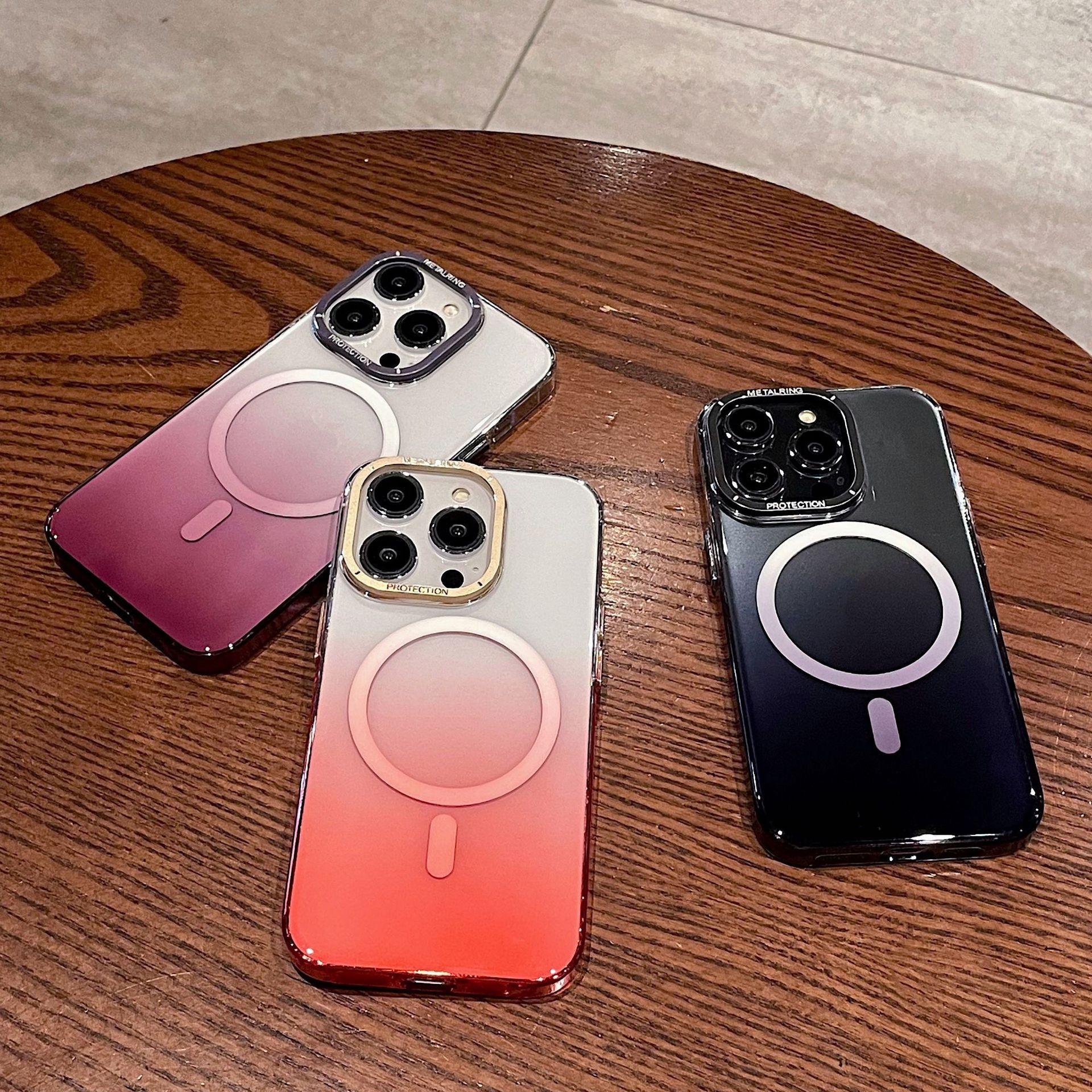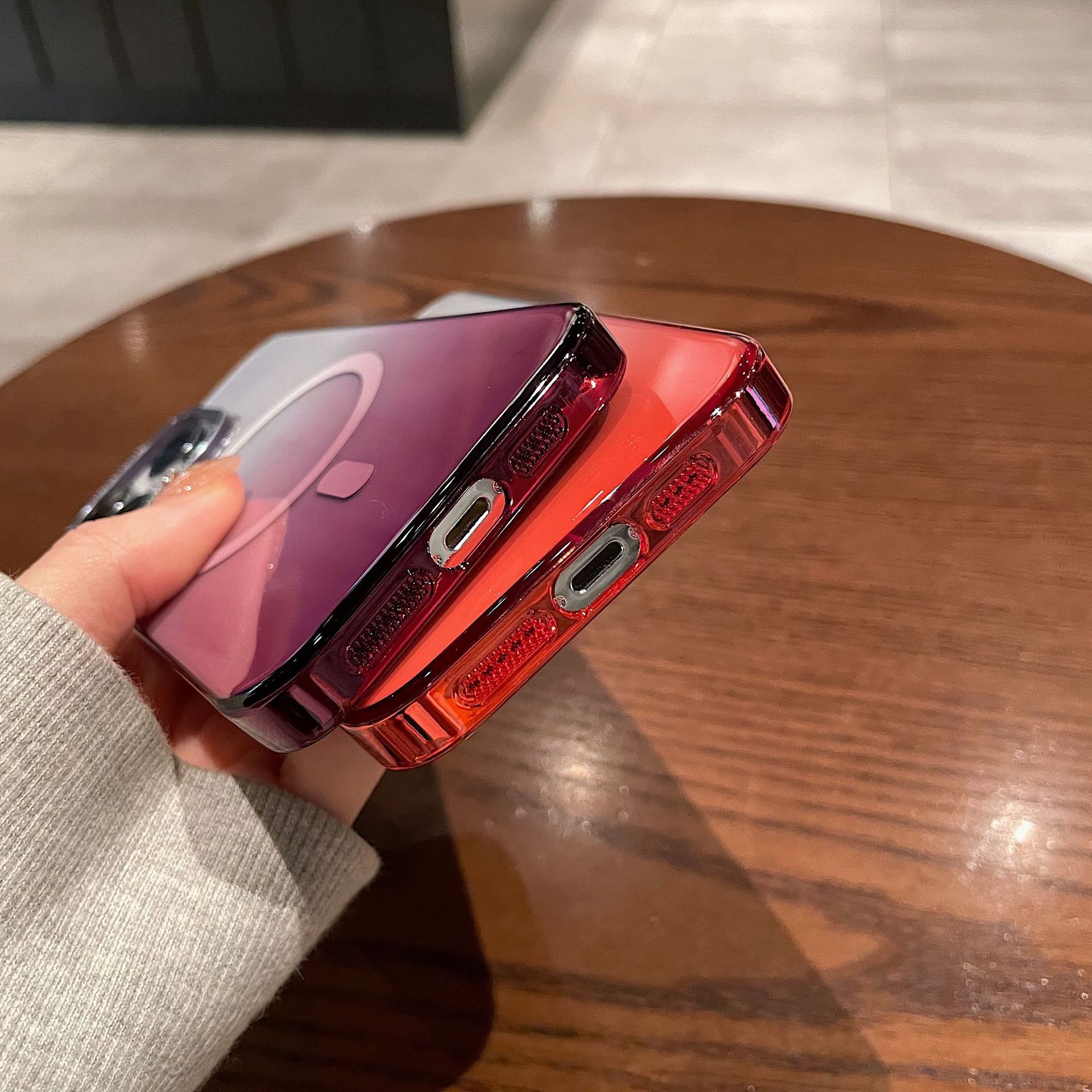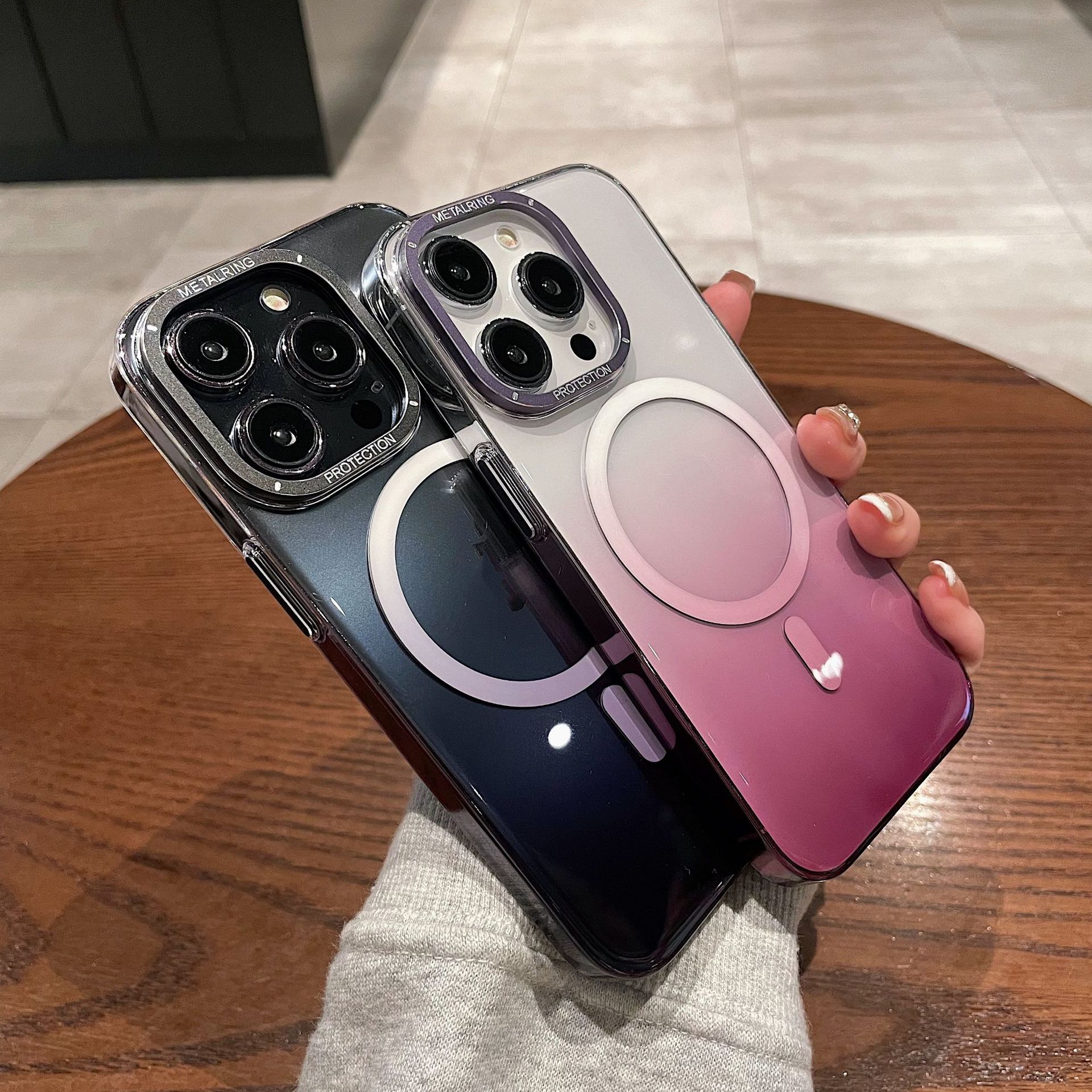 Estuche de PC con degradado de cristal para iPhone 14, carga inalámbrica, magnético, 13 Pro, estuche protector de lente 12
