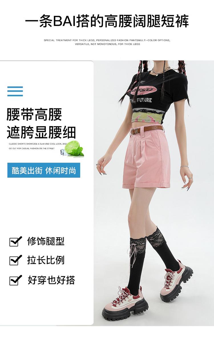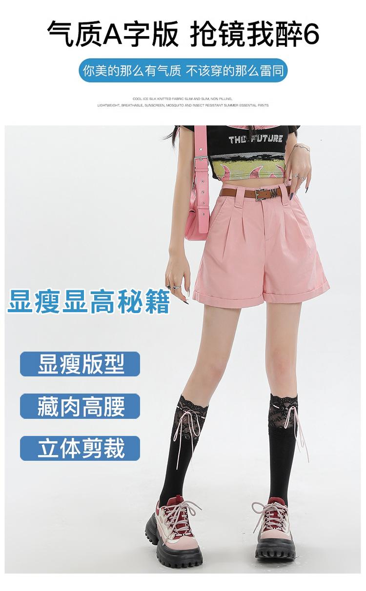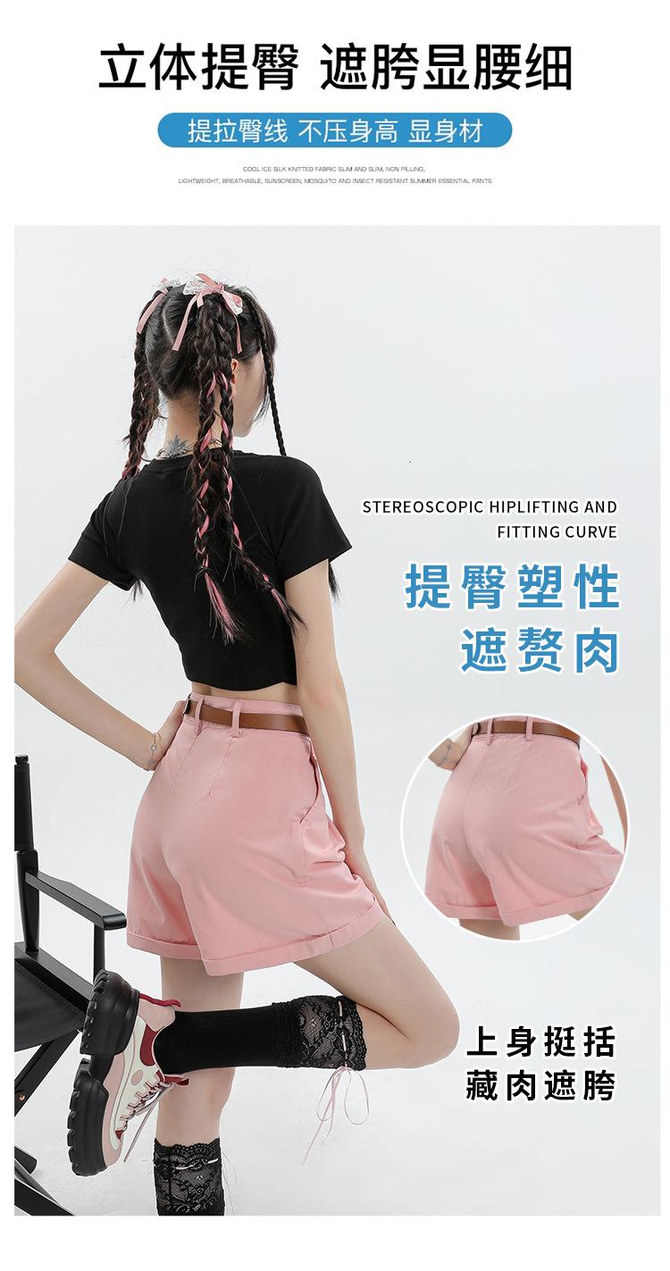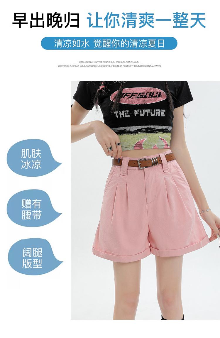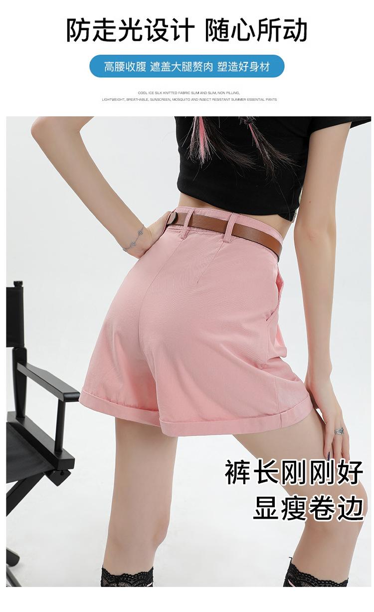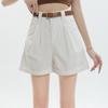 Verano 2024 Nuevo Tejido Tencel Algodón Shorts Casuales para Mujer Diseño de Cinco Puntos Cintura Alta