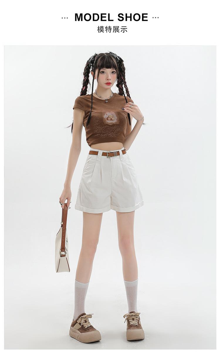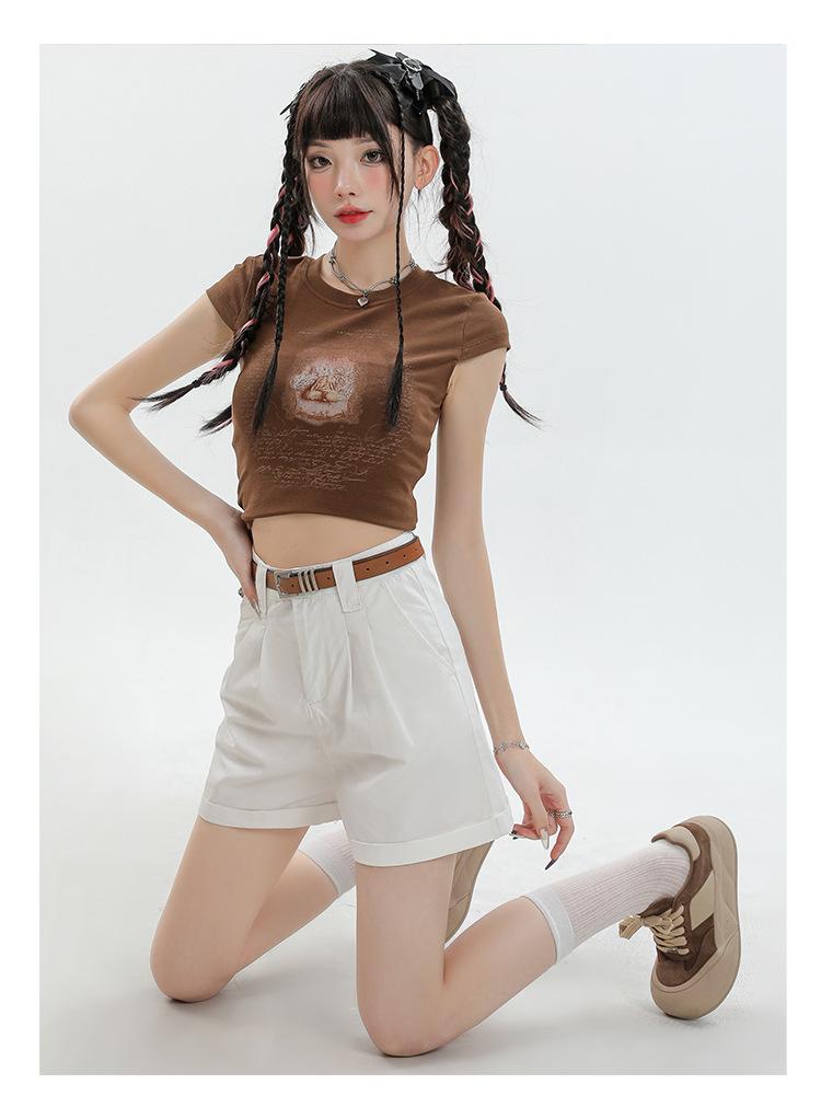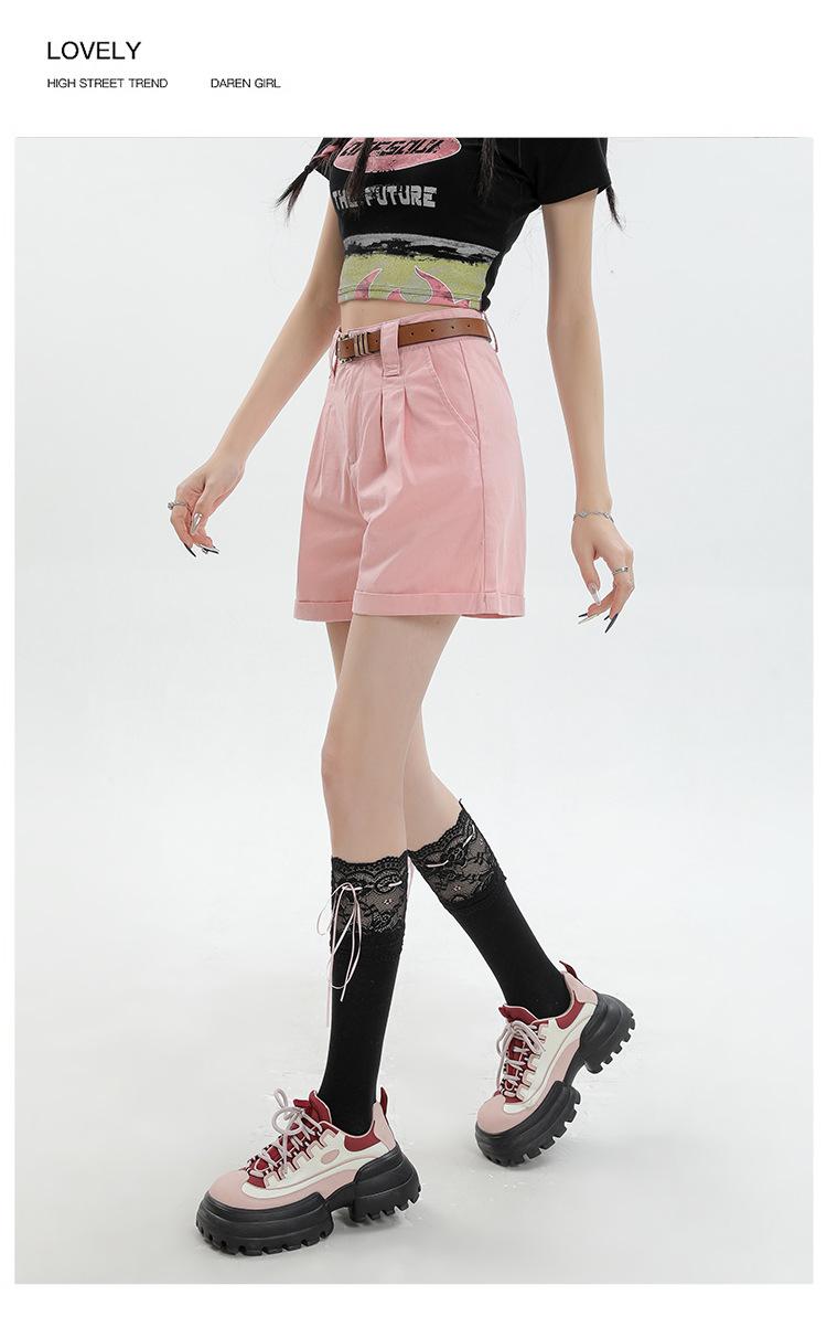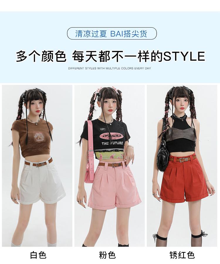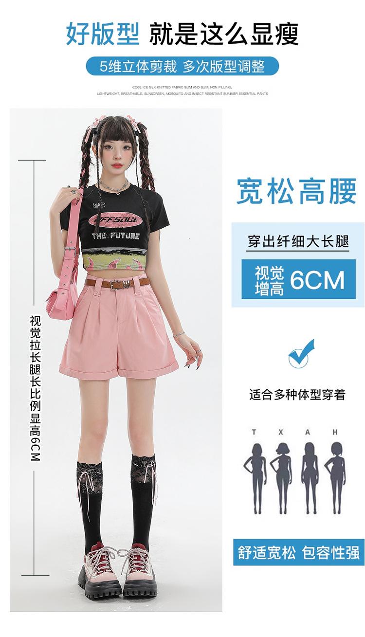 Verano 2024 Nuevo Tejido Tencel Algodón Shorts Casuales para Mujer Diseño de Cinco Puntos Cintura Alta