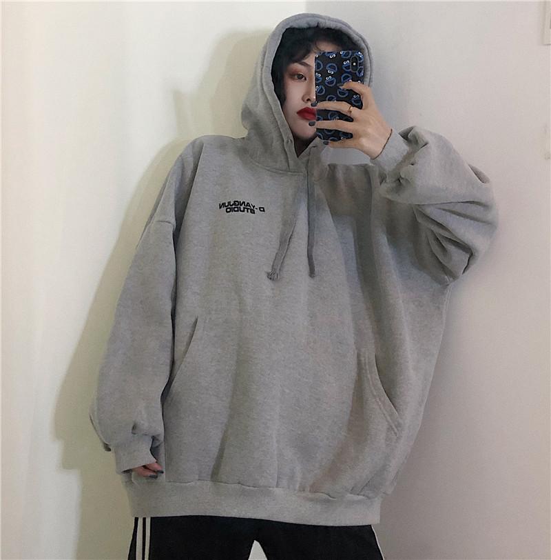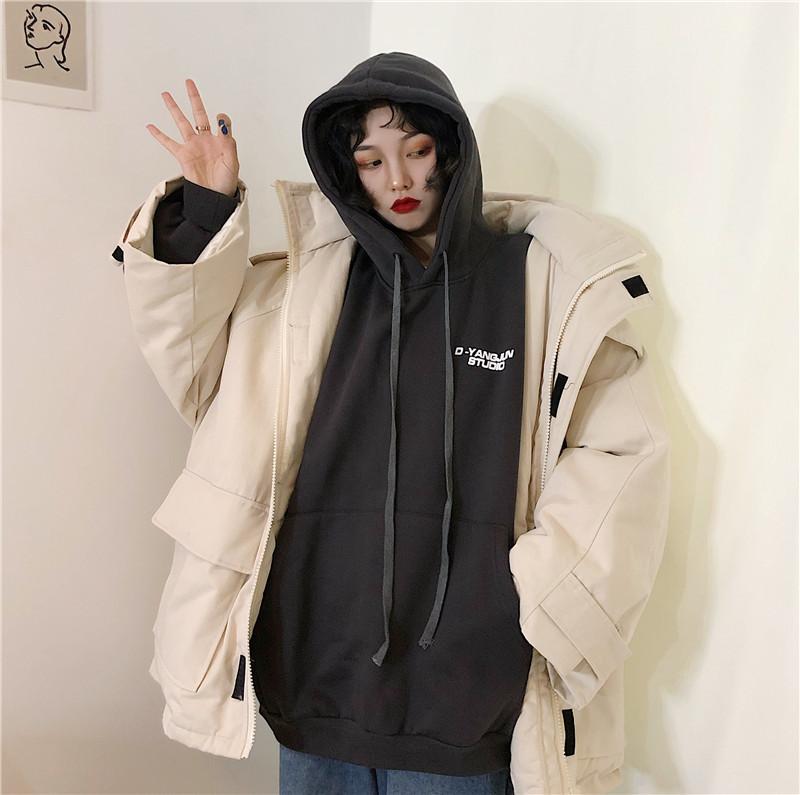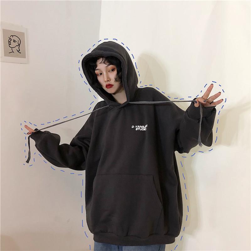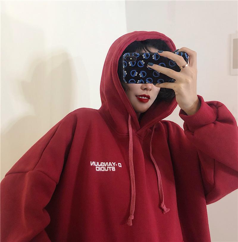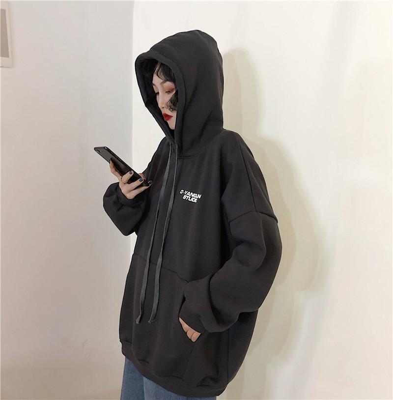 Sudadera con capucha de polar de gran tamaño coreana para mujer, otoño e invierno 2019, nuevo abrigo holgado estilo Harajuku de manga larga a la moda