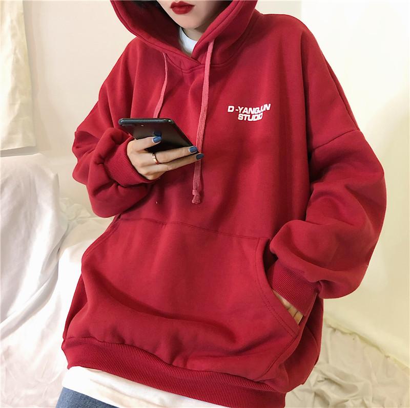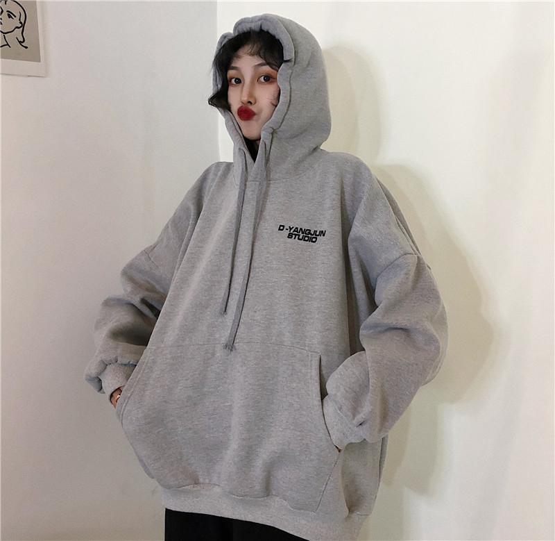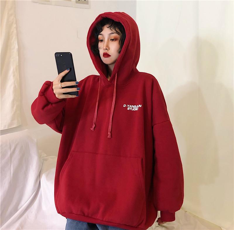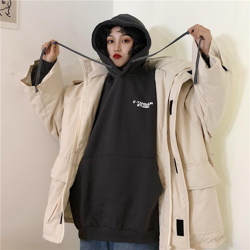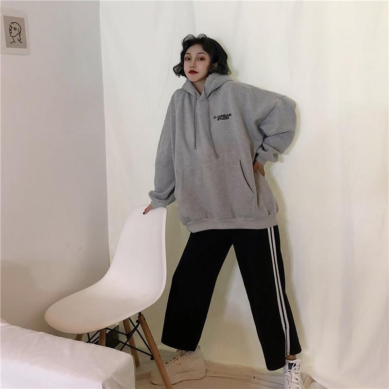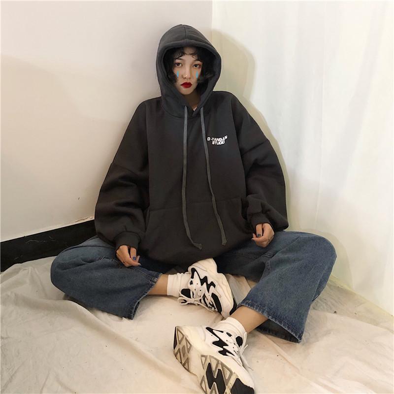 Sudadera con capucha de polar de gran tamaño coreana para mujer, otoño e invierno 2019, nuevo abrigo holgado estilo Harajuku de manga larga a la moda