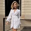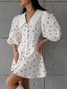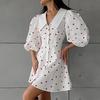 Falda Blanca Estampada con Corazones Transfronteriza Europea y Americana Primavera 2025 Vestido de Algodón y Lino de Manga Abullonada Corte A Ropa de Mujer para Oficina