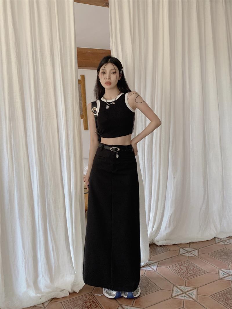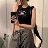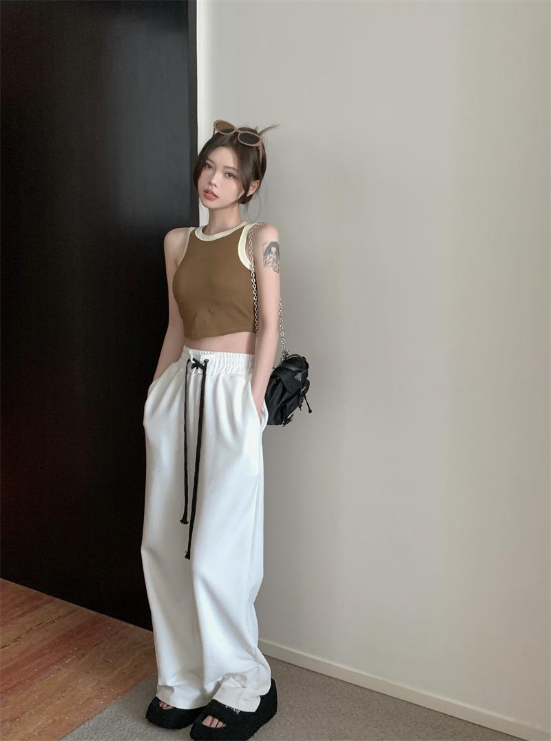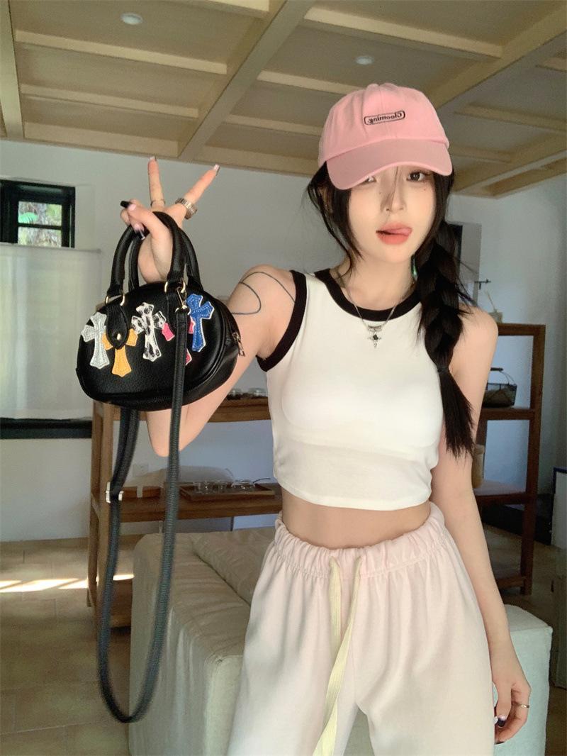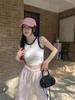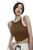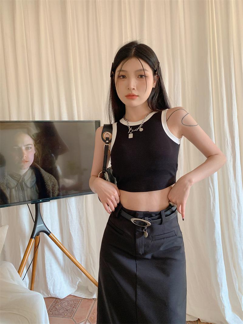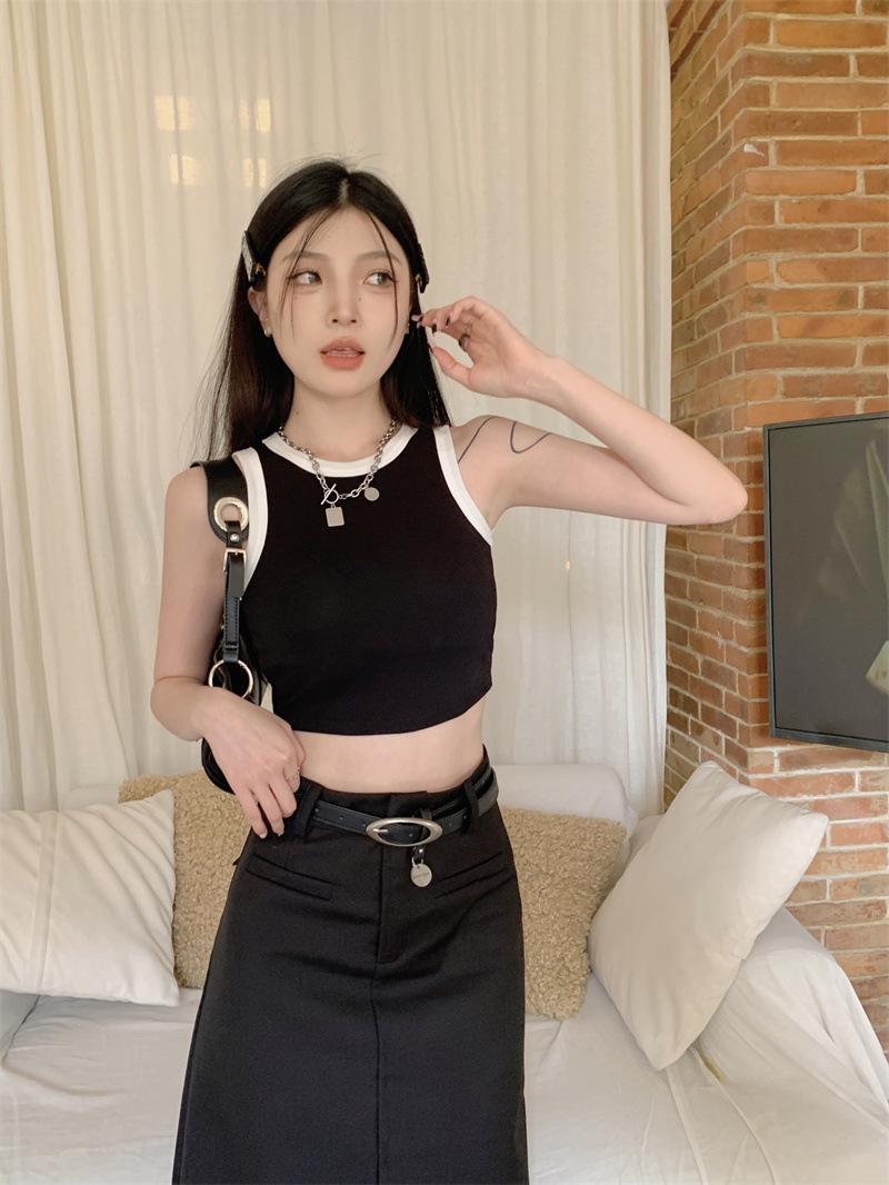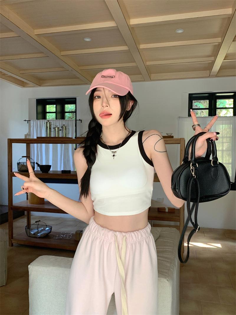 Camisola pequeña sin mangas con base de color en contraste dulce para mujer, de verano, con espalda hermosa, ajustada, interior corta, con ombligo al descubierto, sexy.