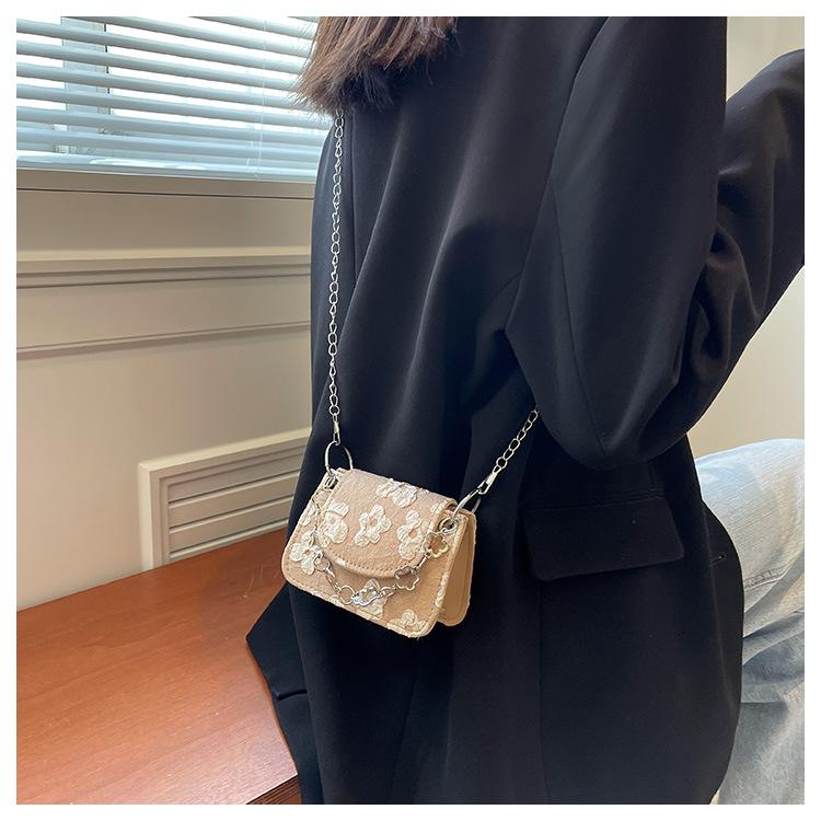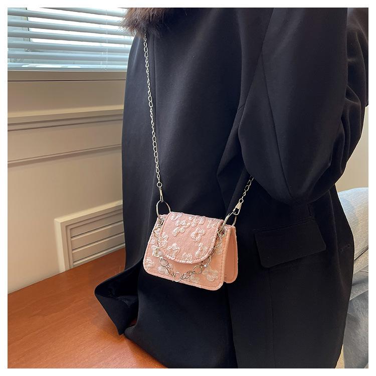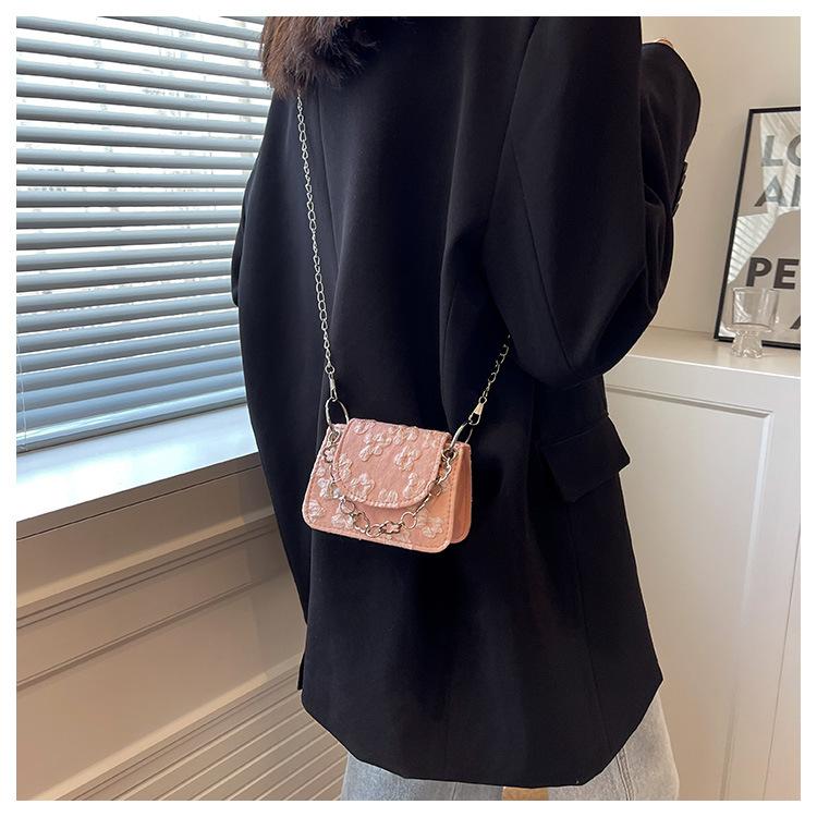 Bolso pequeño con texturas populares para mujer, primavera y verano 2023, nuevo, a la moda, mini bolso bandolera portátil con cadena, pequeño bolso cuadrado