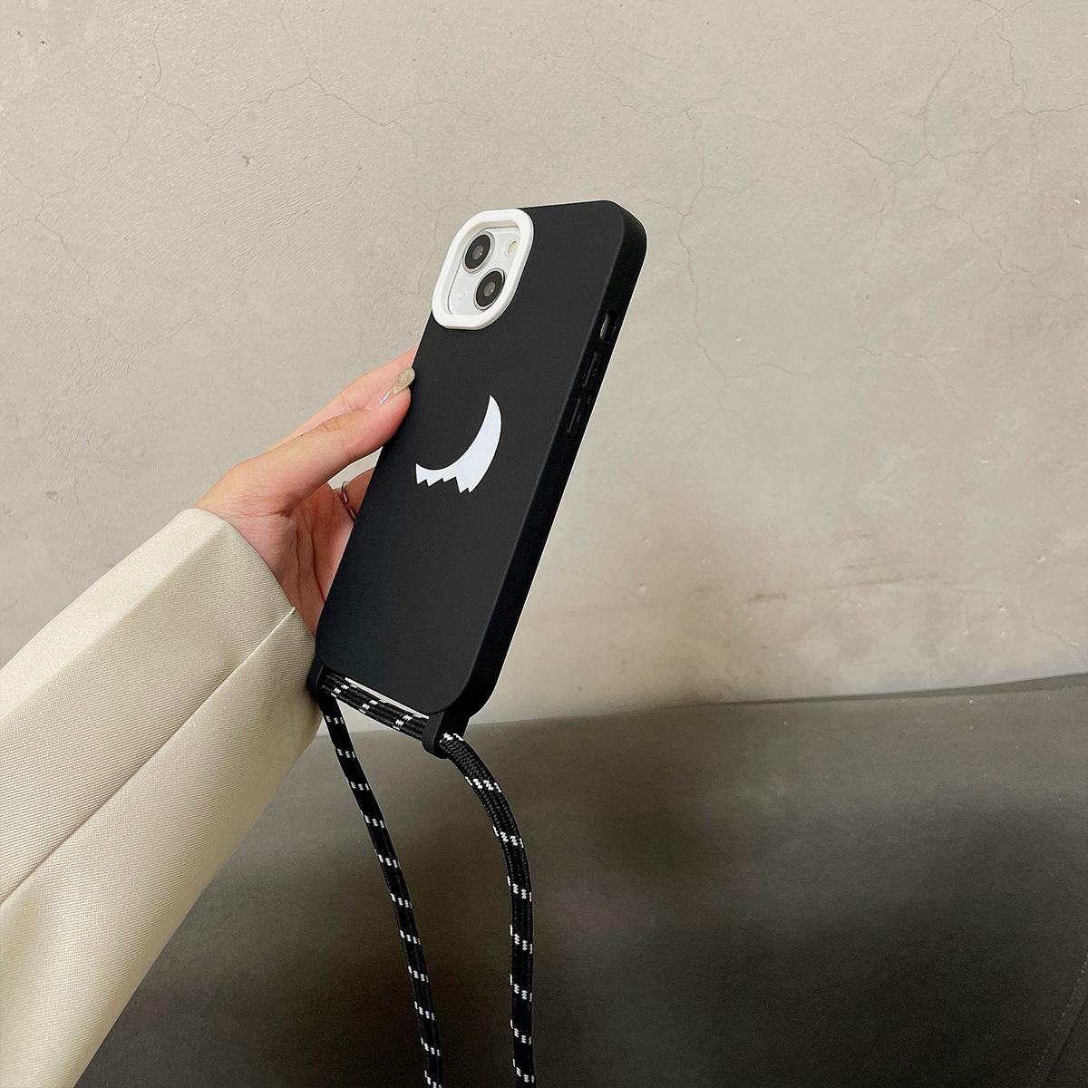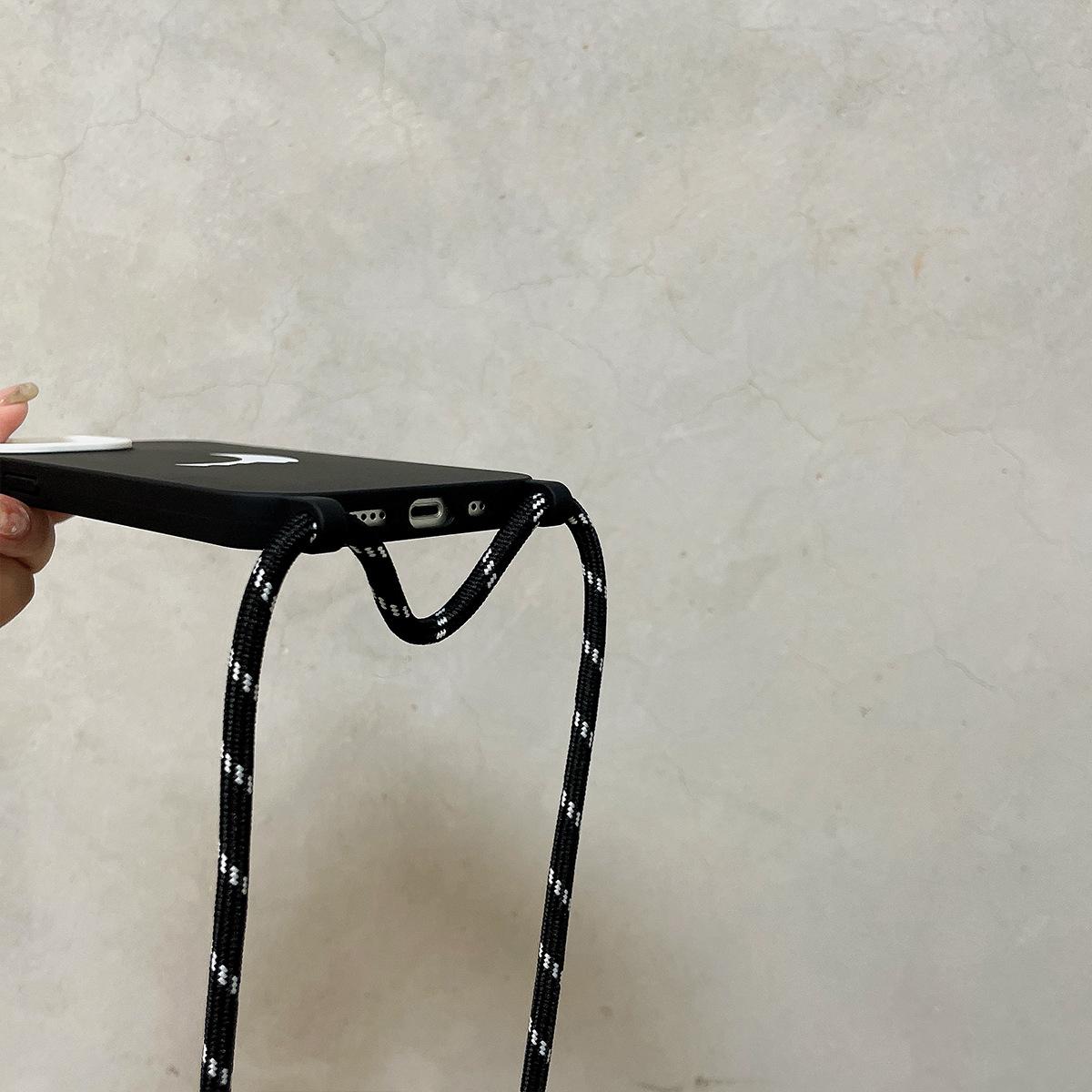 [Nombre del producto]: Funda negra para teléfono móvil con doble orificio para colgar + cuerda ajustable blanca y negra