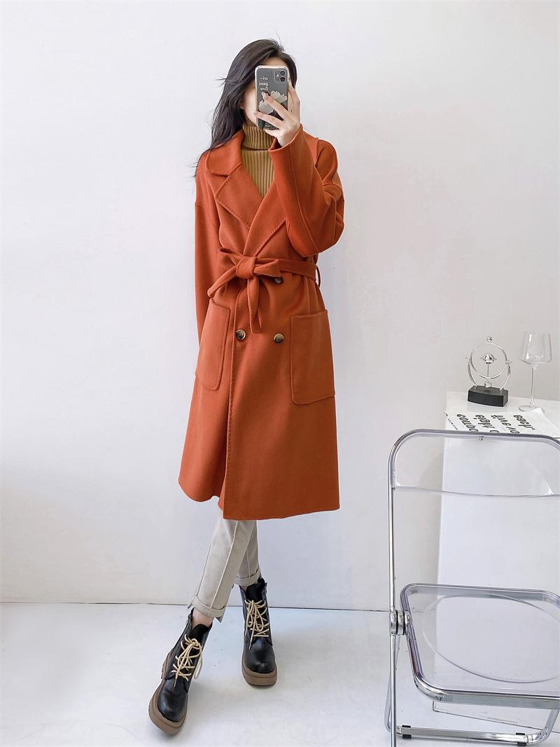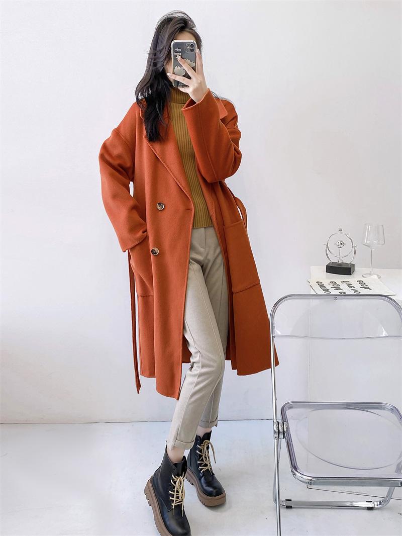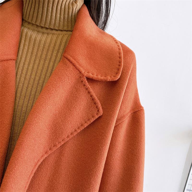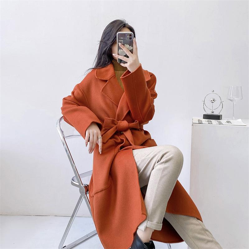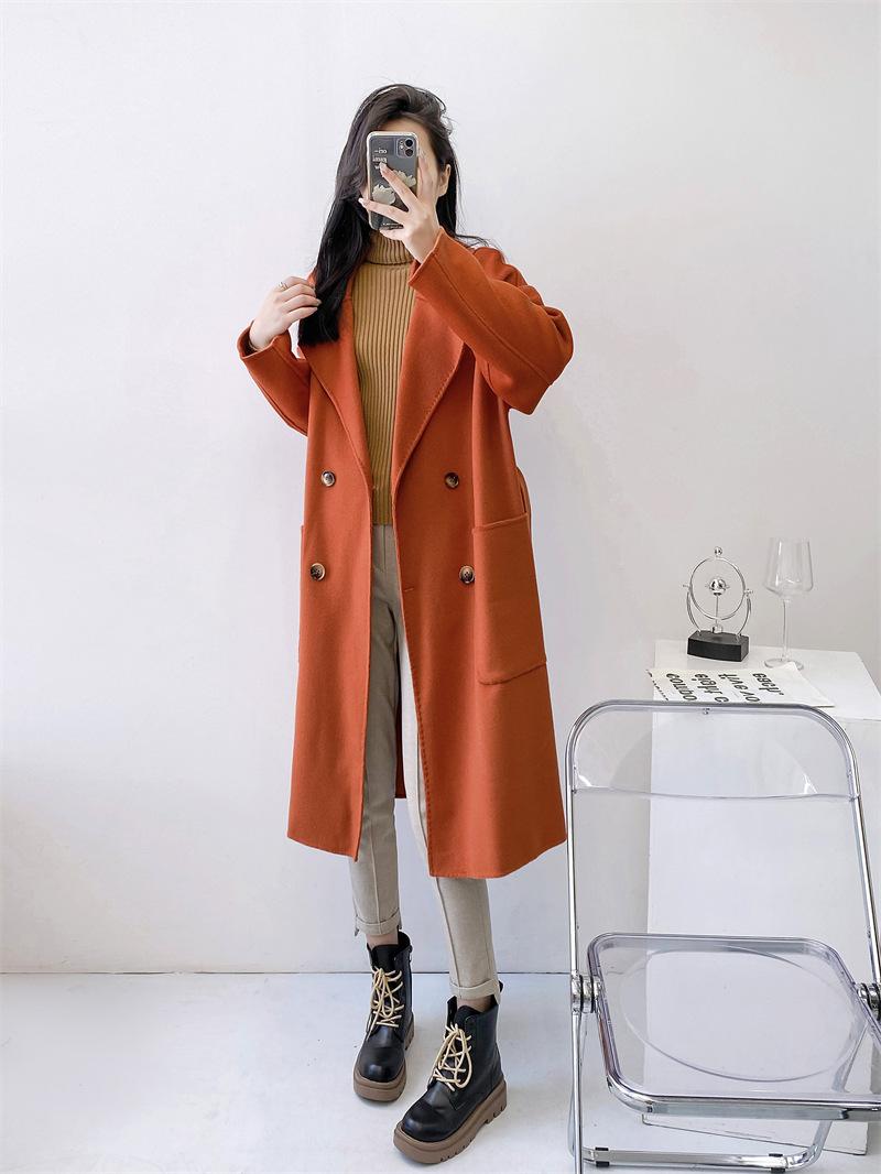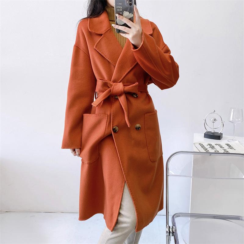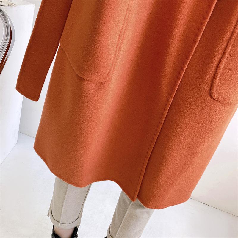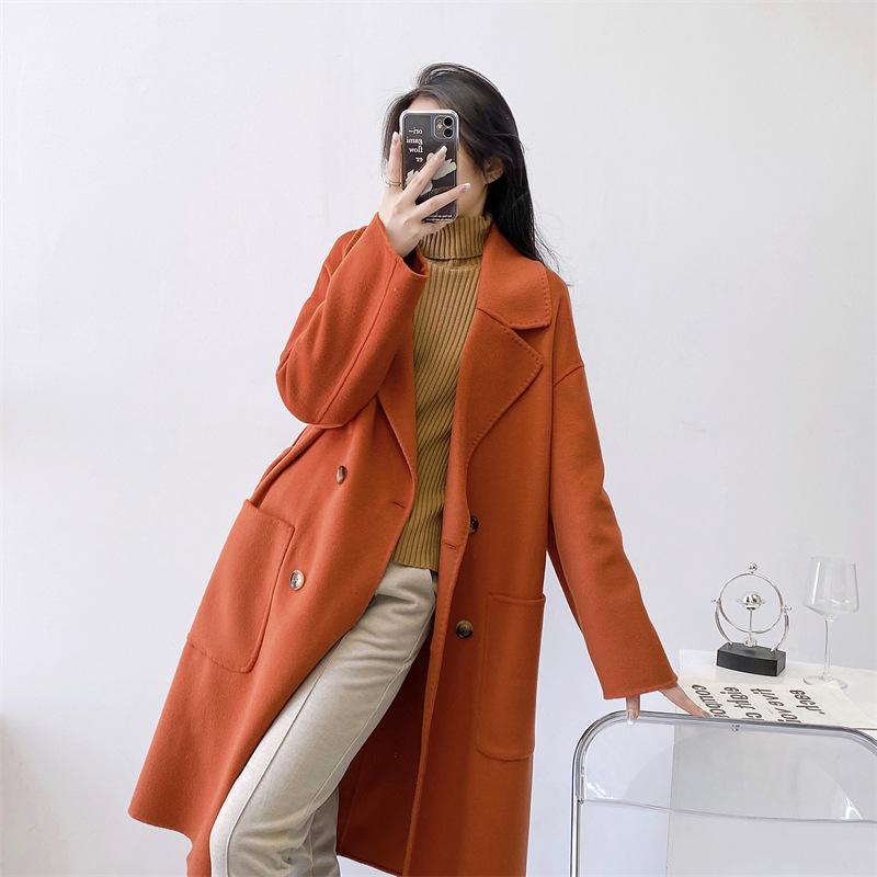 Abrigo de Cachemira de Doble Cara Nuevo 2022 para Mujer Otoño e Invierno Caliente Doble Botonadura Largo hasta la Rodilla Abrigo de Lana de Doble Cara Abrigo