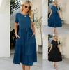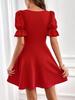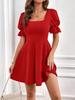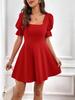 Vestido rojo de manga corta con cuello cuadrado, elegante, ajustado, de color liso, primavera/verano 2024, para mujer europea y americana de Amazon.
