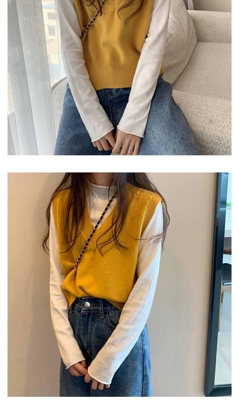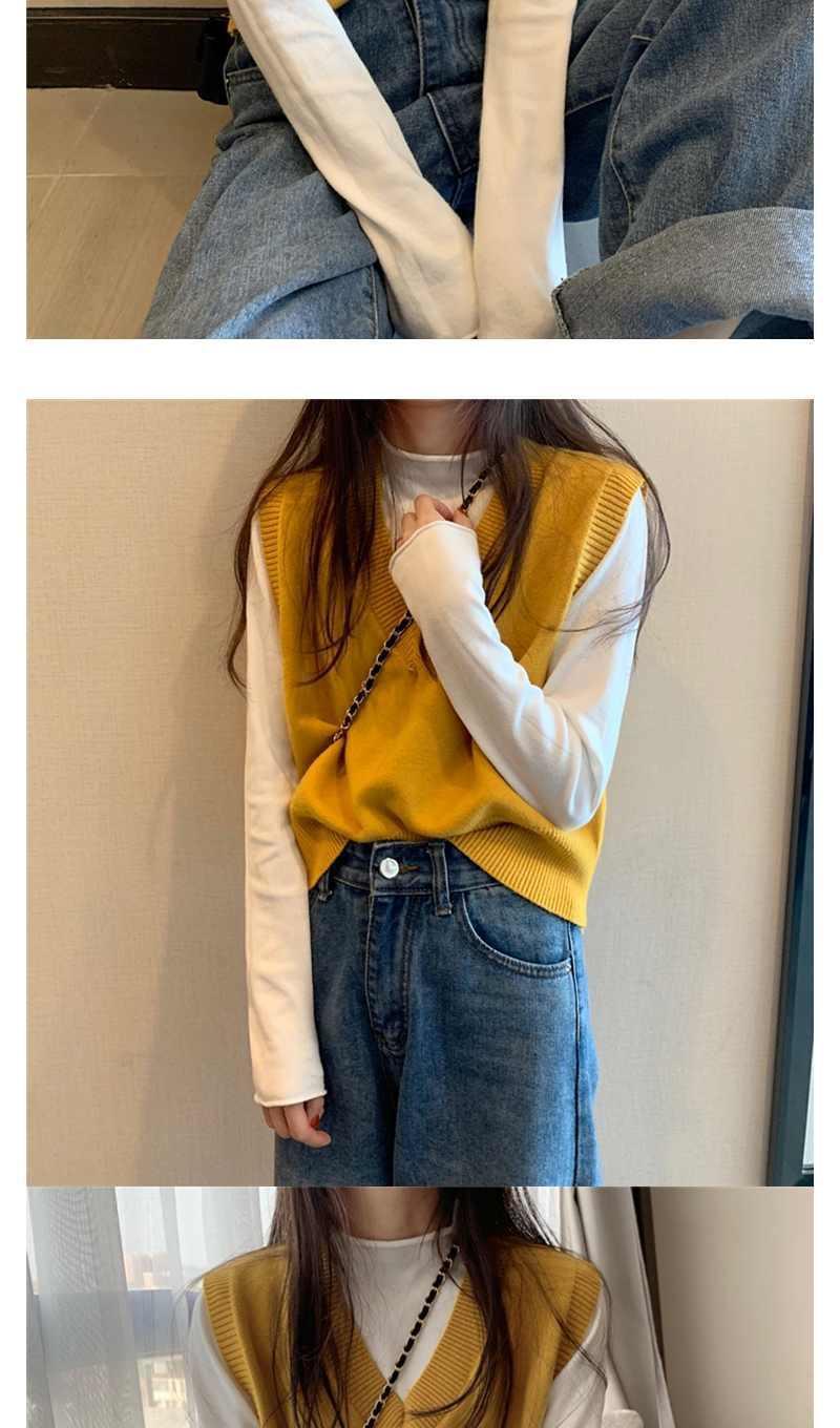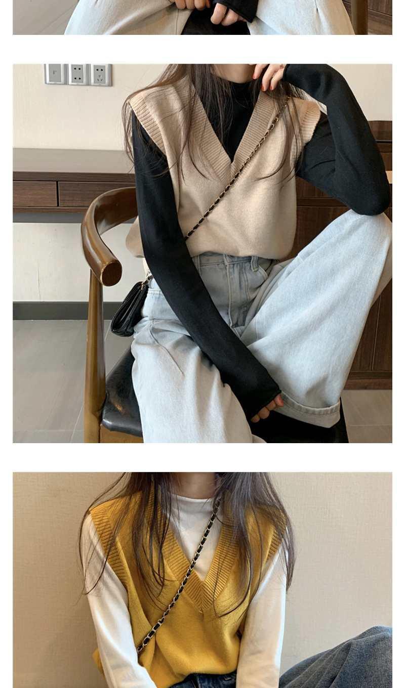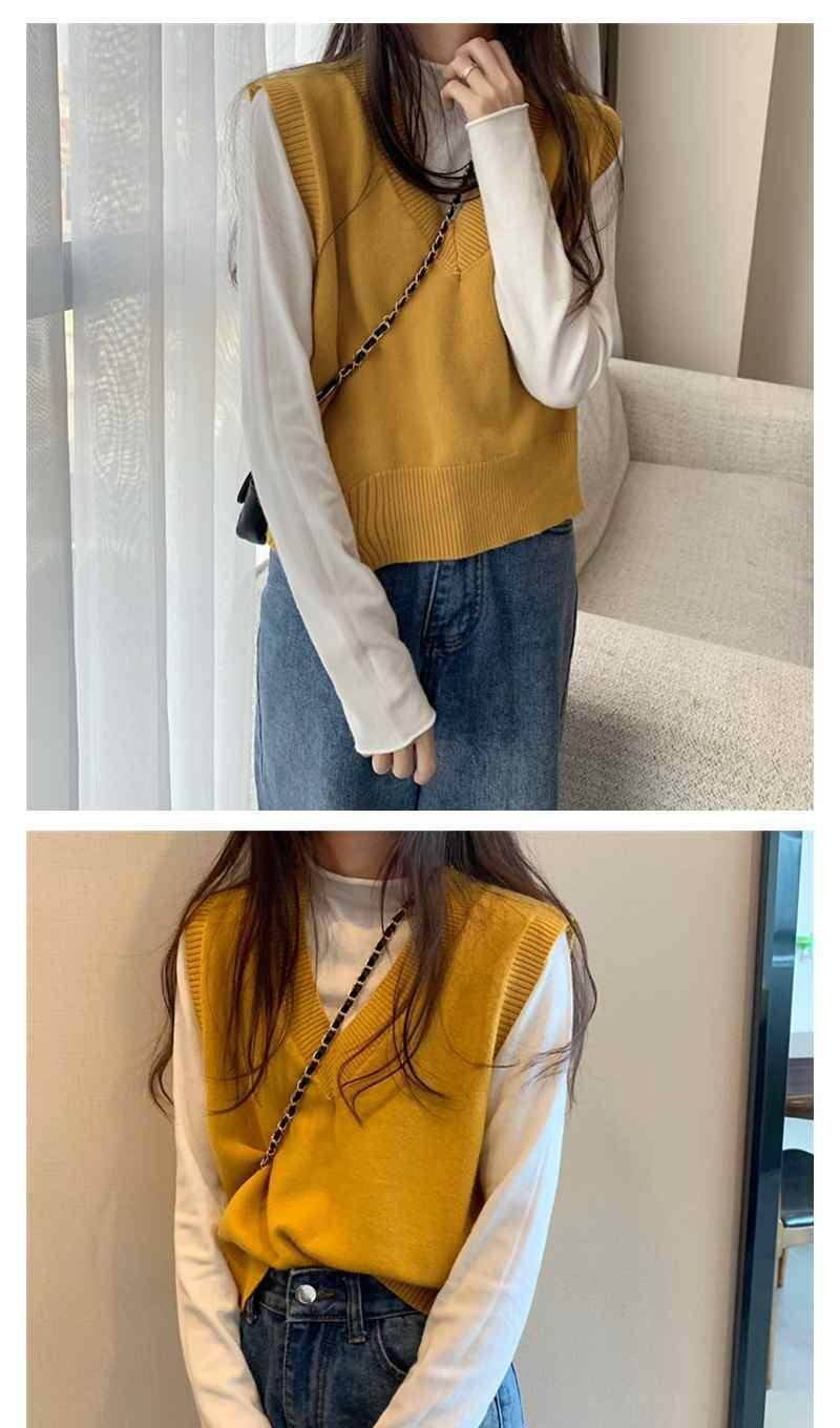 Otoño 2025 Nuevo Chaleco Corto Holgado sin Mangas de Estilo Coreano Trendy Ropa Exterior Cuello en V Chaleco de Punto para Mujer