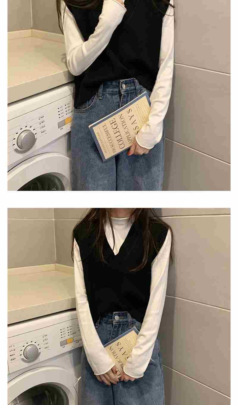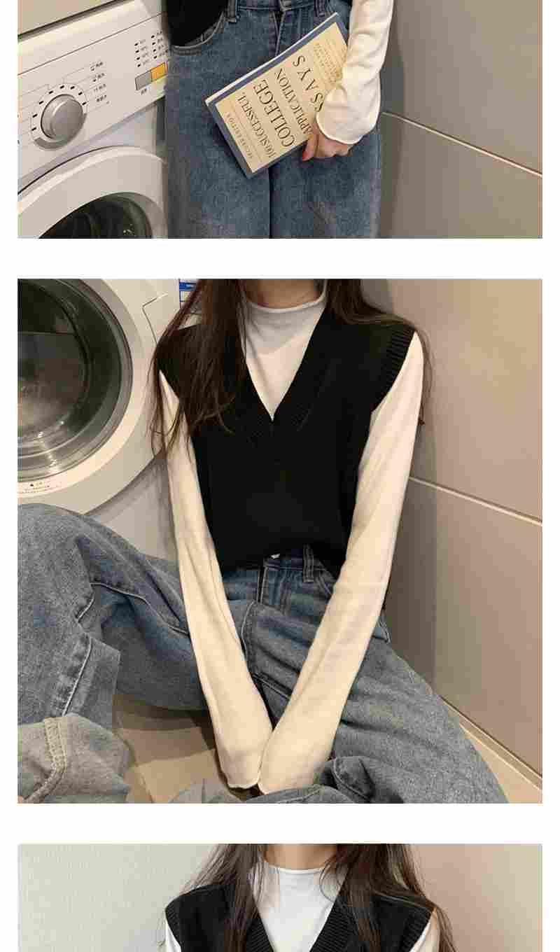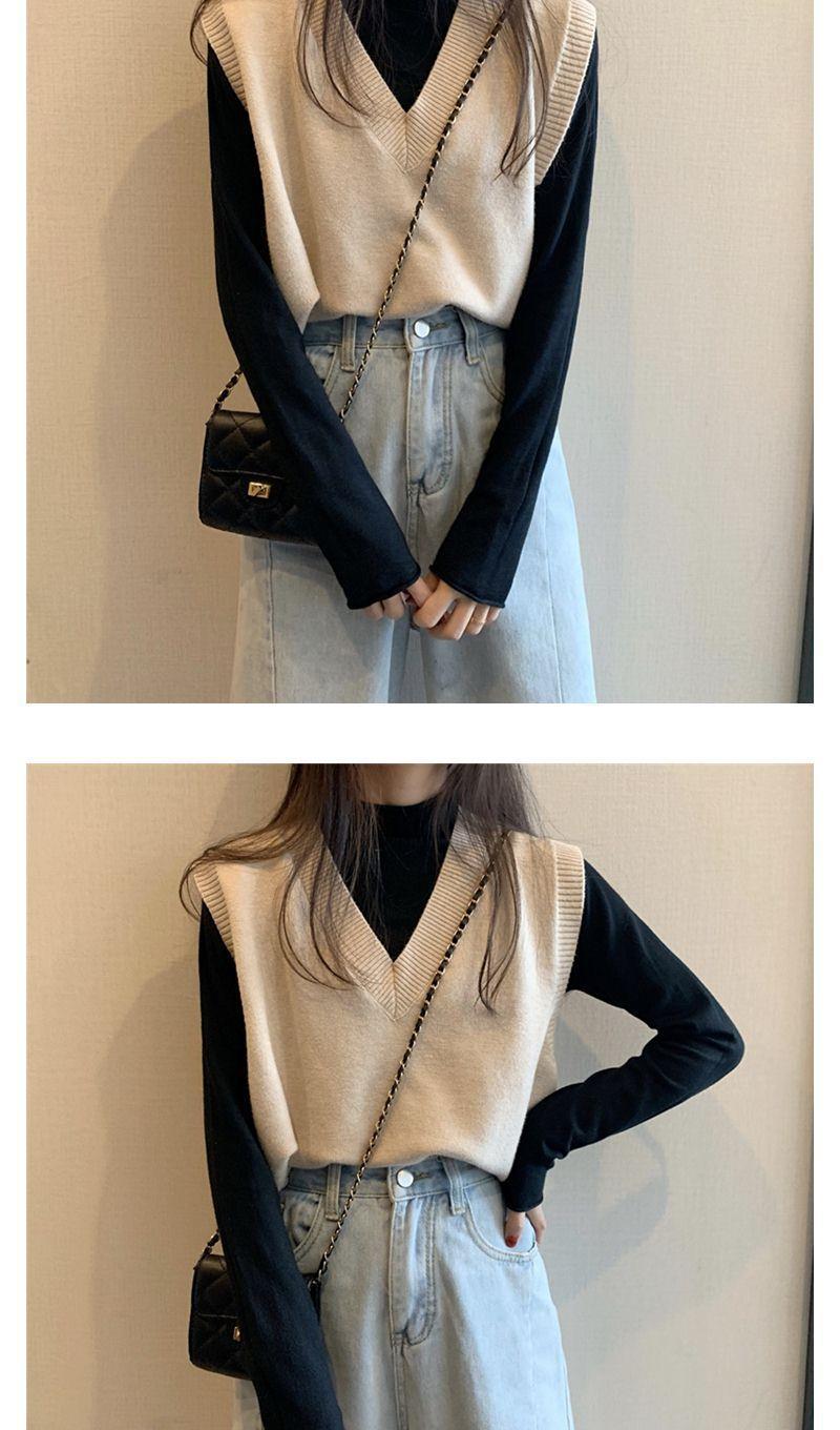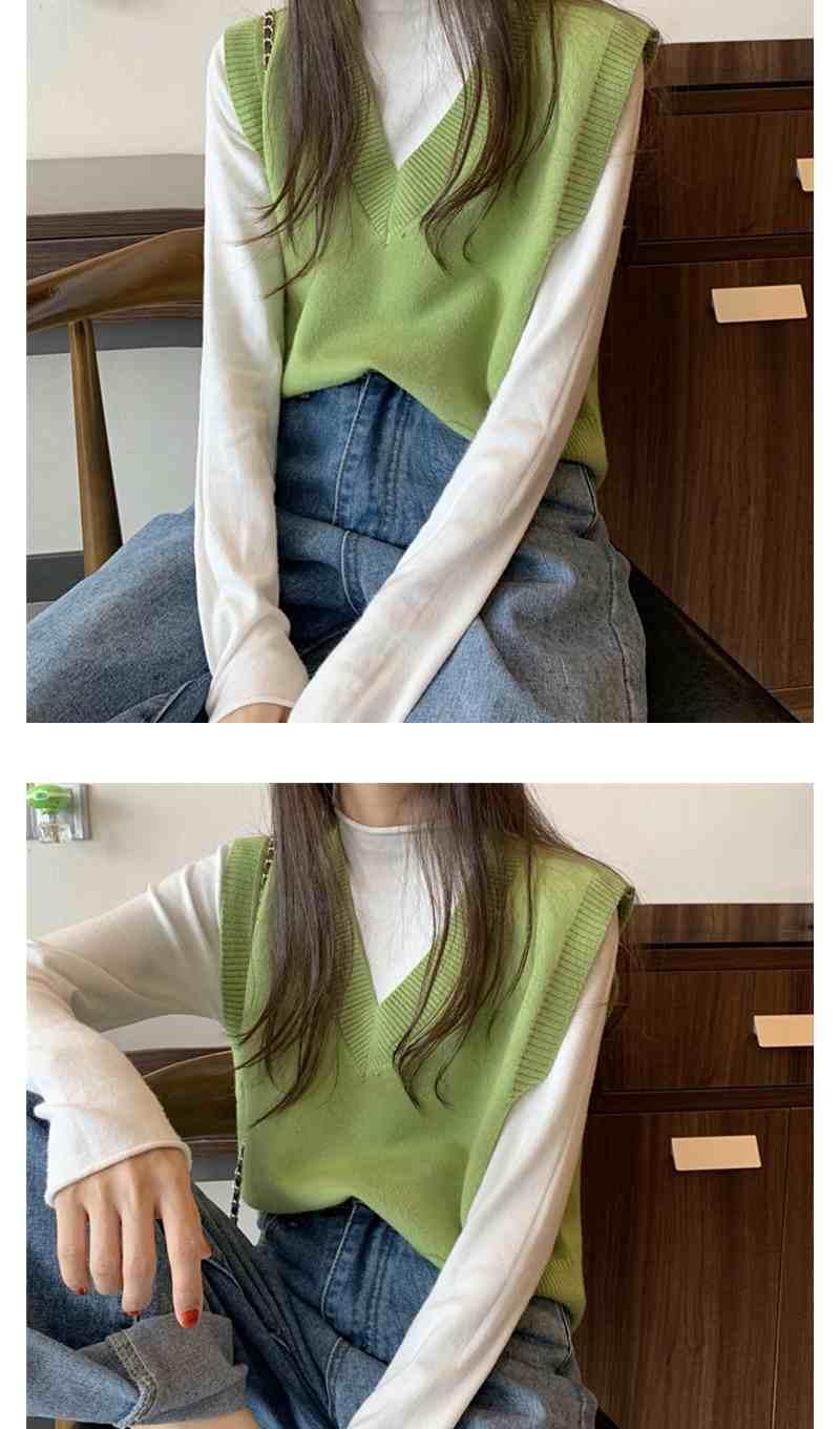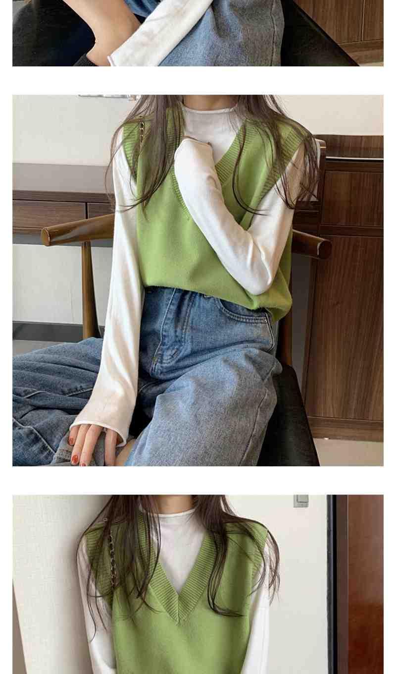 Otoño 2025 Nuevo Chaleco Corto Holgado sin Mangas de Estilo Coreano Trendy Ropa Exterior Cuello en V Chaleco de Punto para Mujer