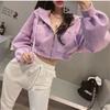 Suéter corto deportivo con capucha y forro polar para mujer, chaqueta tipo cárdigan holgada con cremallera, de algodón, a la moda, primavera y otoño de 2025