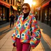 Abrigo acolchado de moda con flores arcoíris para otoño e invierno, transfronterizo.