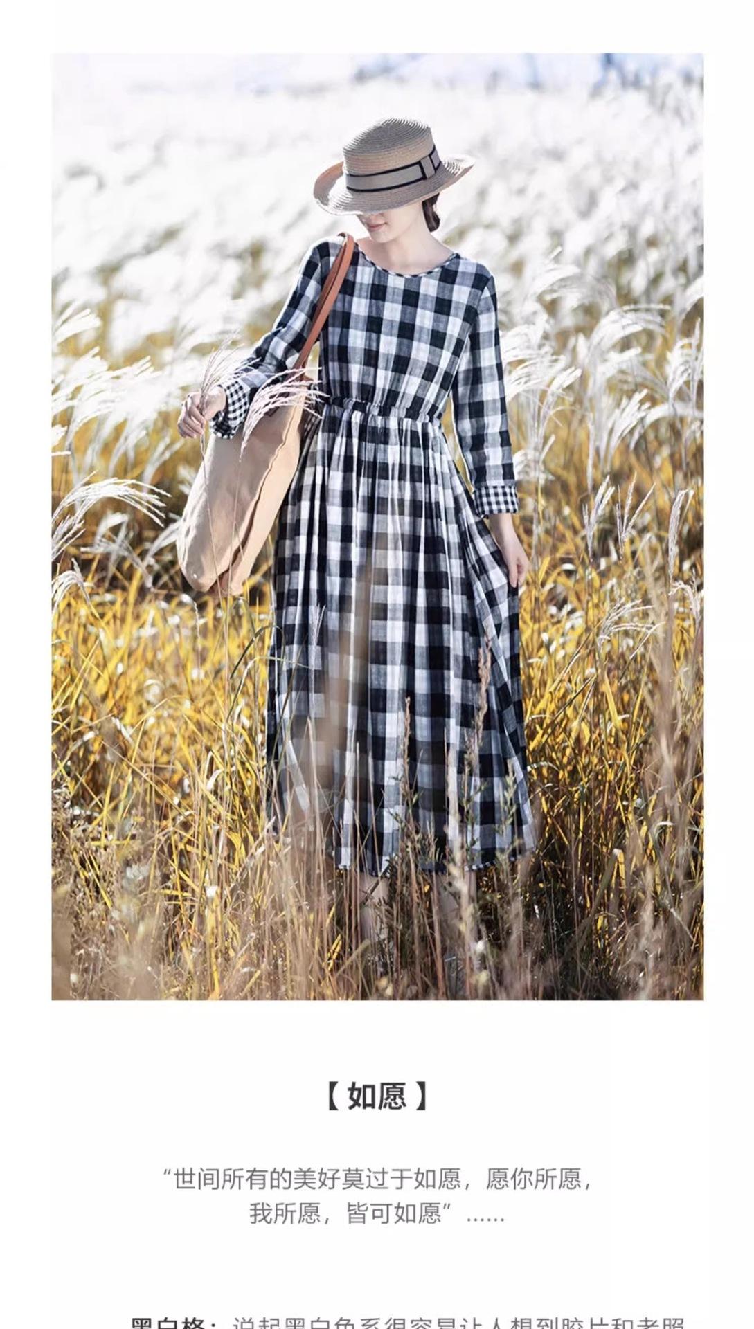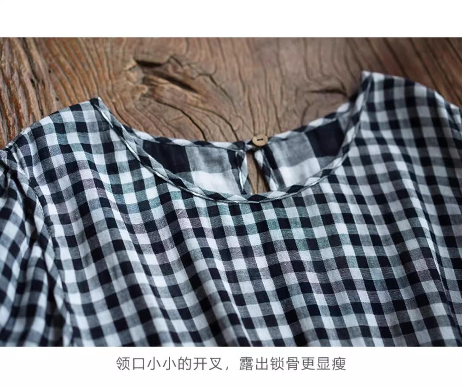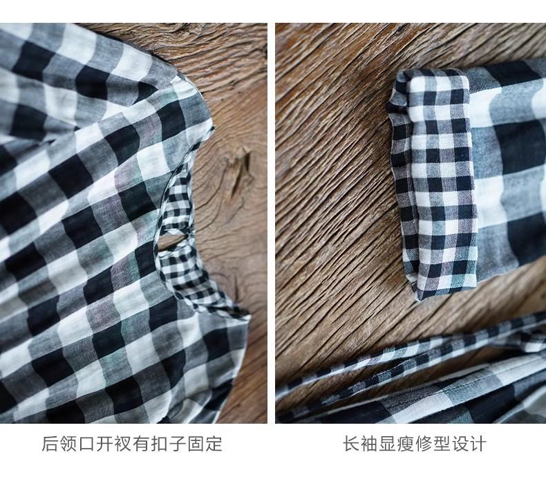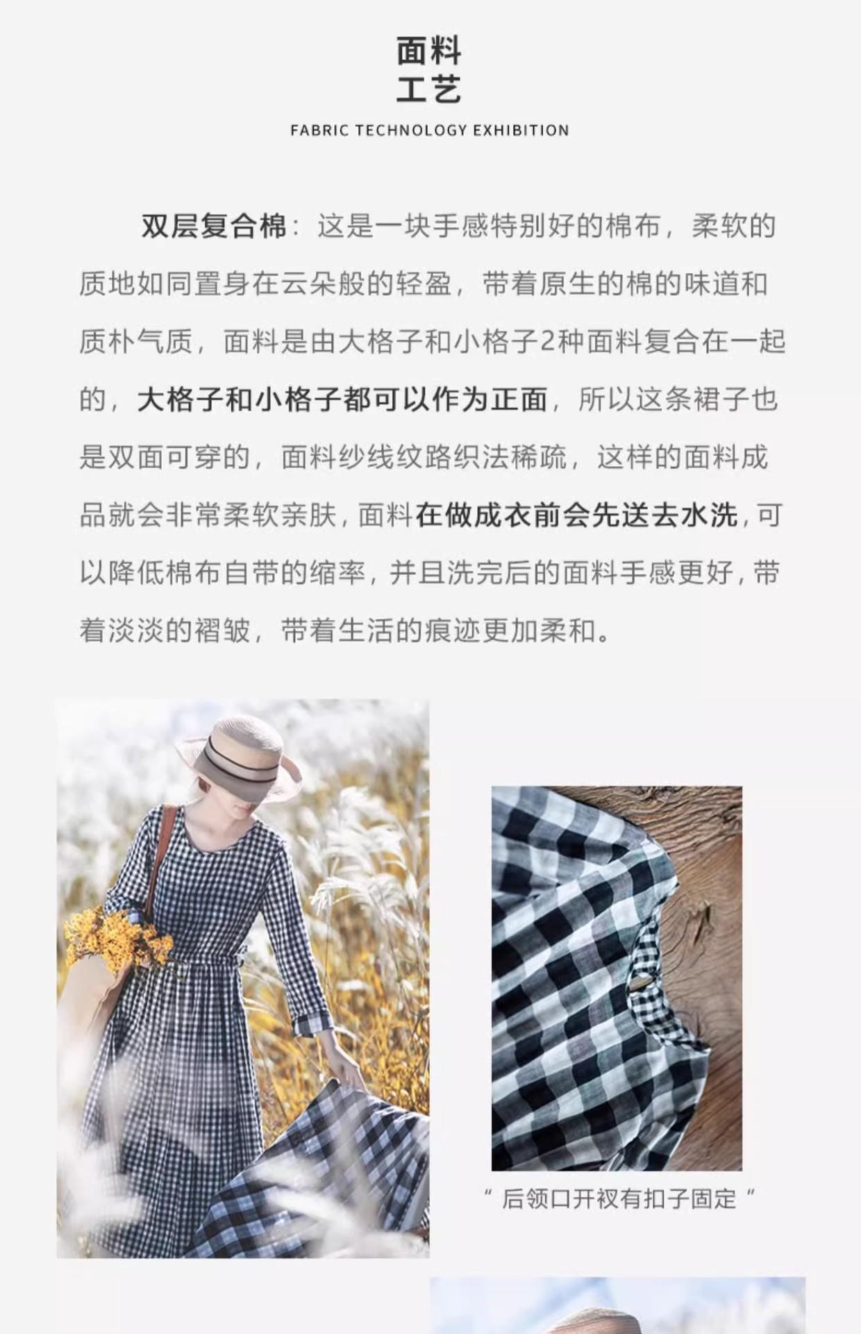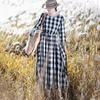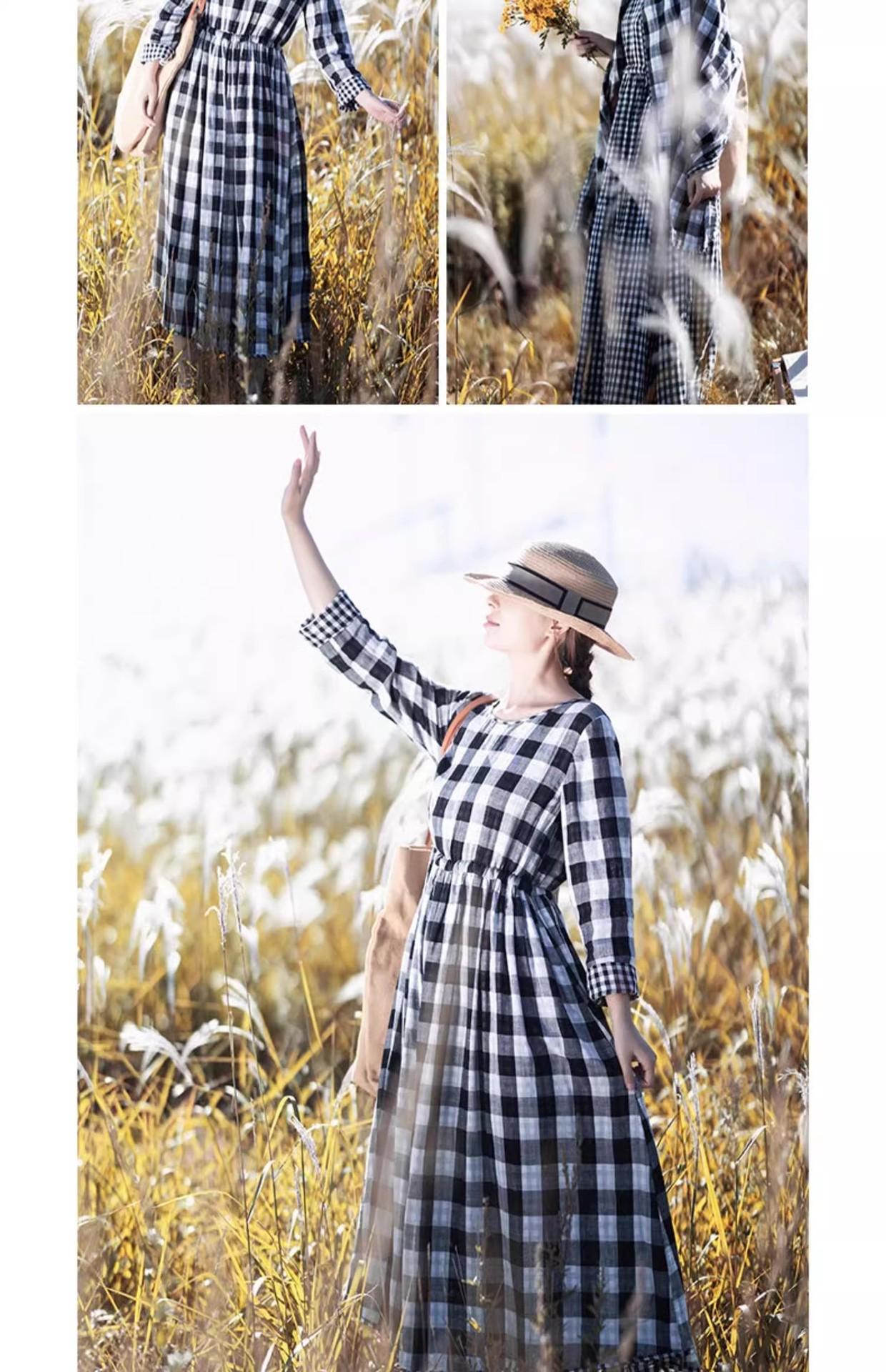Vestido de Cuadros de Algodón Compuesto de Doble Capa Primavera 2024 Nuevo Suelto Literario Cintura con Cordones Falda Larga de Bajo Amplio para Mujer