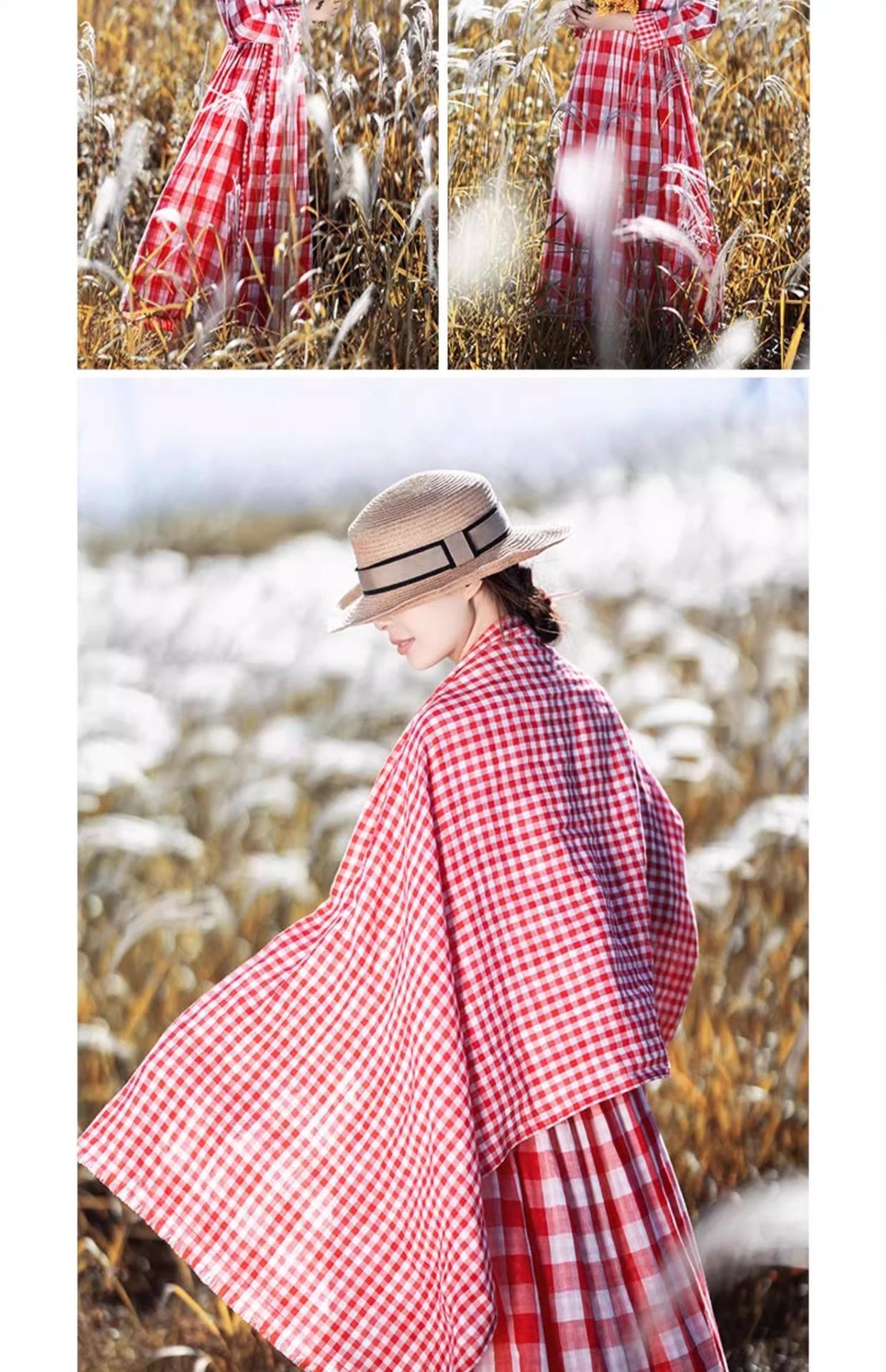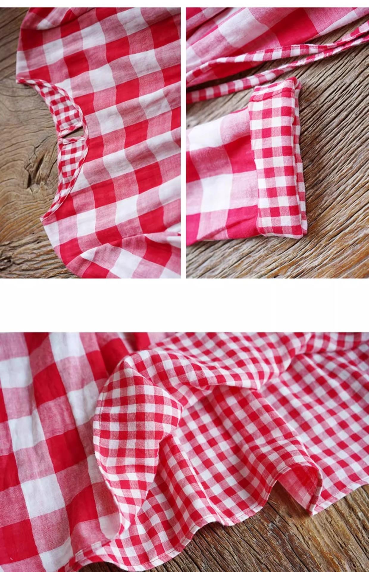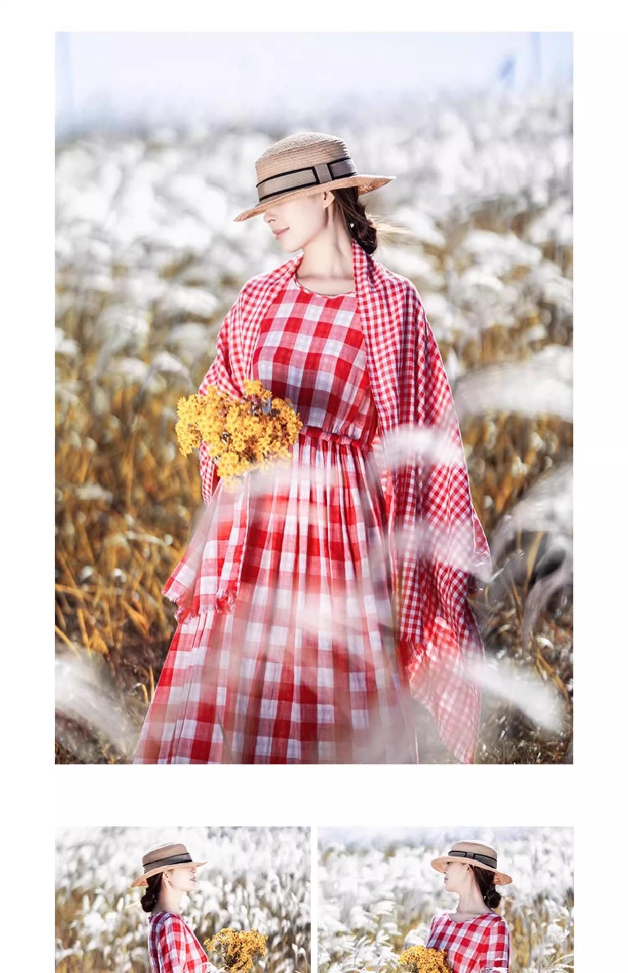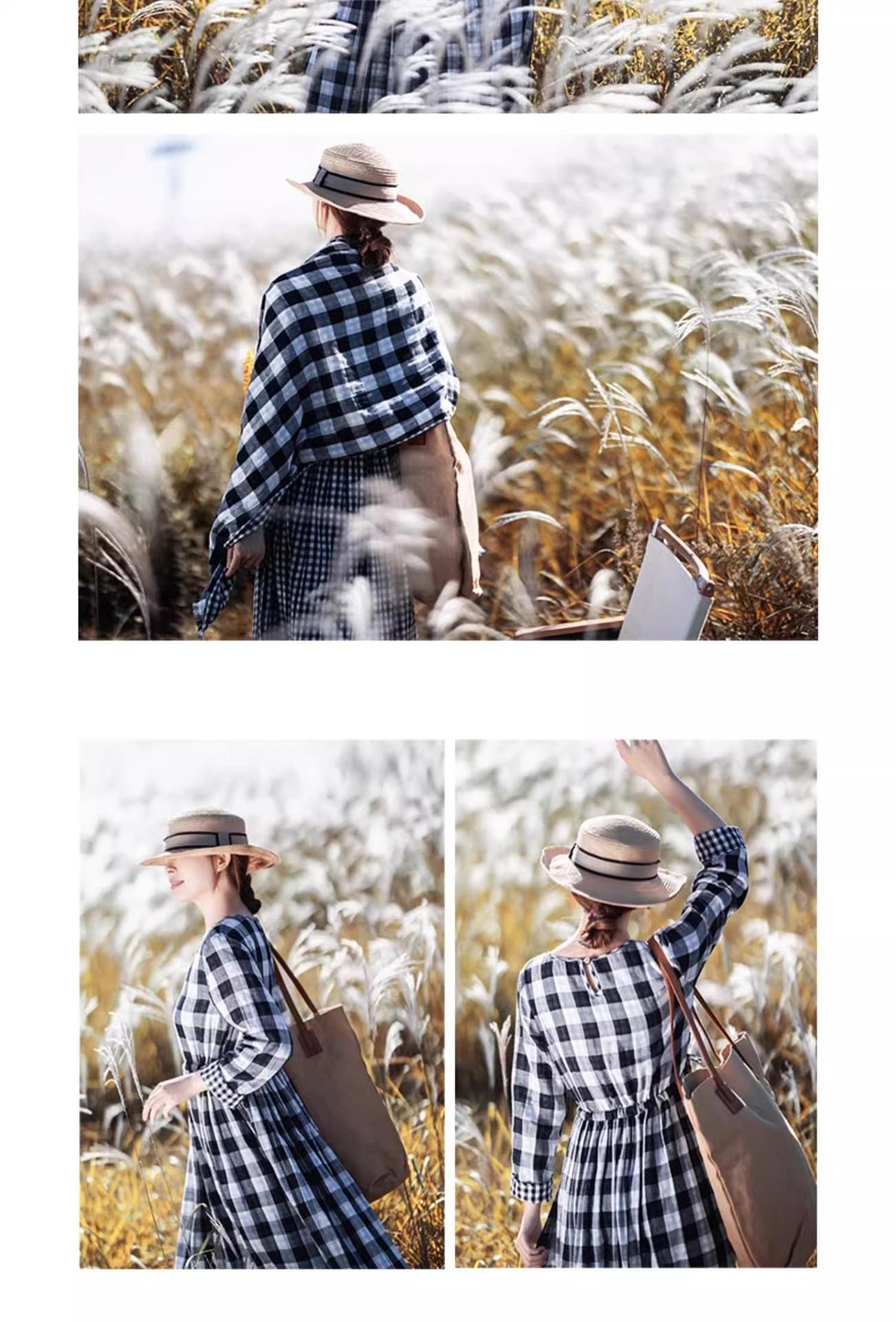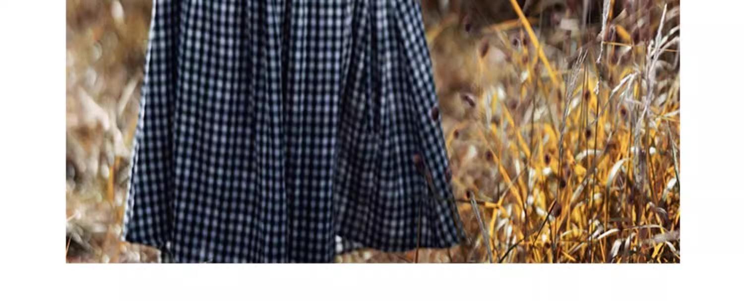 Vestido de Cuadros de Algodón Compuesto de Doble Capa Primavera 2024 Nuevo Suelto Literario Cintura con Cordones Falda Larga de Bajo Amplio para Mujer
