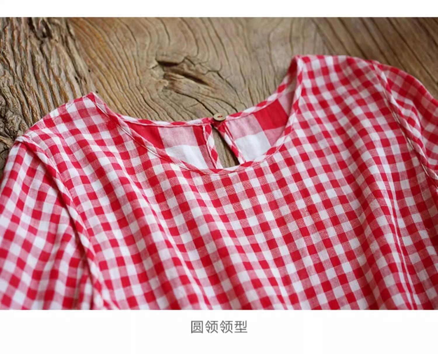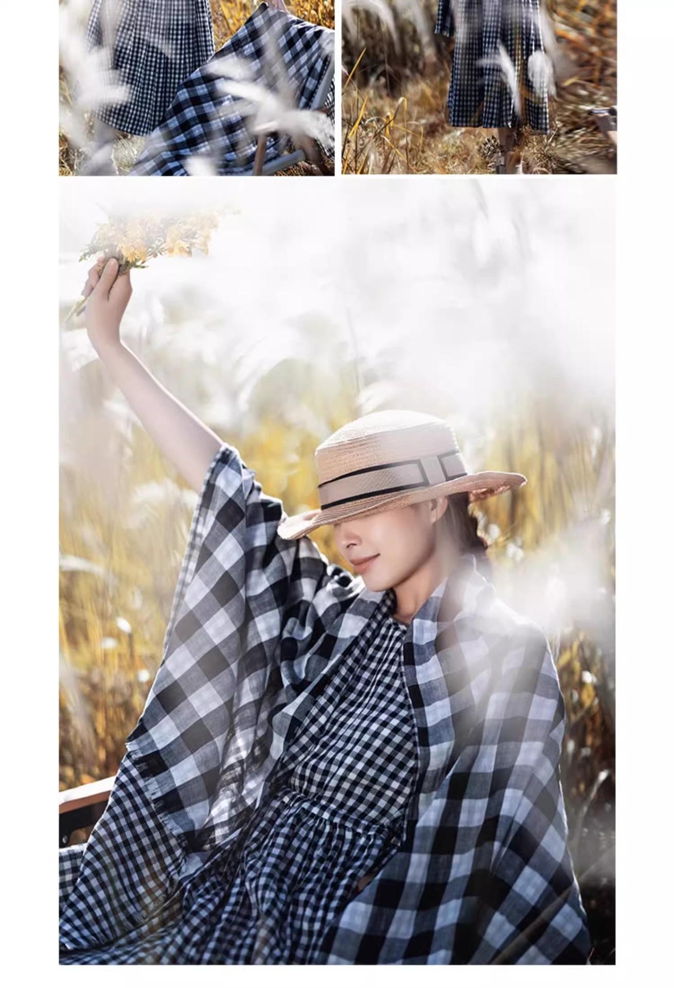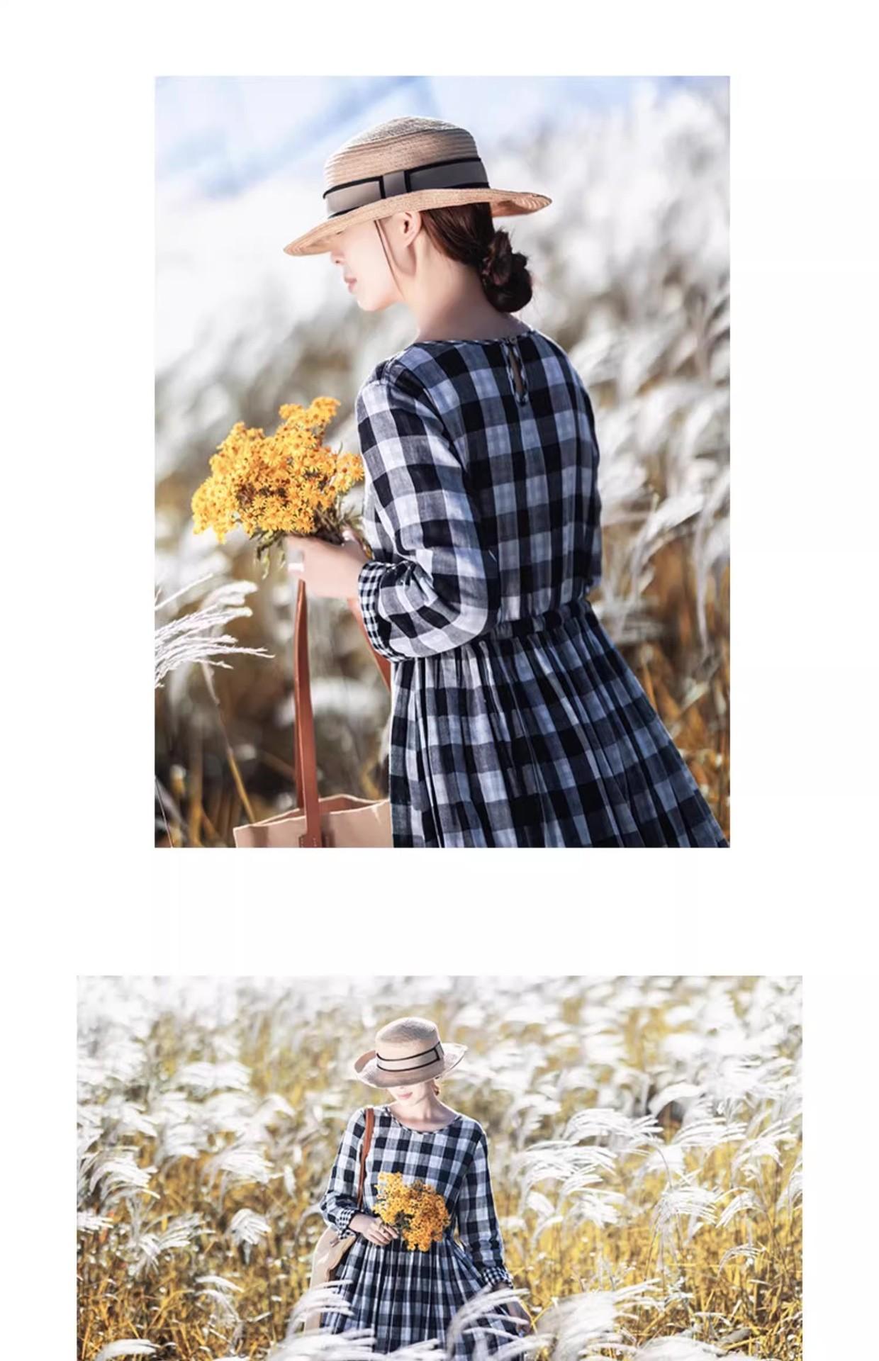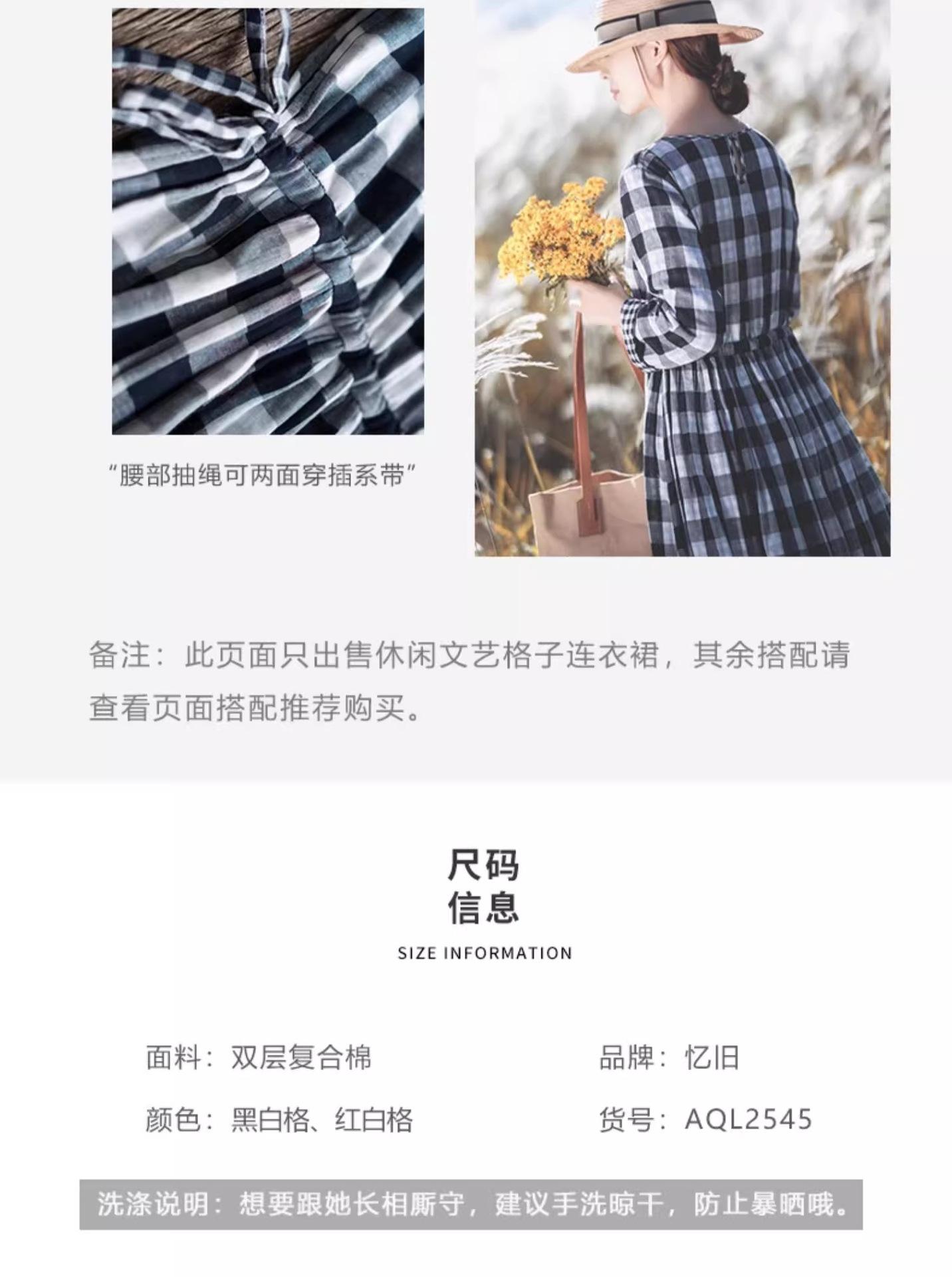 Vestido de Cuadros de Algodón Compuesto de Doble Capa Primavera 2024 Nuevo Suelto Literario Cintura con Cordones Falda Larga de Bajo Amplio para Mujer