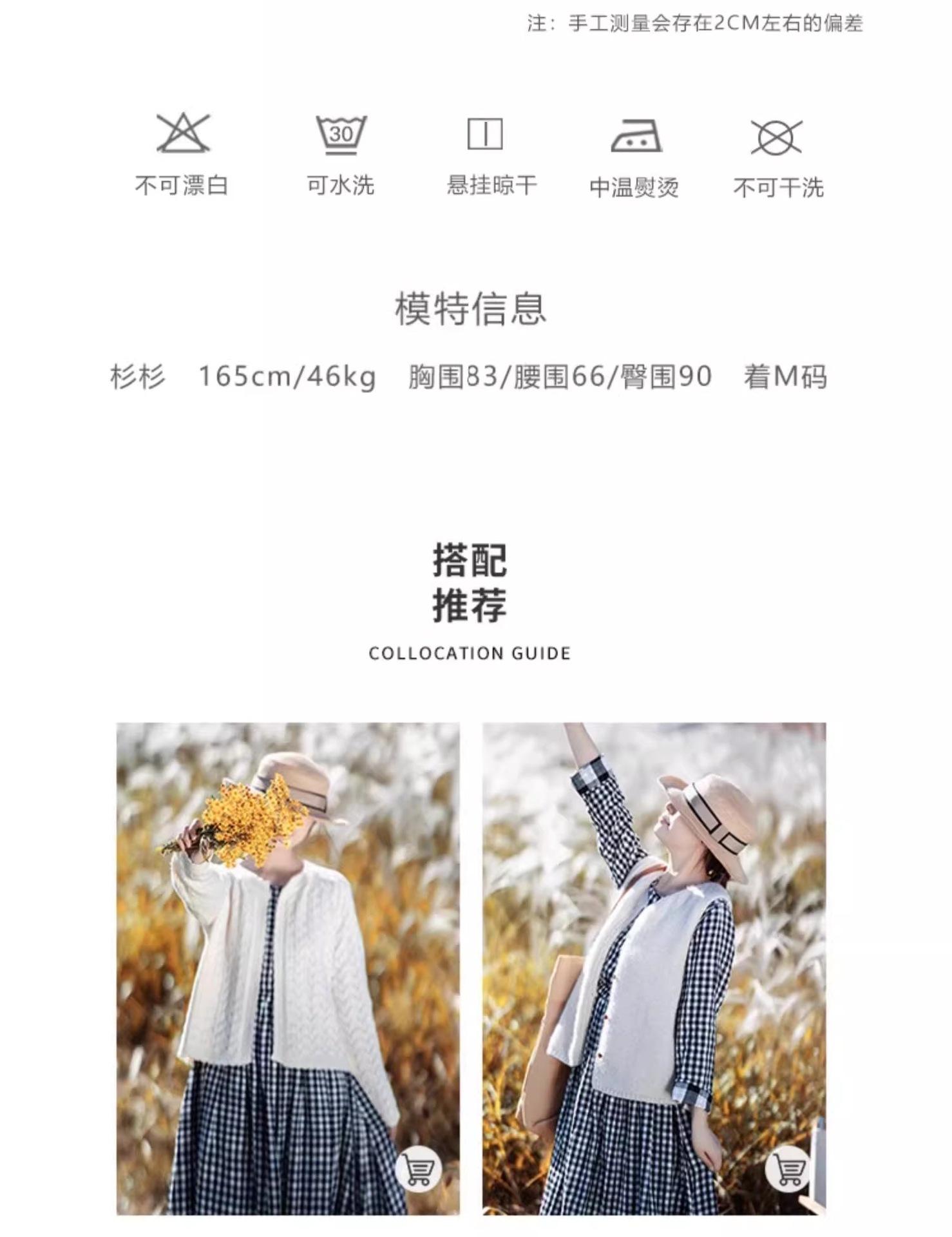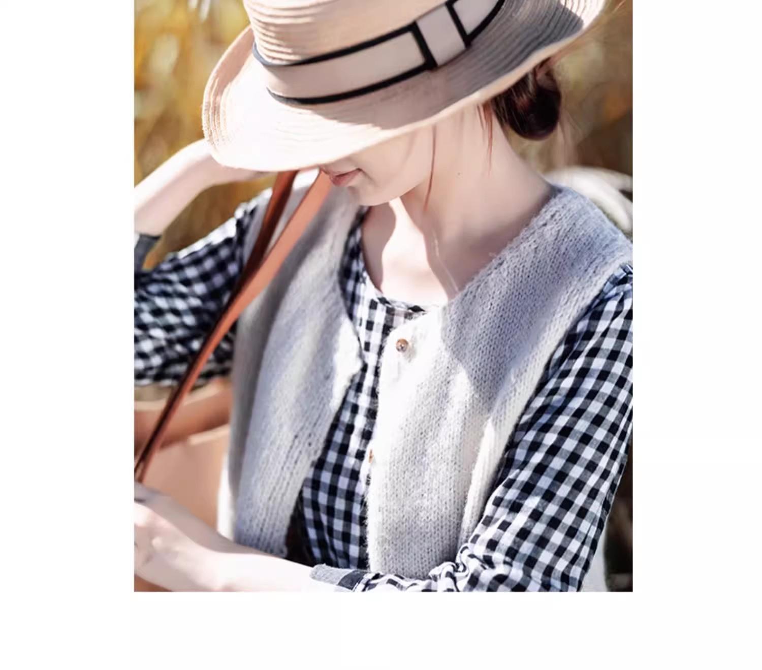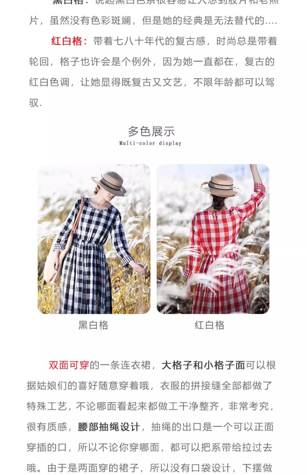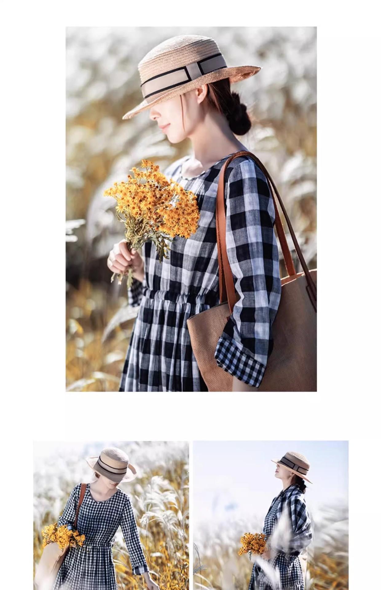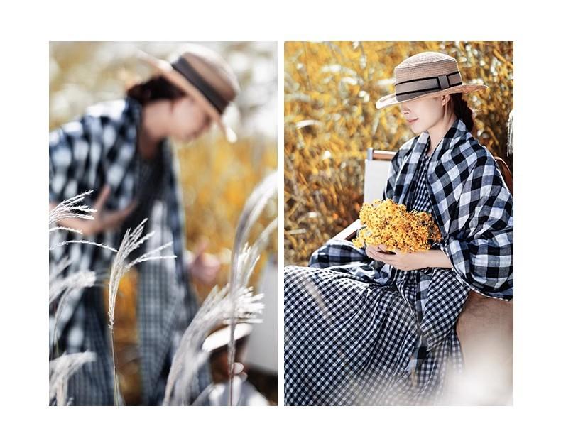 Vestido de Cuadros de Algodón Compuesto de Doble Capa Primavera 2024 Nuevo Suelto Literario Cintura con Cordones Falda Larga de Bajo Amplio para Mujer