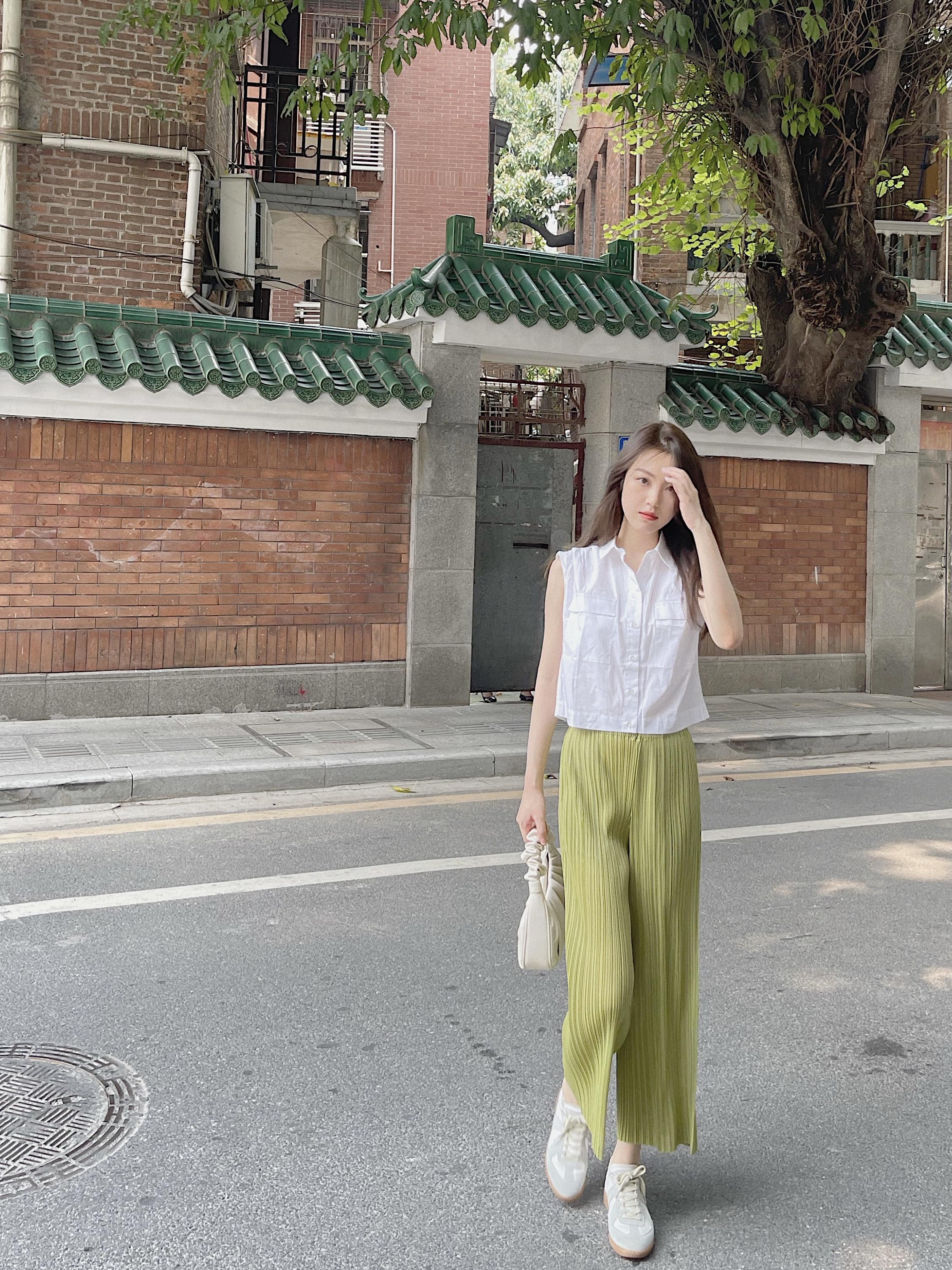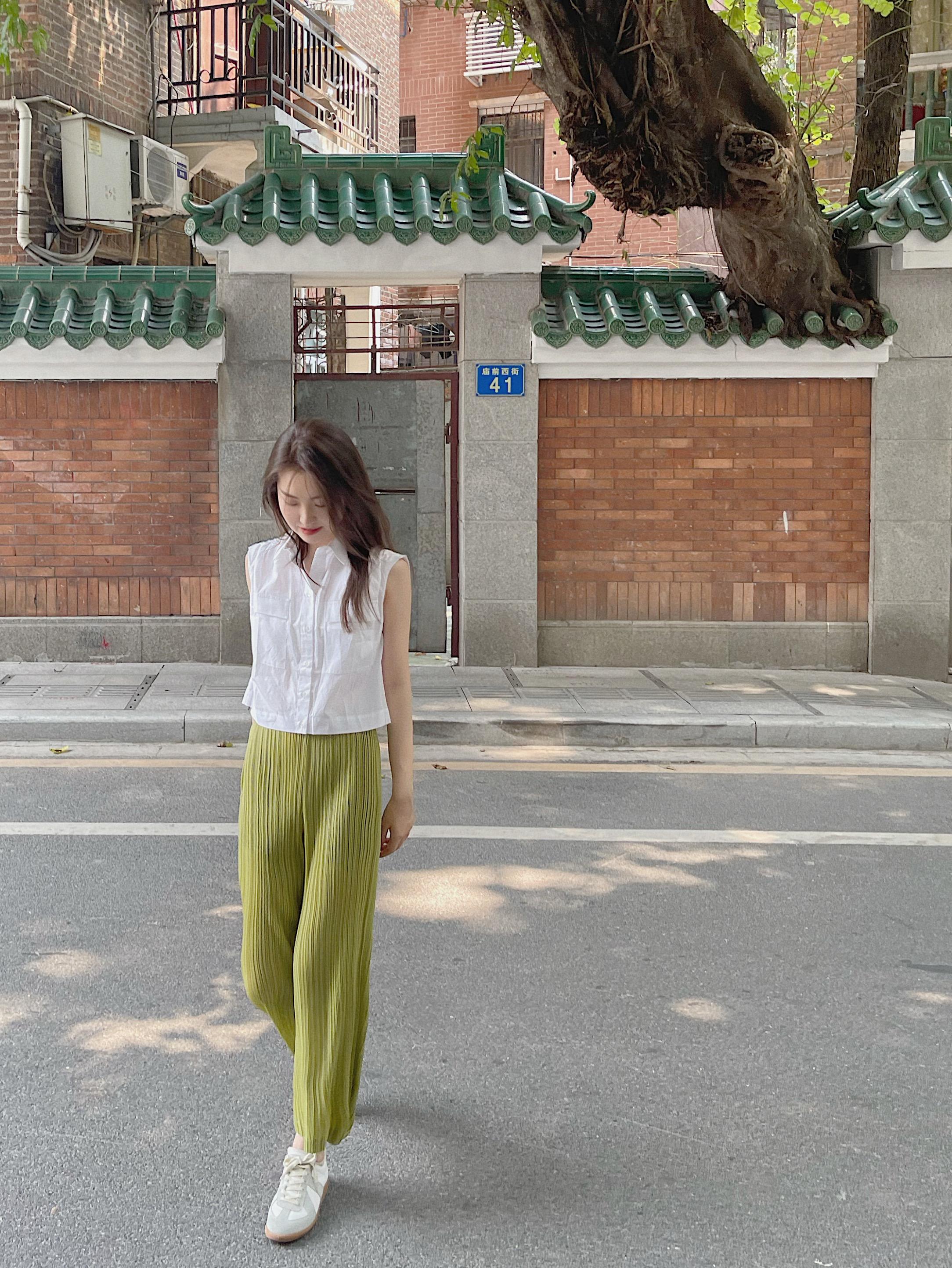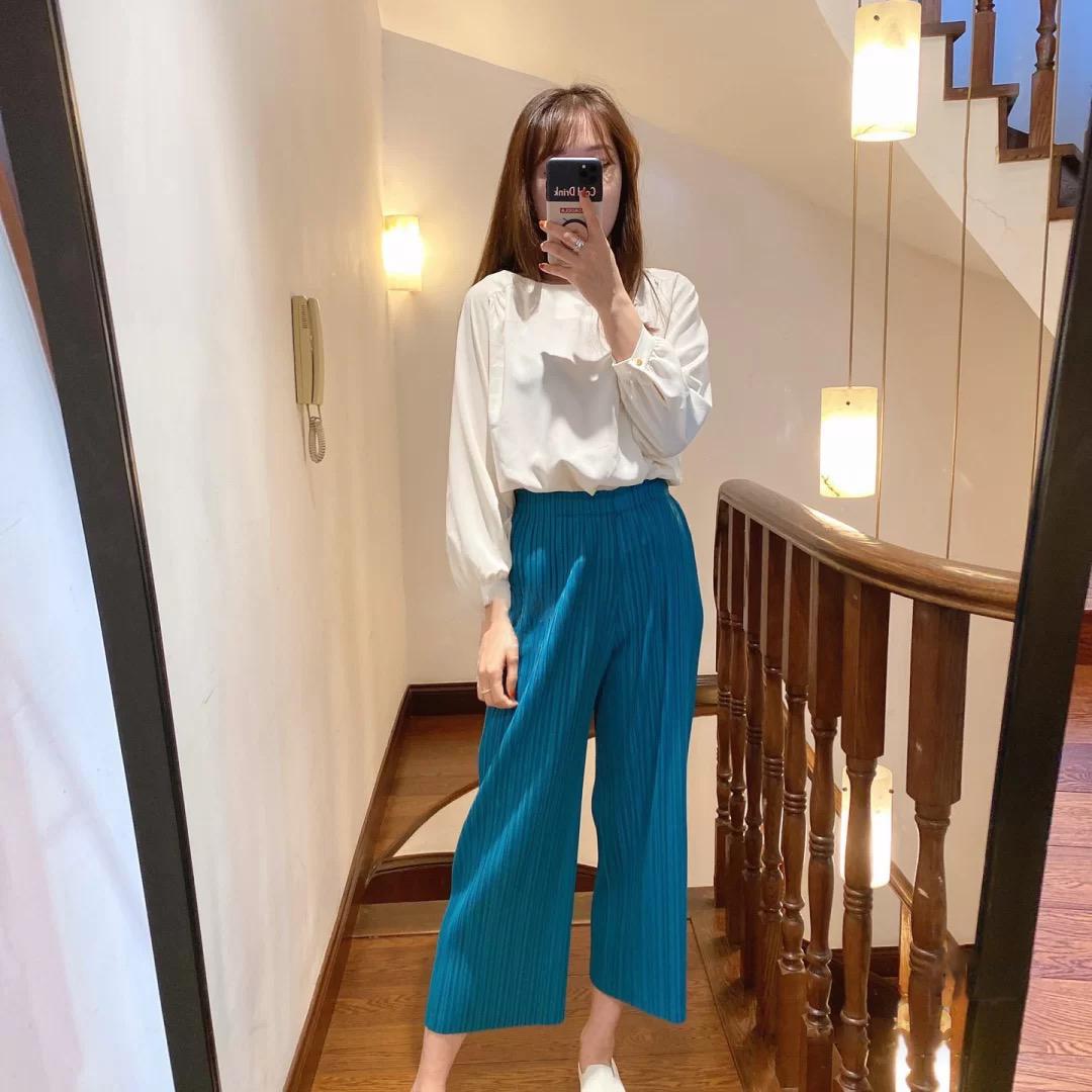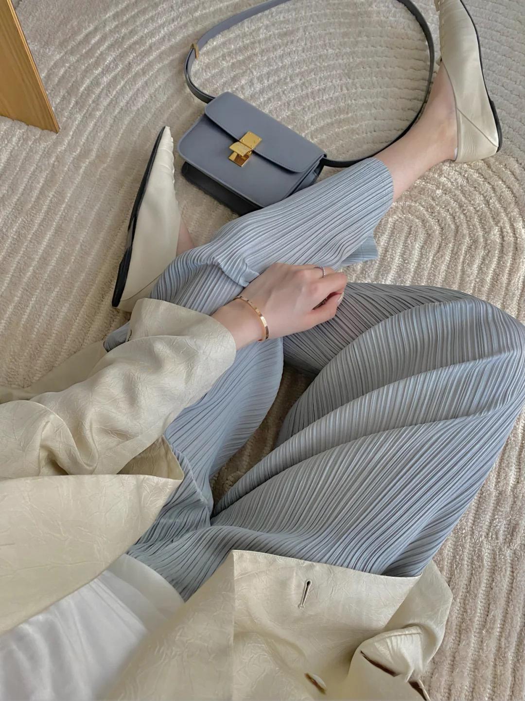 Pantalones plisados de San House, pantalones cortos de verano, pantalones rectos finos para mujer, pantalones plisados, pantalones de órgano, pantalones de pierna ancha, pantalones casuales