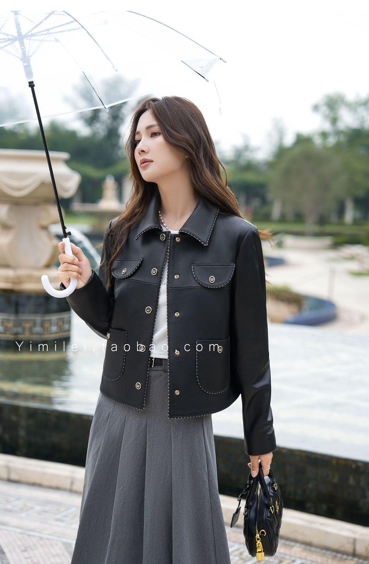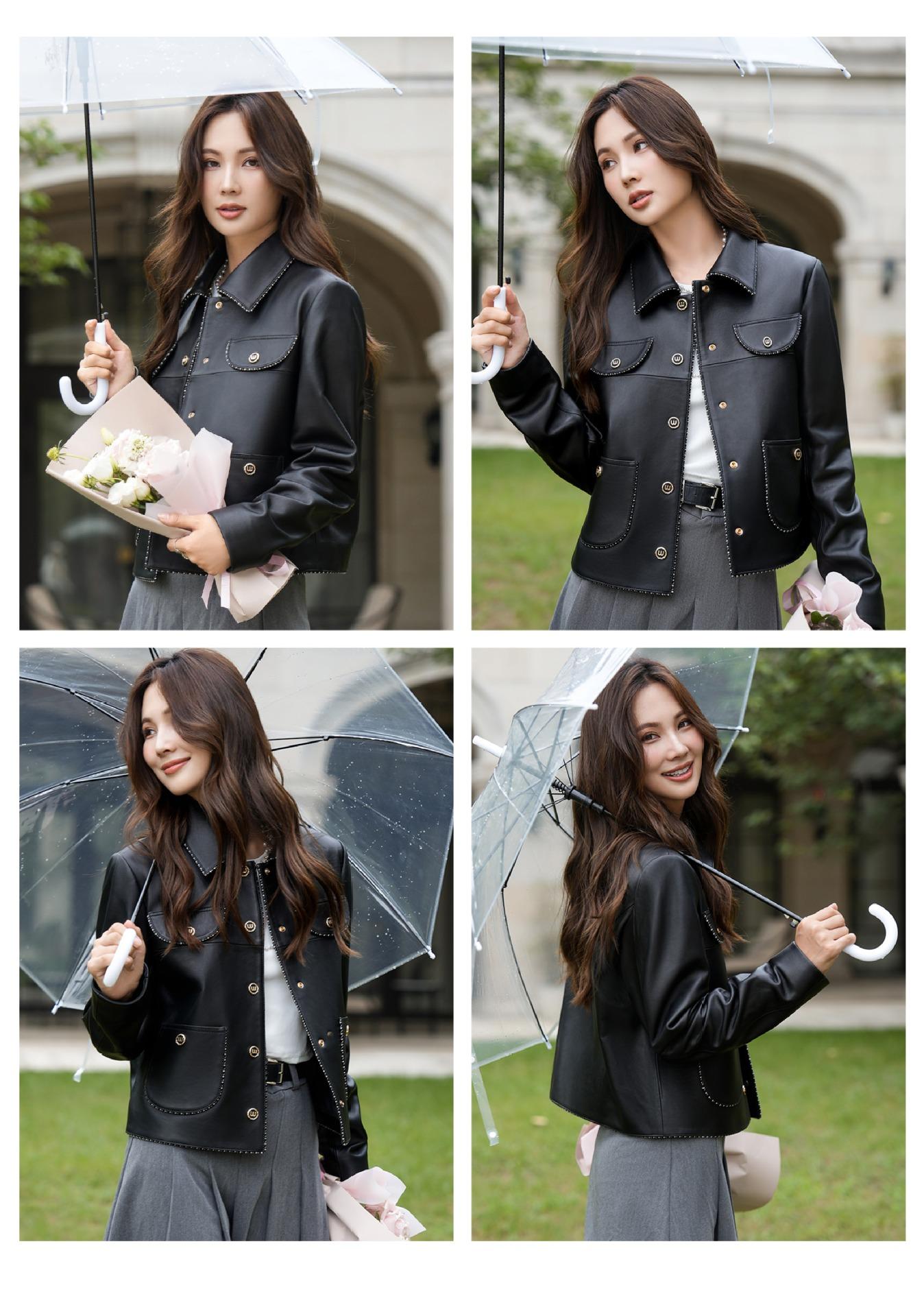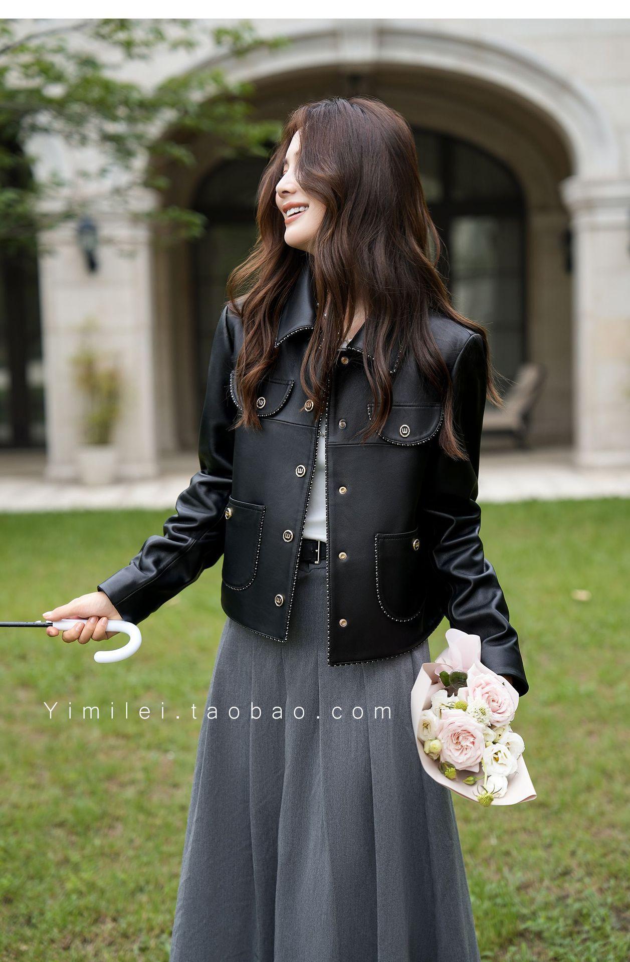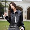 Chaqueta Corta de Otoño Nuevo de Haining de Cuero Genuino para Mujer de Cuero Genuino de Piel de Oveja Cuello Cuadrado Moda Chaqueta Pequeña