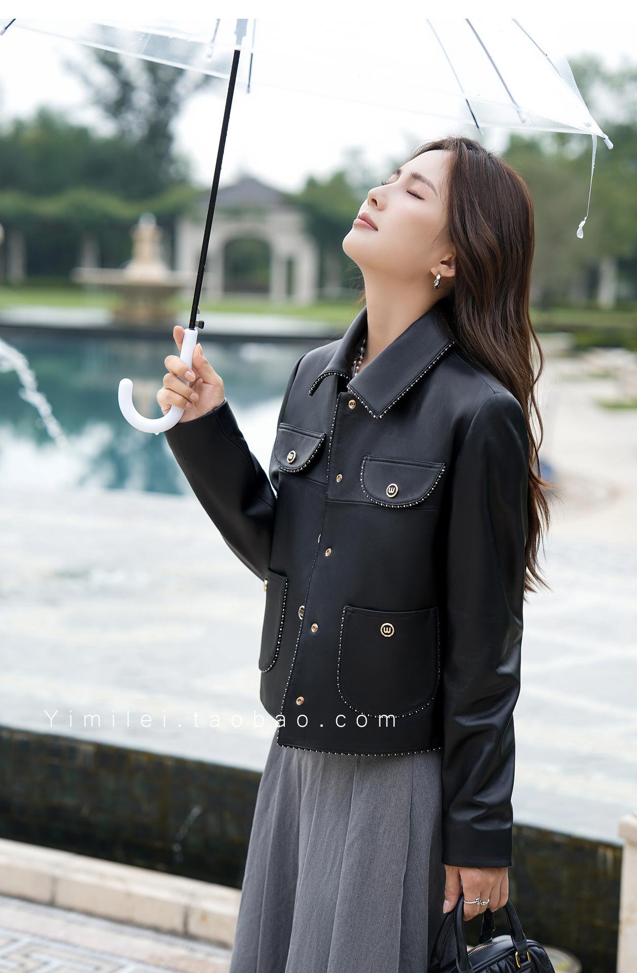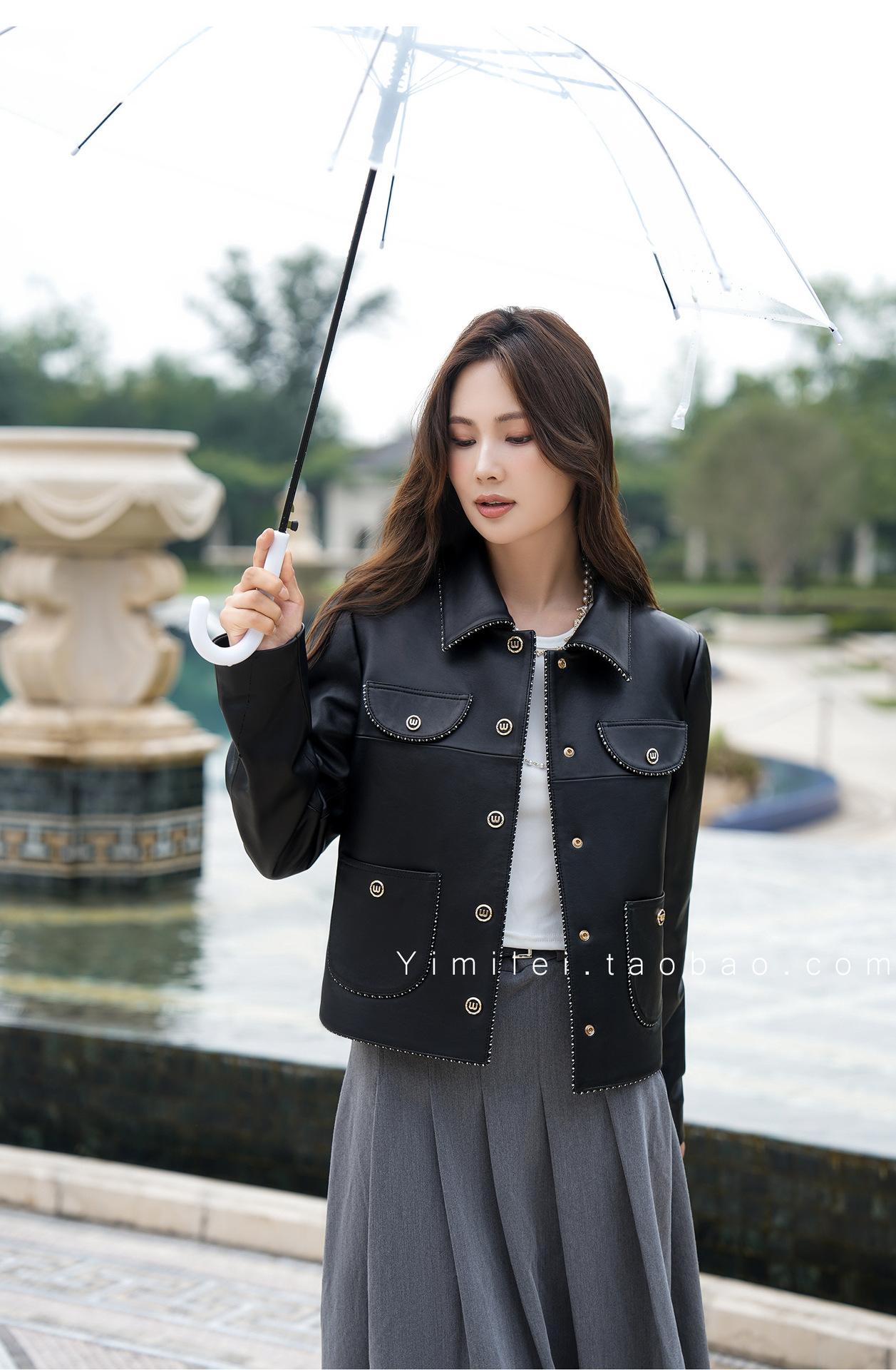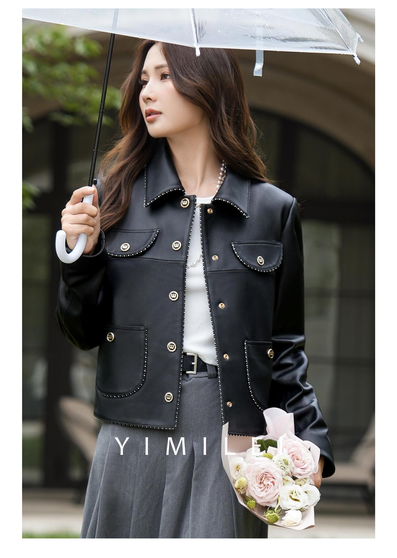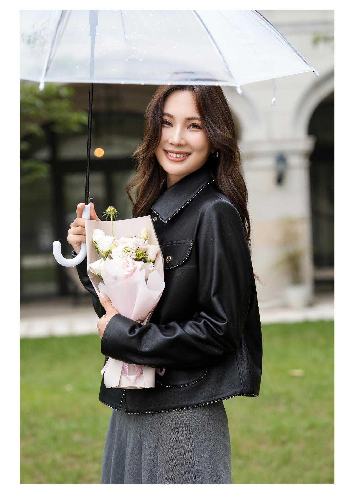 Chaqueta Corta de Otoño Nuevo de Haining de Cuero Genuino para Mujer de Cuero Genuino de Piel de Oveja Cuello Cuadrado Moda Chaqueta Pequeña