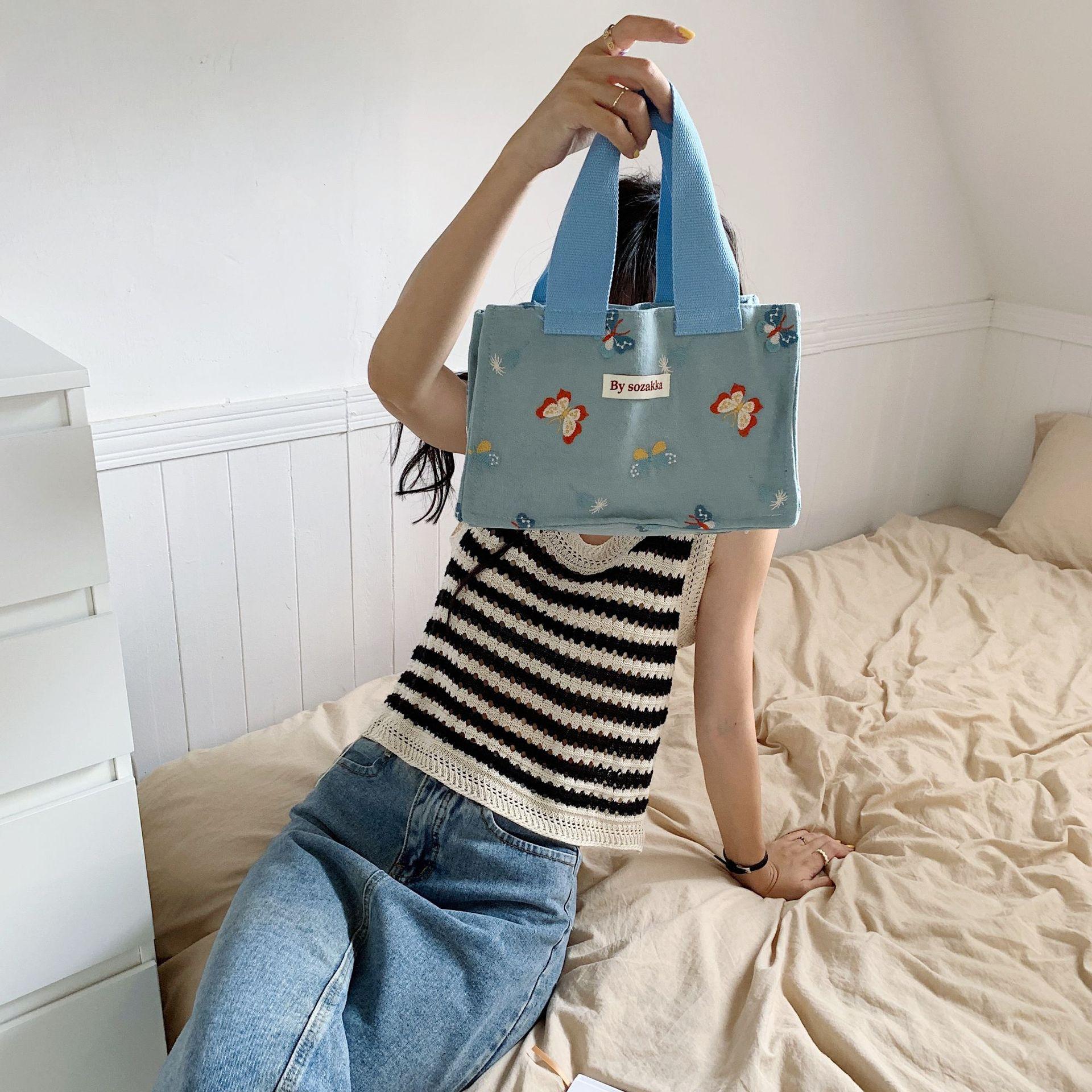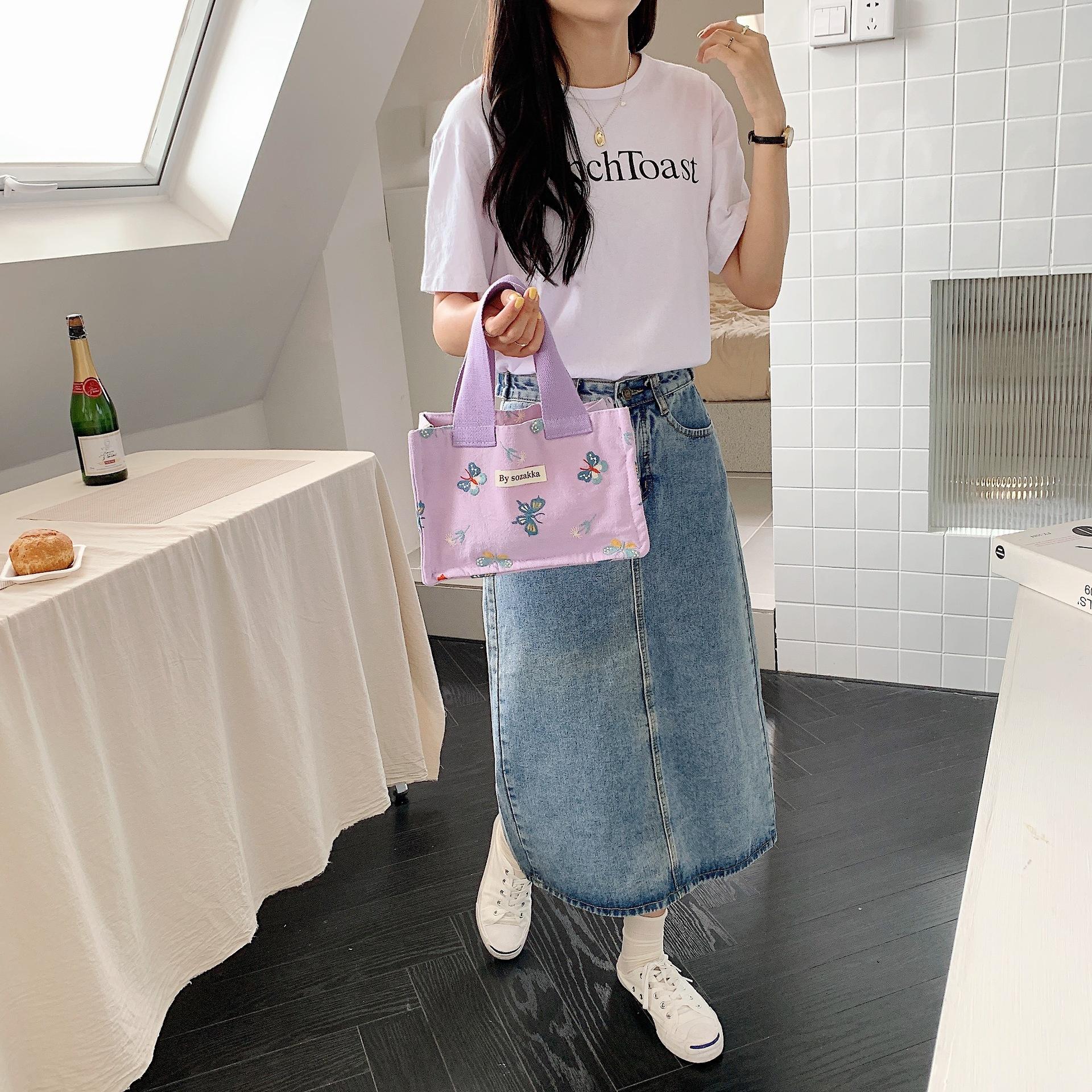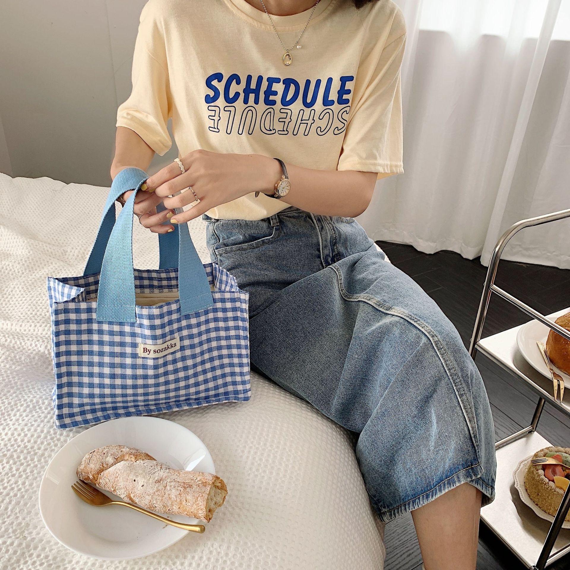 26191 Bolso Satchel de Lona Estilo Japonés Bolsa de Almuerzo Satchel para Estudiante Trabajador de Oficina Bolso de Mano Bolsa de Almuerzo Bolsa para Snacks
