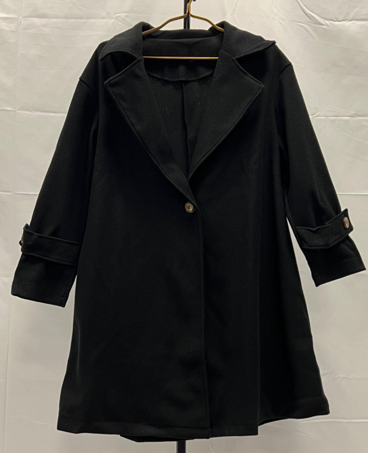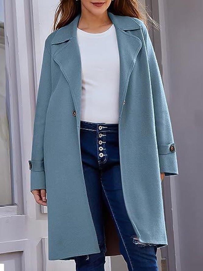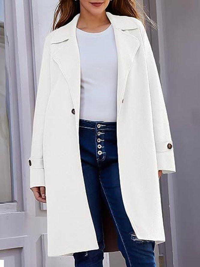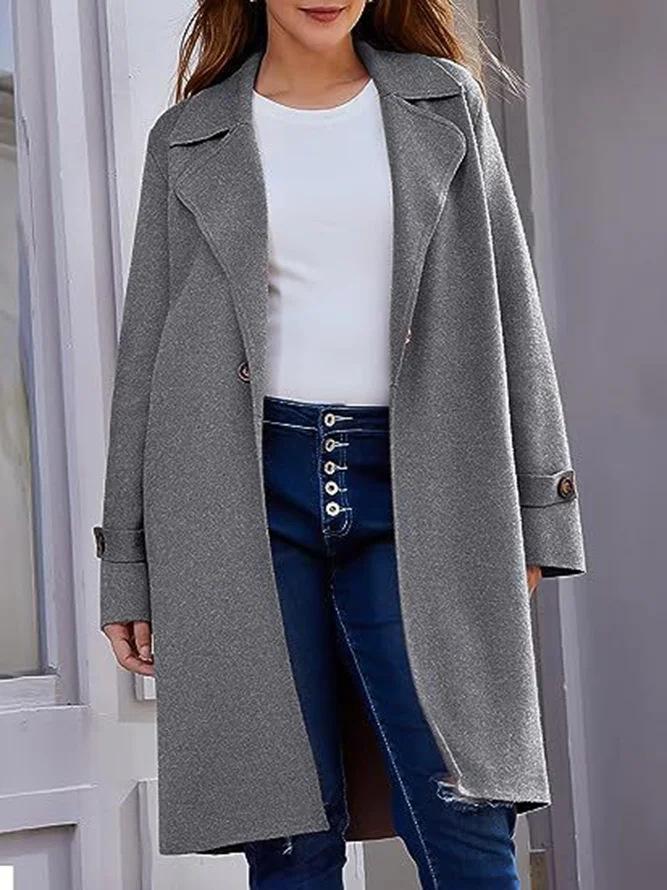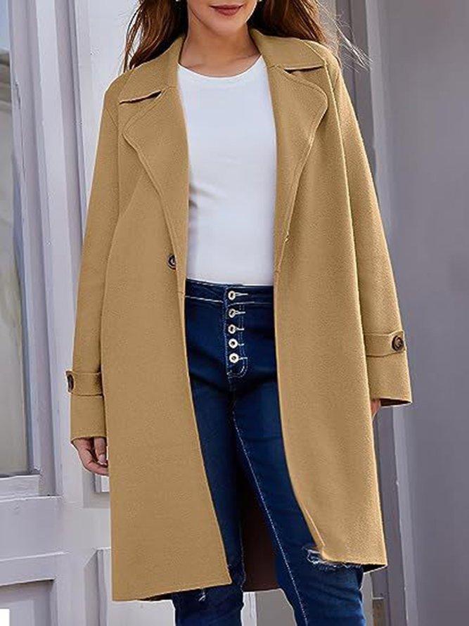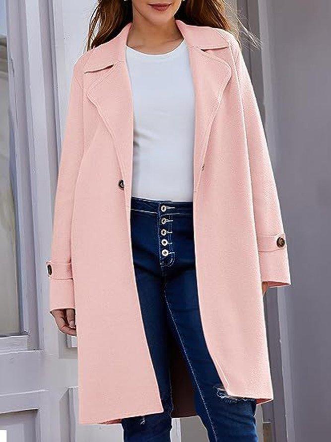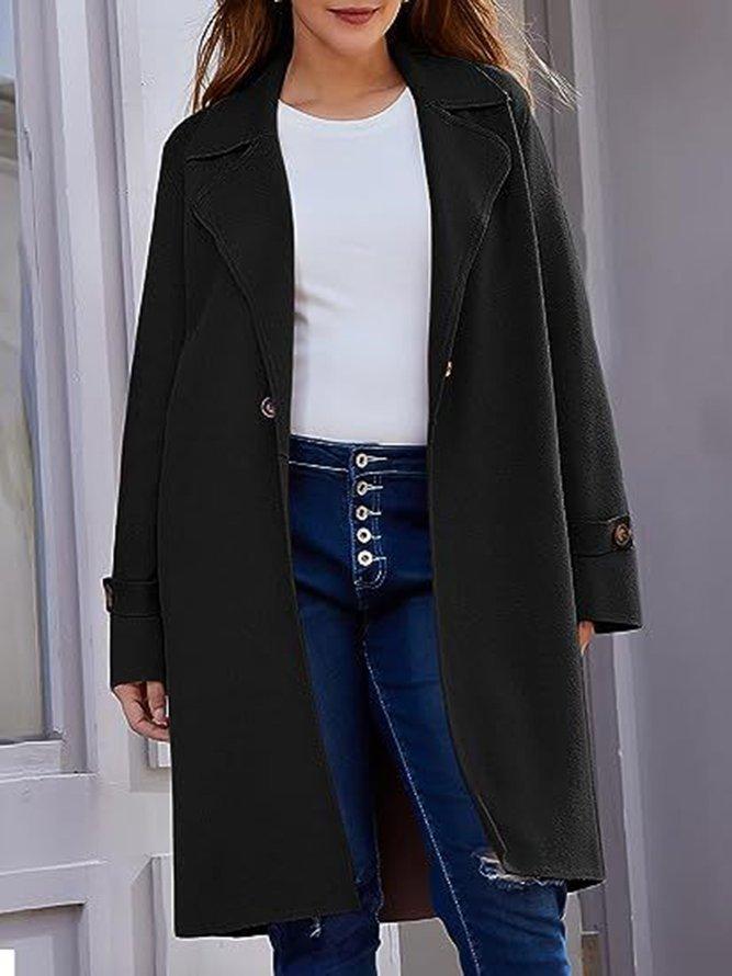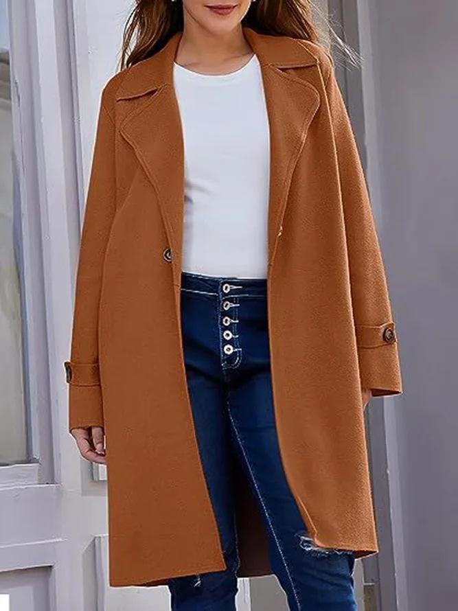 Abrigo de lana con solapa y botones, largo y medio, color liso, para mujer, otoño e invierno, 2024