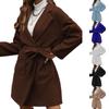 Chaqueta con cinturón dividido y botones de solapa de manga larga sencilla de otoño e invierno de Amazon, nueva estación independiente europea y americana de 2024 para mujer