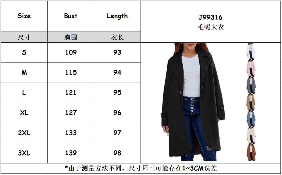 Abrigo de lana personalizado para mujer, estilo europeo y americano, para otoño e invierno, de manga larga, color liso, cruzado, alargado, para comercio exterior transfronterizo.
