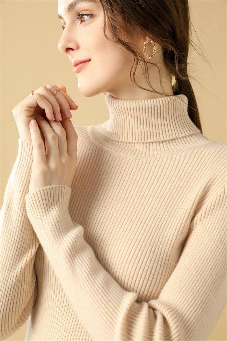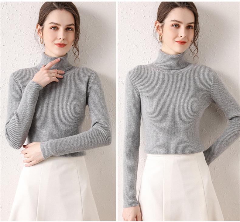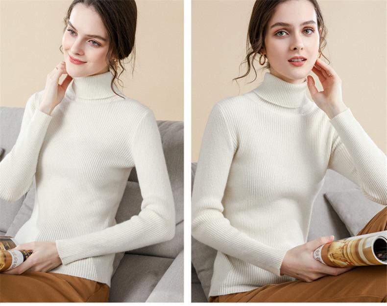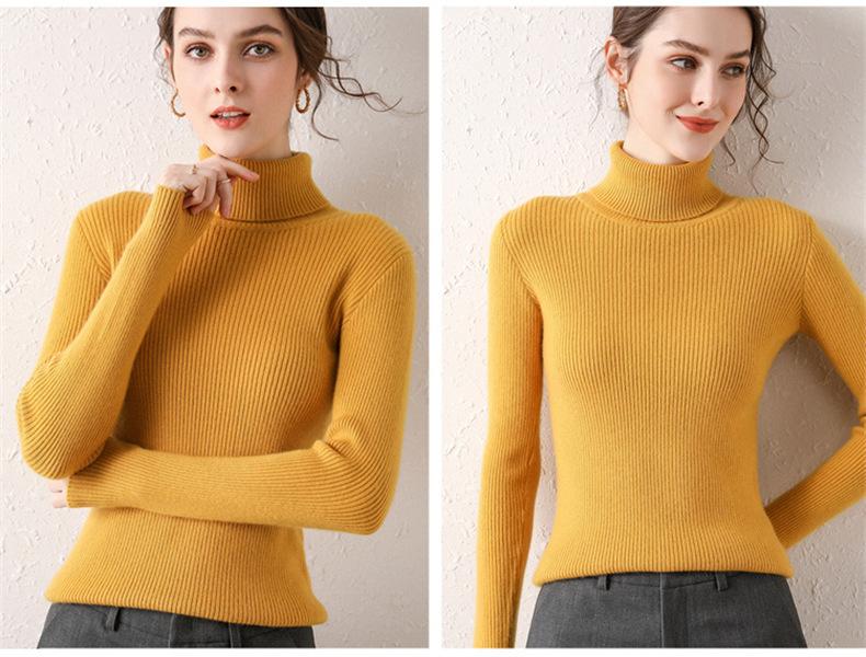 Suéter de cuello alto de otoño e invierno para mujer, novedad de 2023, jersey ajustado con interior grueso y ajustado, combinable con todo, camisa de punto de manga larga