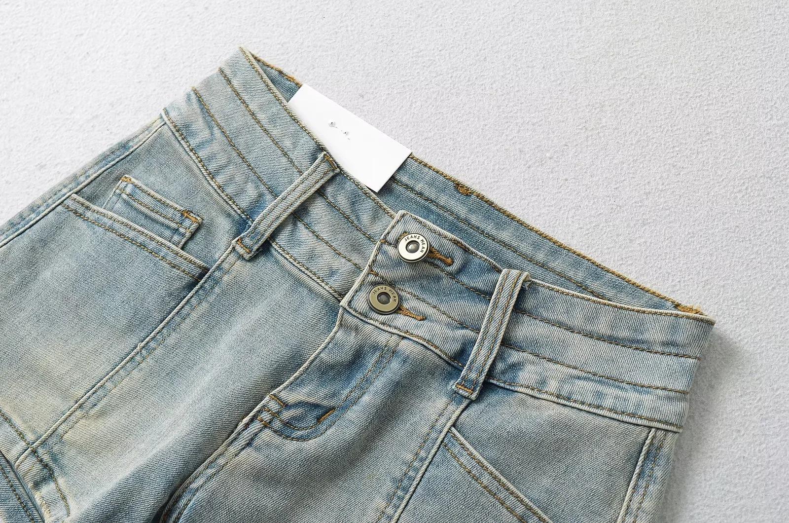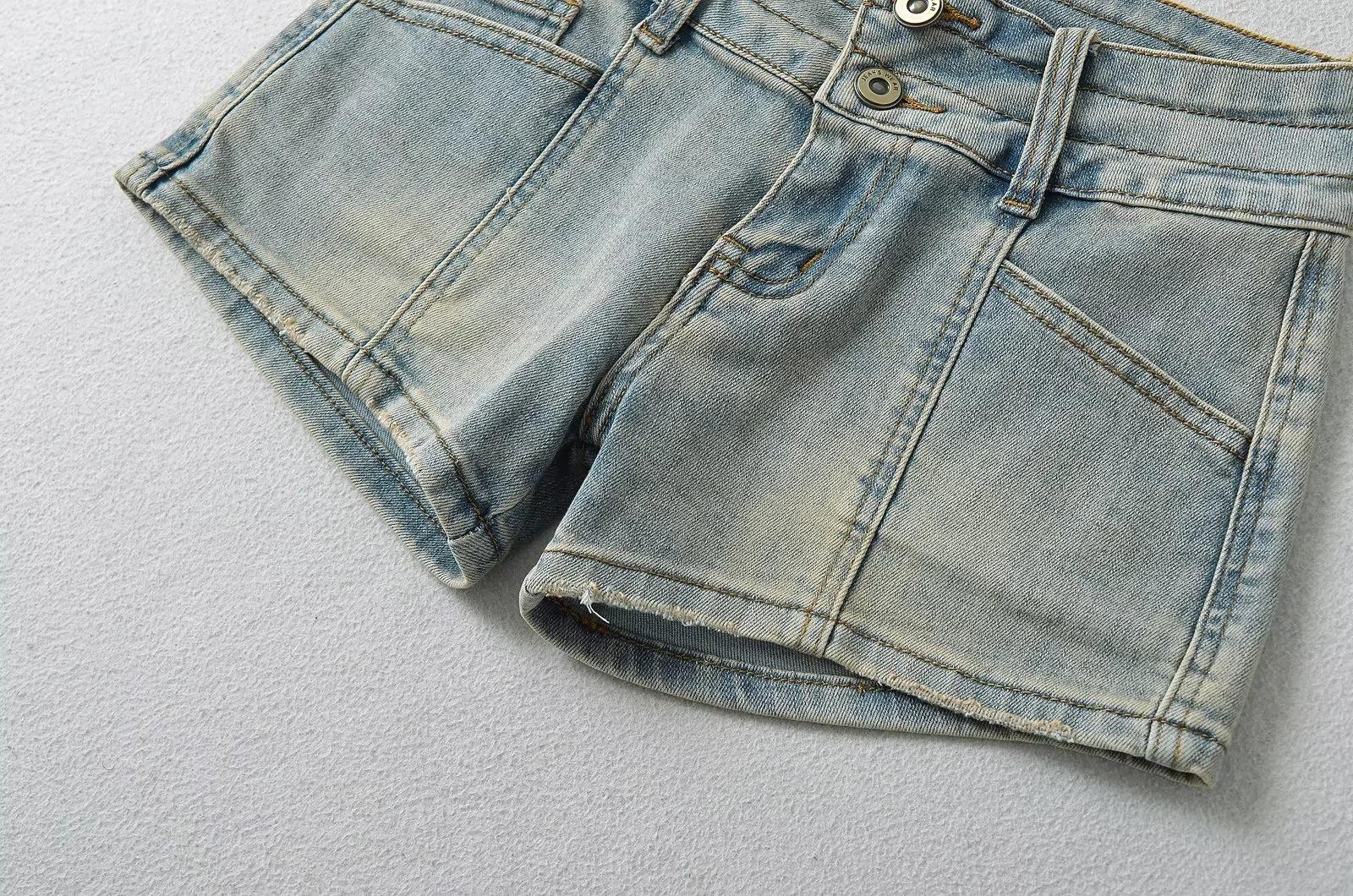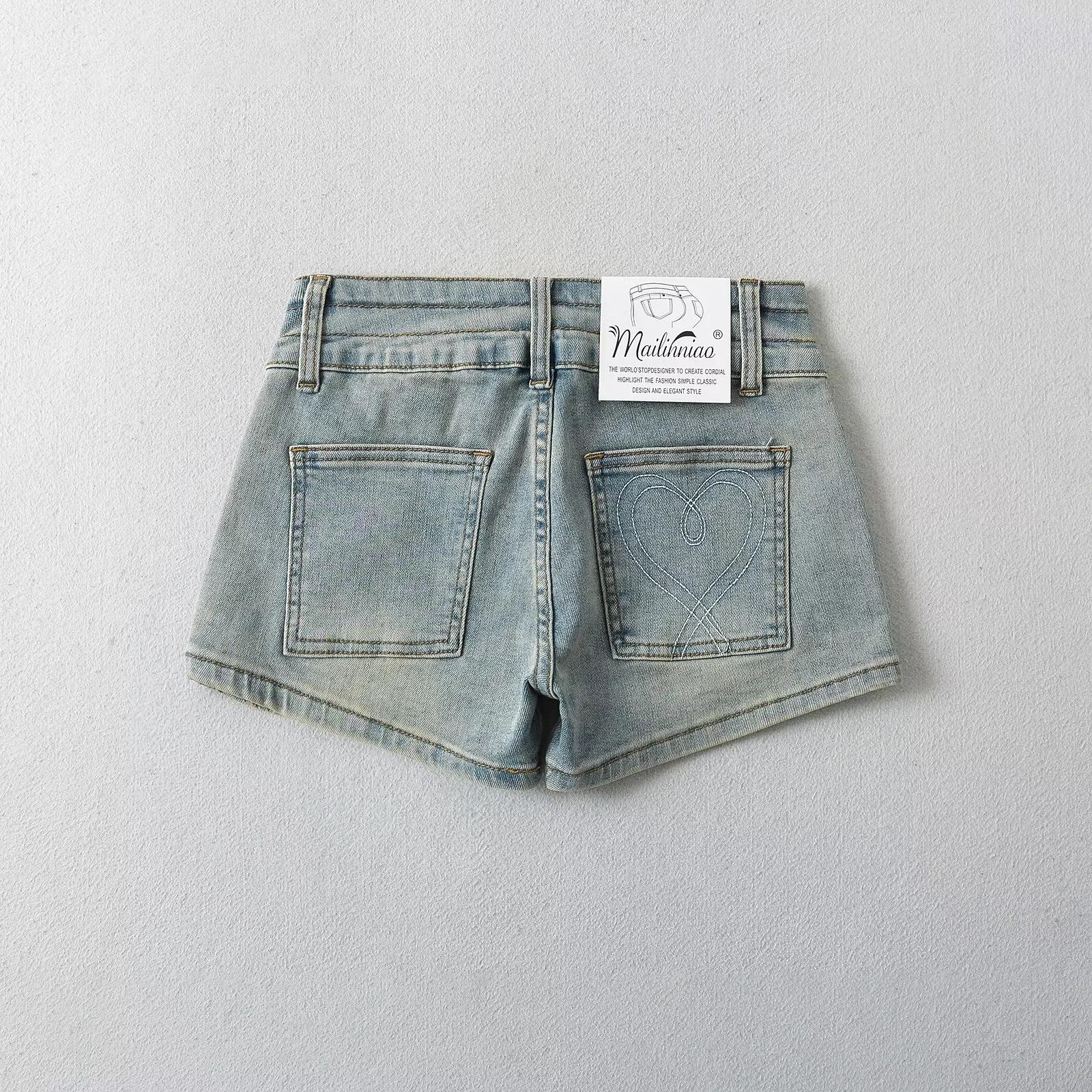 Pantalones cortos vaqueros de cintura baja estilo americano para mujer, ajustados, adelgazantes, de verano, rectos, de color claro, estilo retro