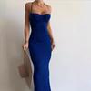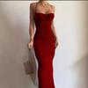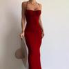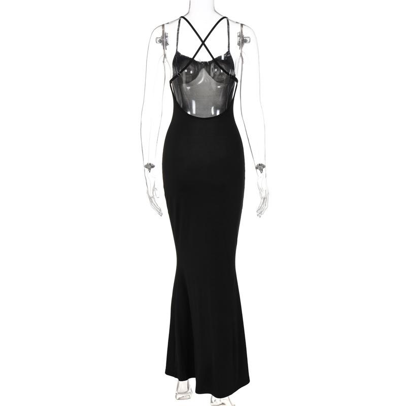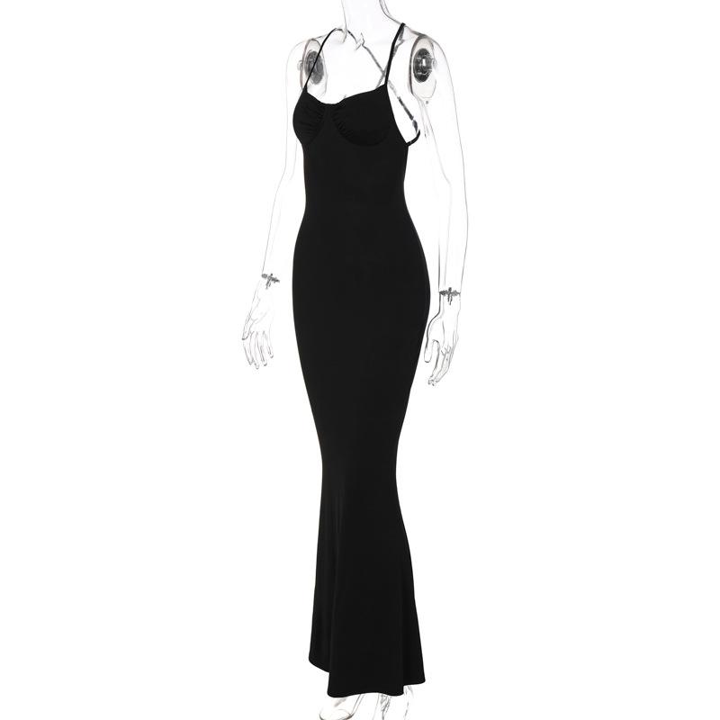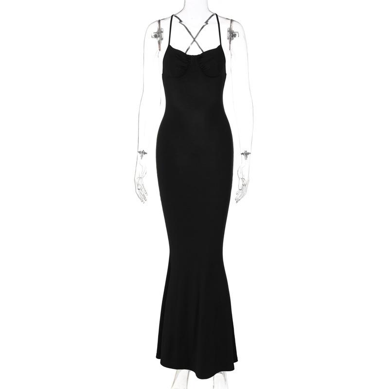 2025 Falda Larga sin Mangas de Cintura Alta Ajustada Europea y Americana Nueva Tirantes Cruzados Espalda Descubierta Falda Larga Falda de Cola de Pescado Vestido