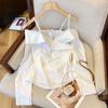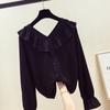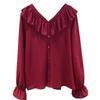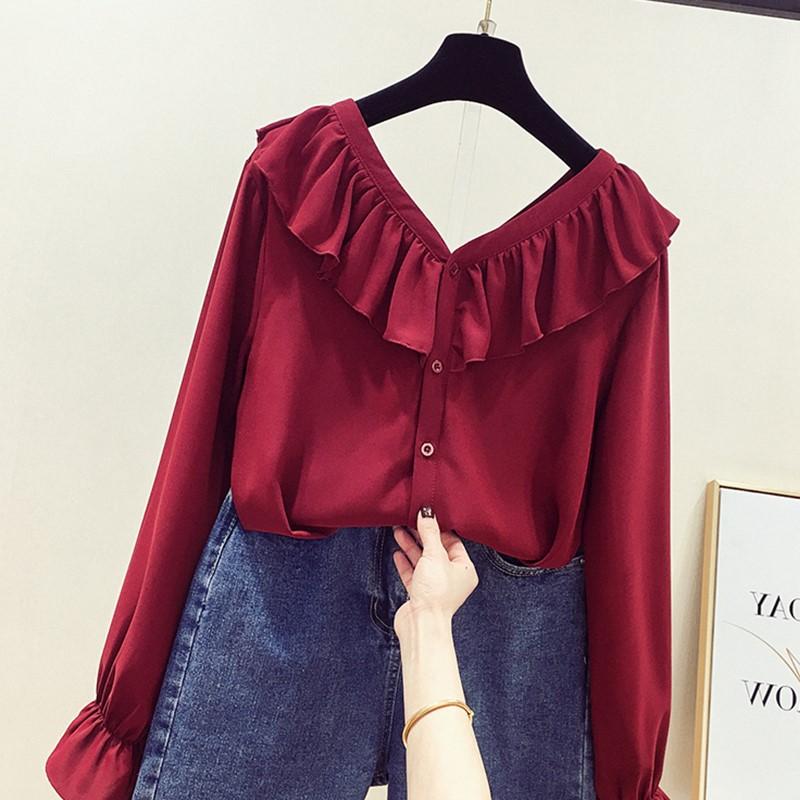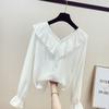 Camisa de gasa con cuello en V para mujer, otoño 2023, nueva camisa coreana de manga larga holgada con hombros descubiertos, estilo extranjero, tendencia superior