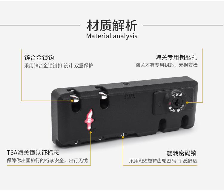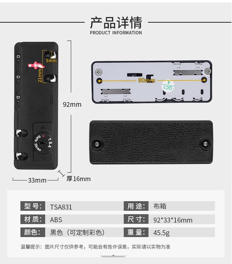 Cerradura de aduanas directa de fábrica, cerradura de dos vías, cerradura de combinación fija con cremallera tsa831, cerradura fija de aduanas, tarjeta de antorcha
