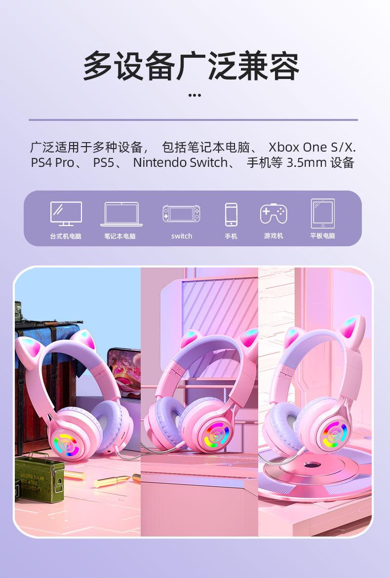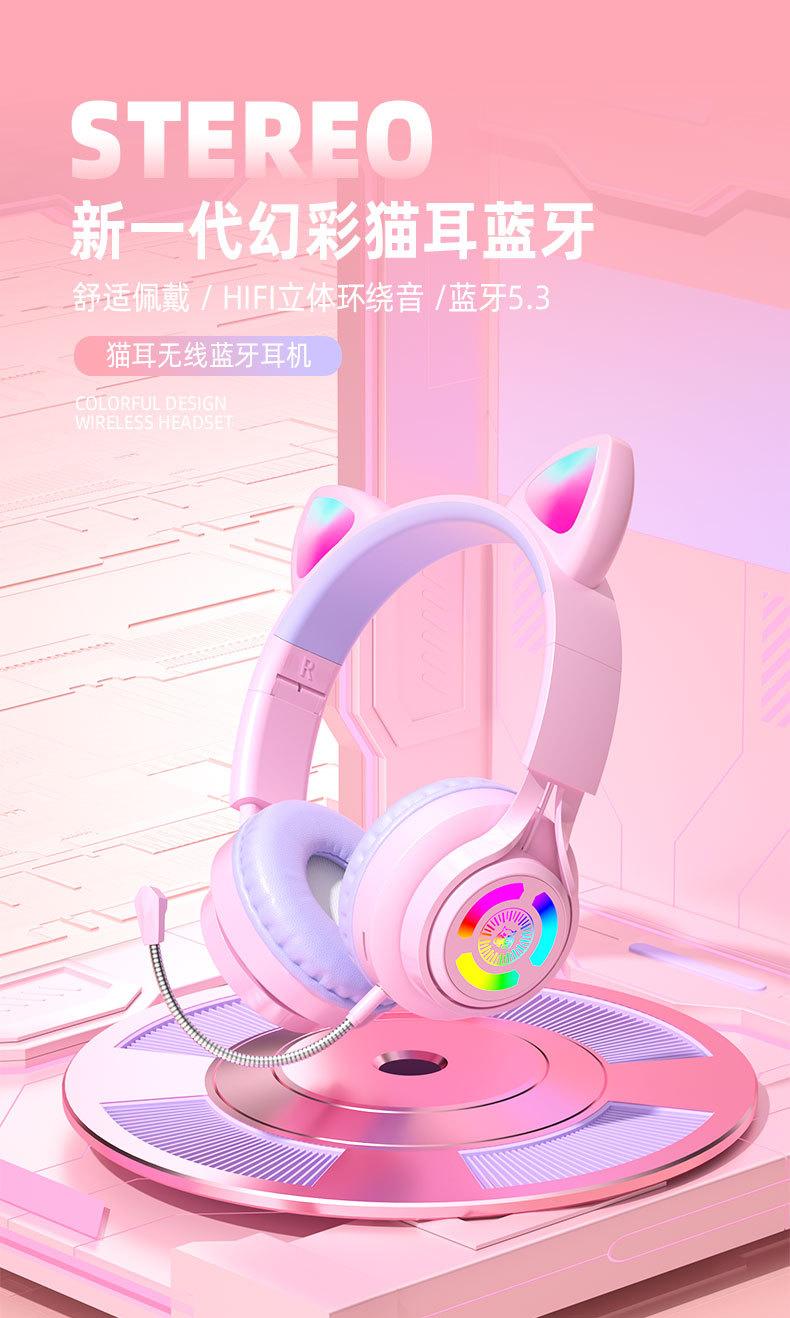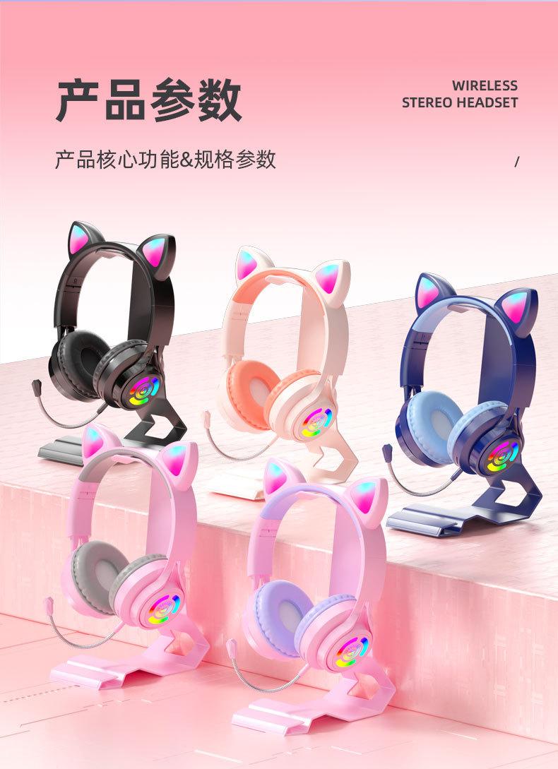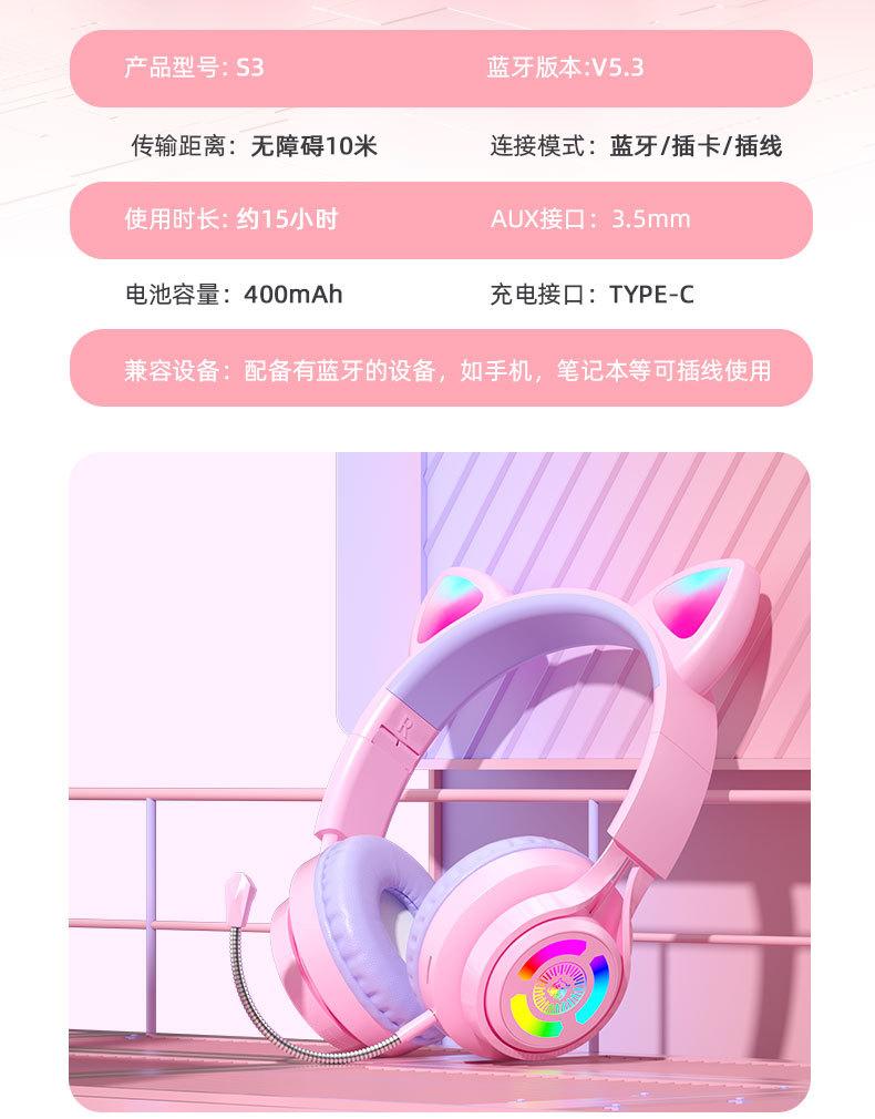 Nuevo Producto Transfronterizo S3 Auriculares Luminosos con Orejas de Gato para E-Sports, Auriculares Bluetooth de Diadema