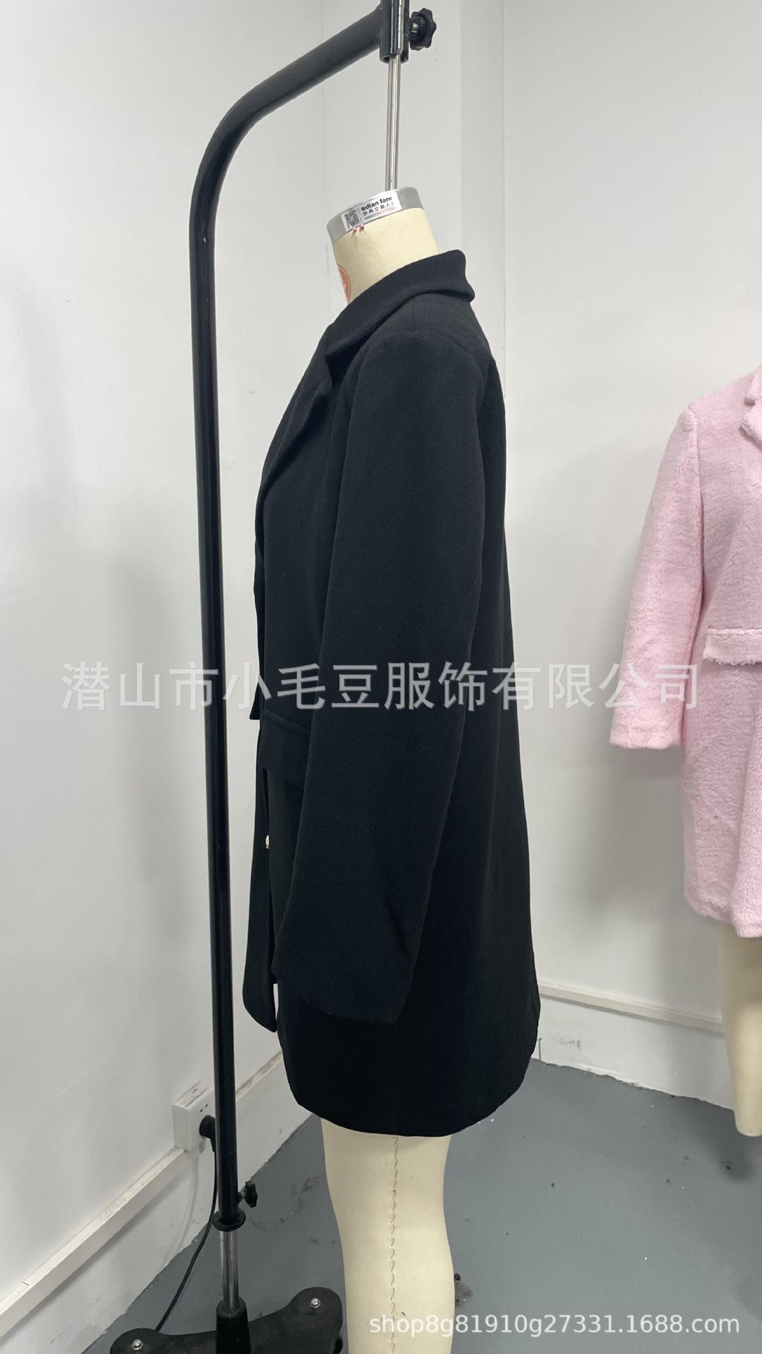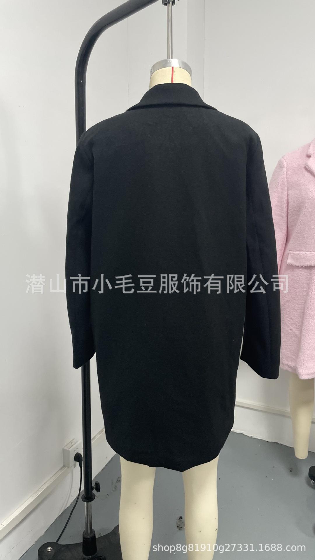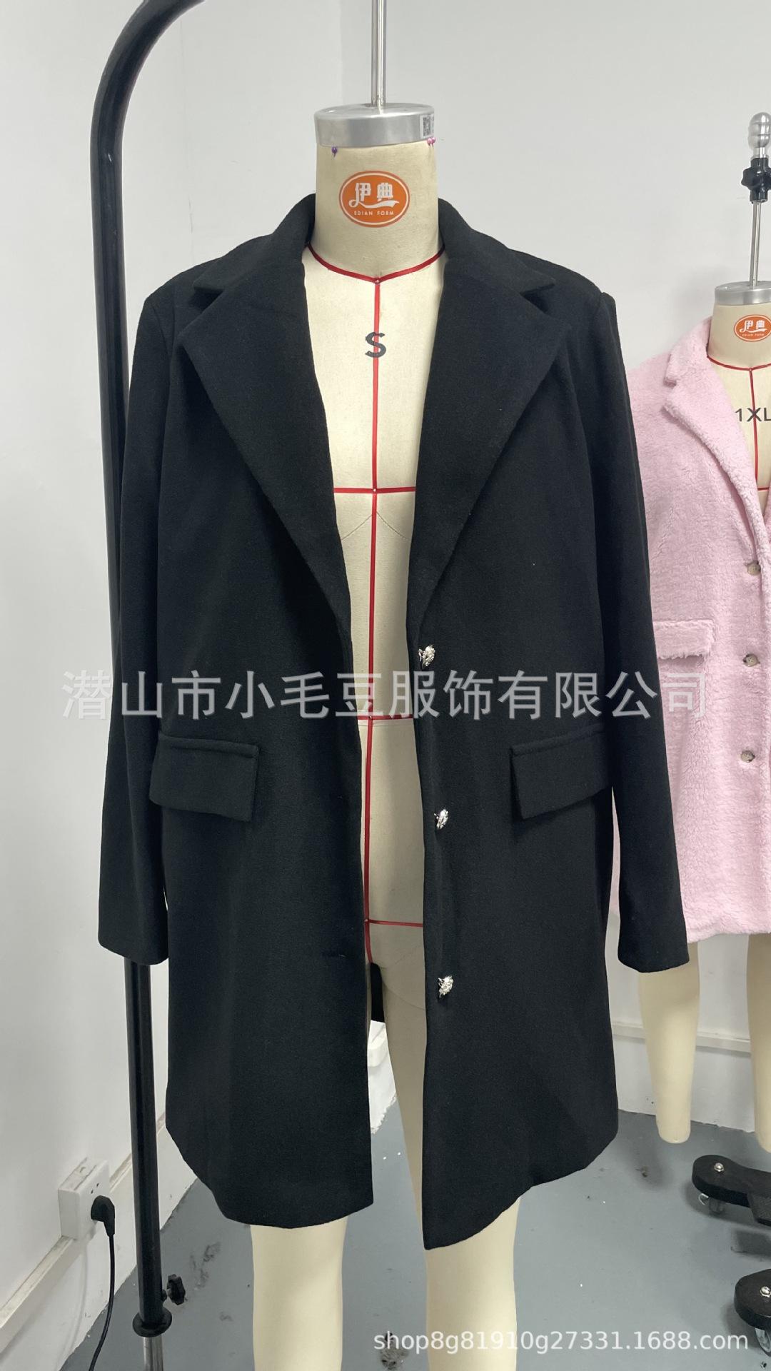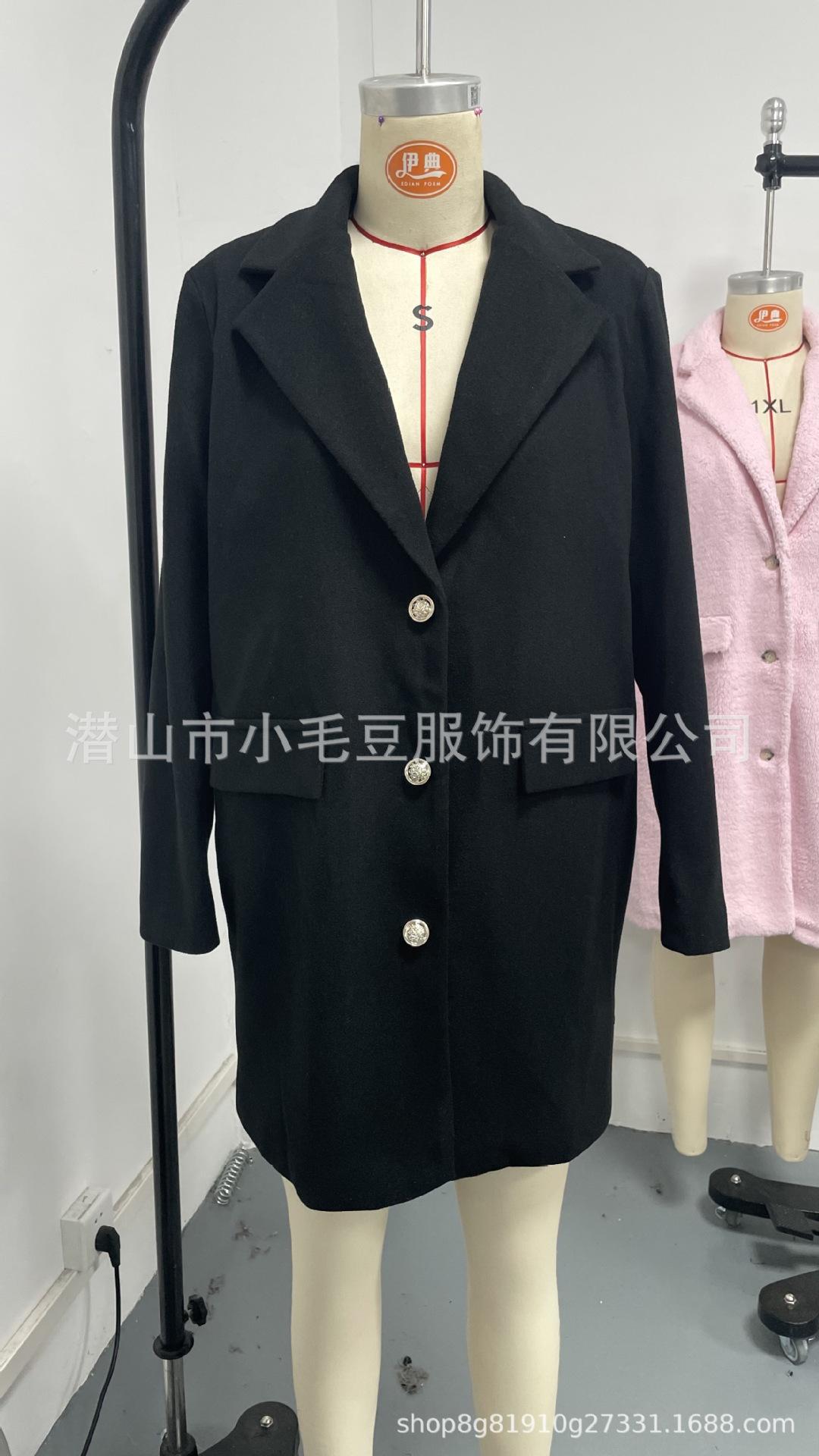 Ropa de mujer transfronteriza europea y americana otoño e invierno moda casual color sólido solapa abotonadura sencilla bolsillo falso abrigo de longitud media