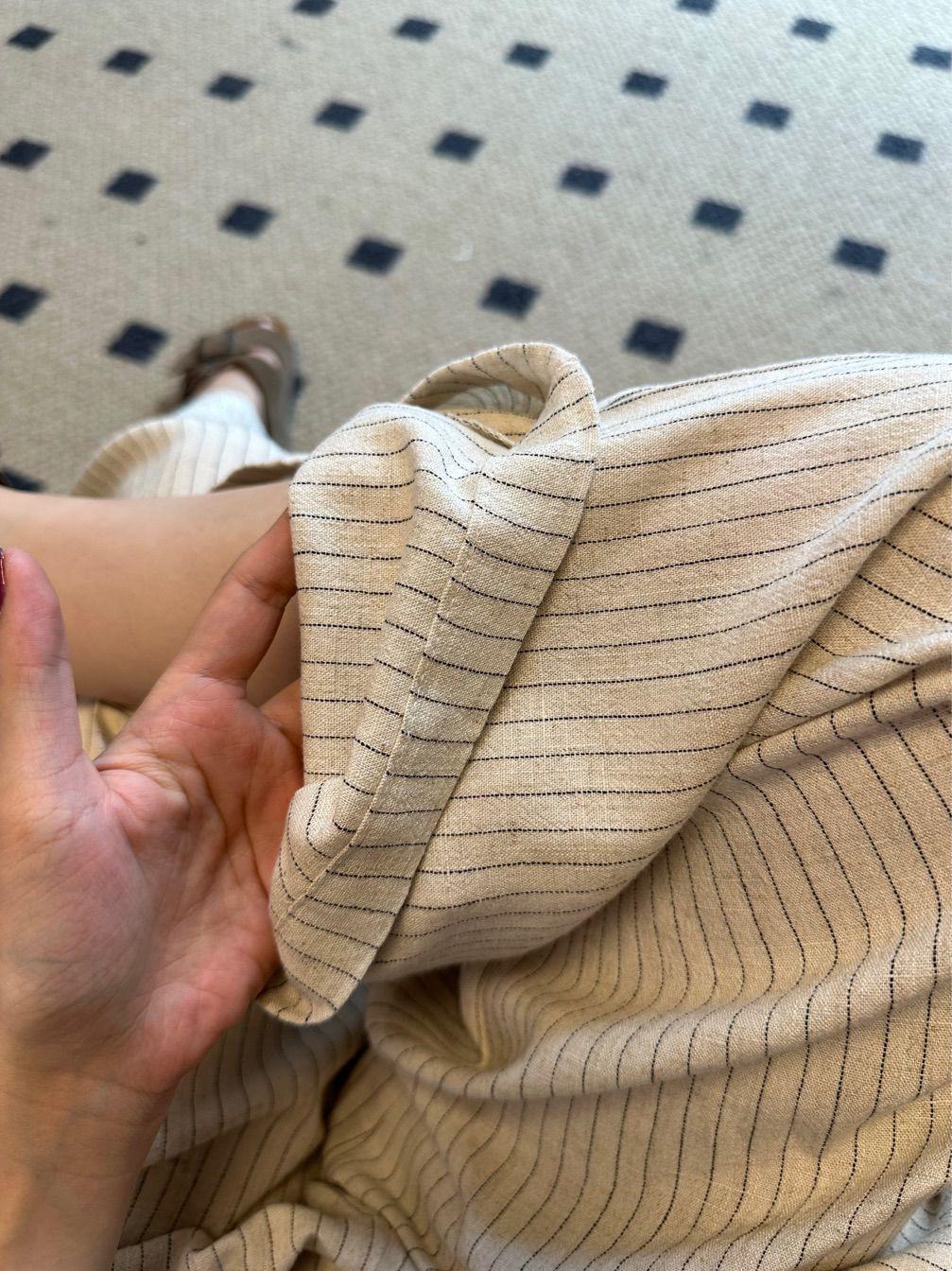 Pantalones holgados de verano 2024 de lino de cintura alta, elásticos, cómodos, transpirables, de pierna ancha, pantalones casuales ajustados a rayas para mujer
